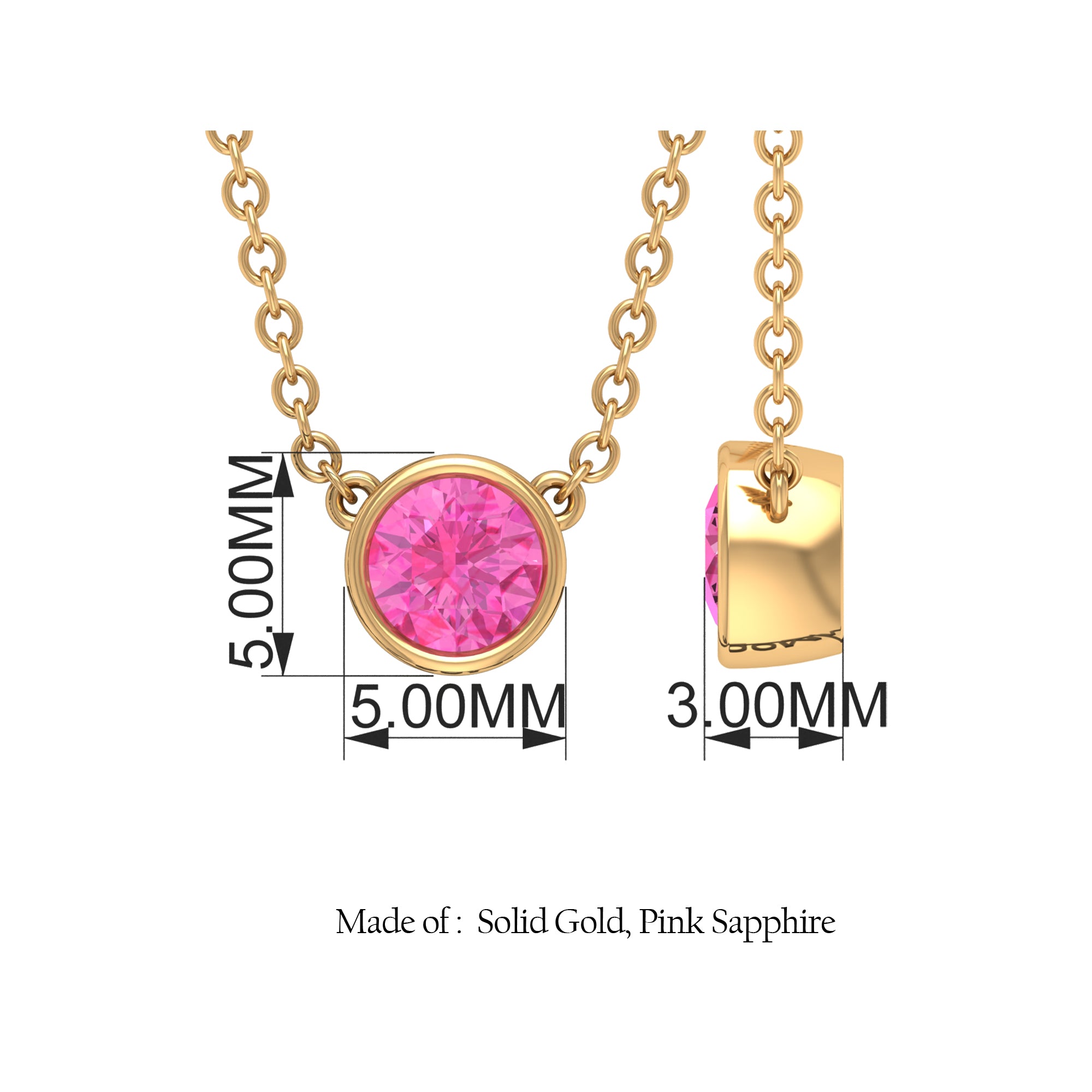 This Pink Sapphire Pendant Necklace exudes a bright hue which makes the wearer center of attraction. It features a 5 MM Round Shape Pink Sapphire in Bezel Setting. This Solitaire Pendant exudes the shine of AAA Quality Pink Sapphire which makes it perfect to complete the look for special days. This Bezel Set Pendant will be delivered to you in premium packaging with the certificate of authenticity.