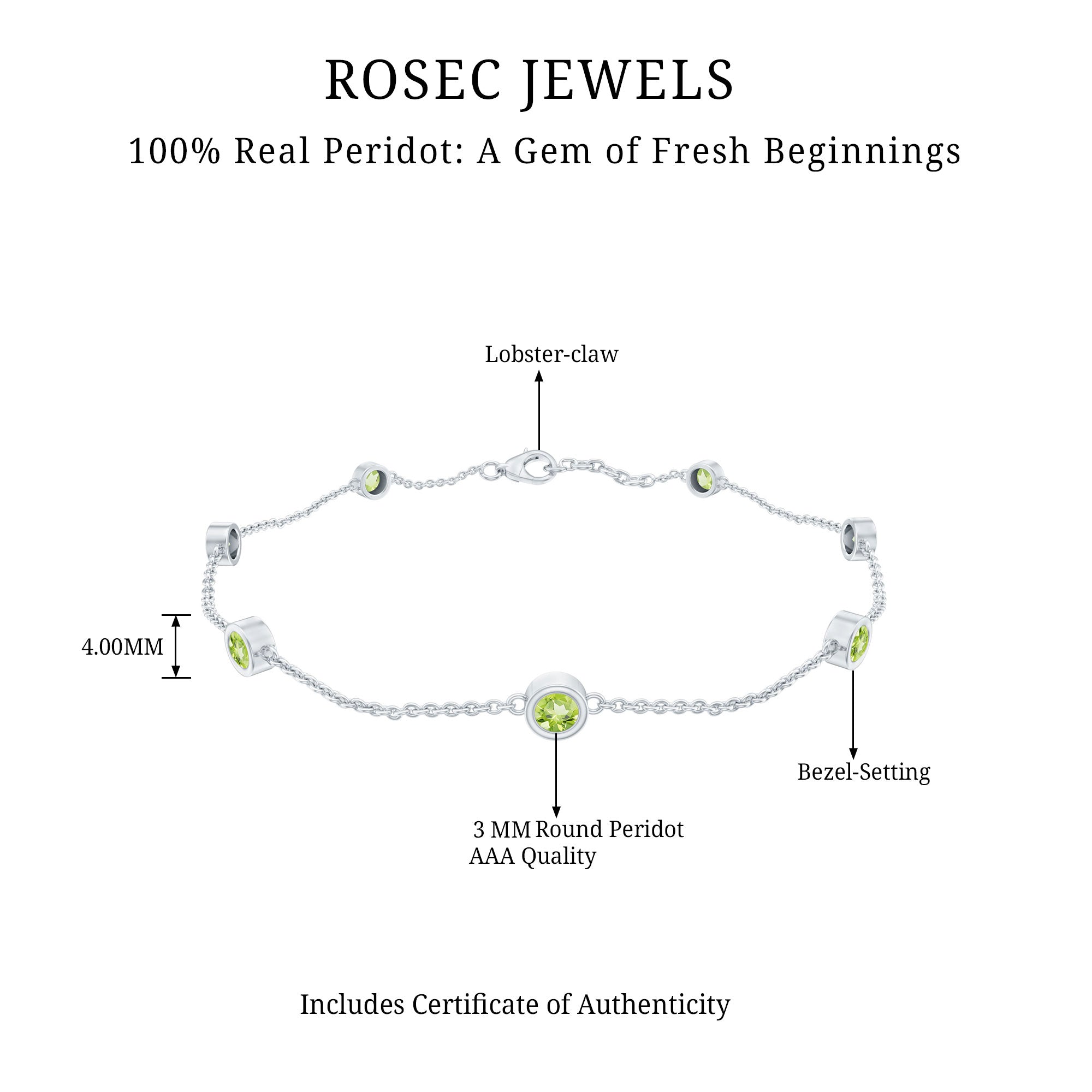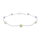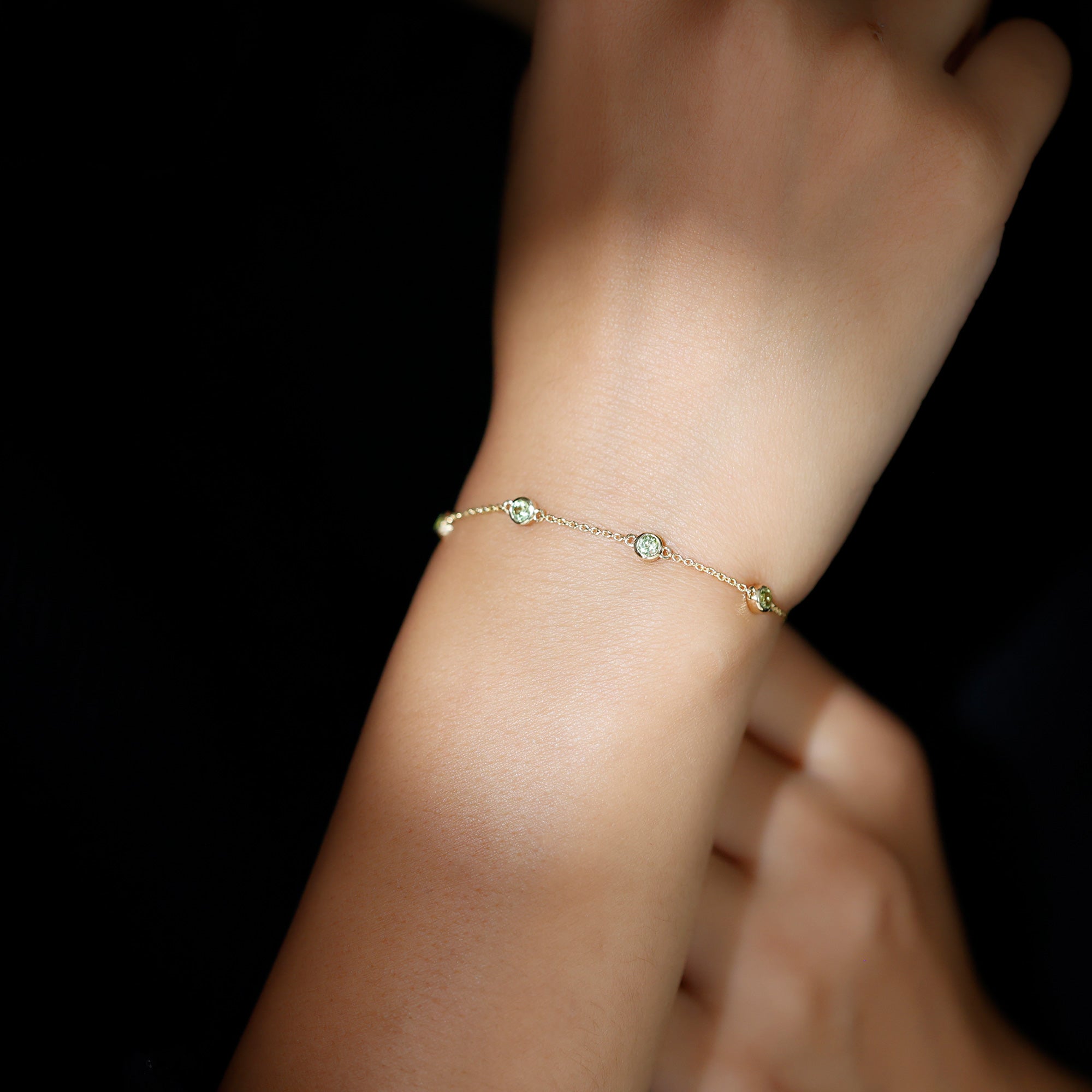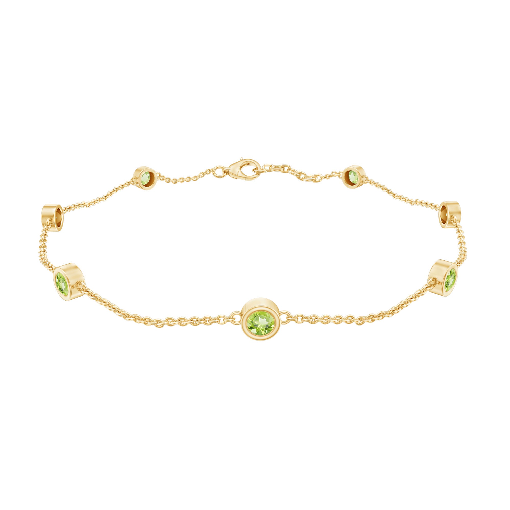 This Peridot Chain bracelet is charming and perfect to present to your special one. It features seven Round Shape Peridot stones securely placed in Bezel Setting with a Lobster Claw. This Station Chain Bracelet shines with the AAA quality Peridot and the secured Lobster Clasp is there to adjust the chain length according to the wrist size. This 7 Stone Bracelet is perfect to present as a gift to the August-born ladies. This Delicate bracelet is precisely crafted for your special moments and will be delivered to you with a classic jewelry box for further storage.