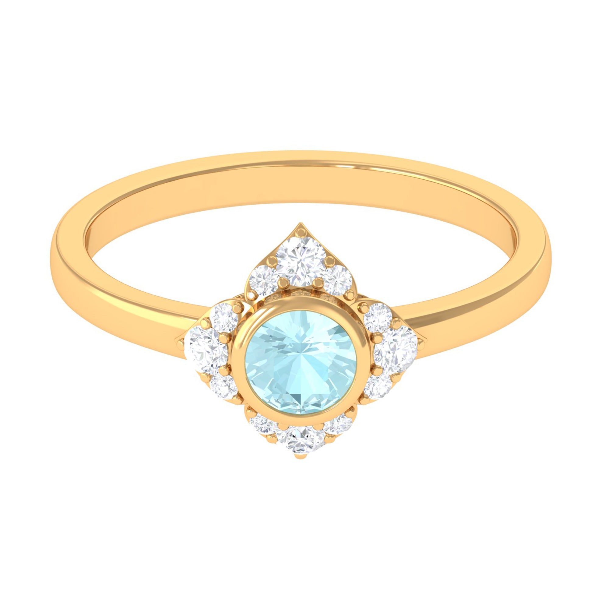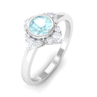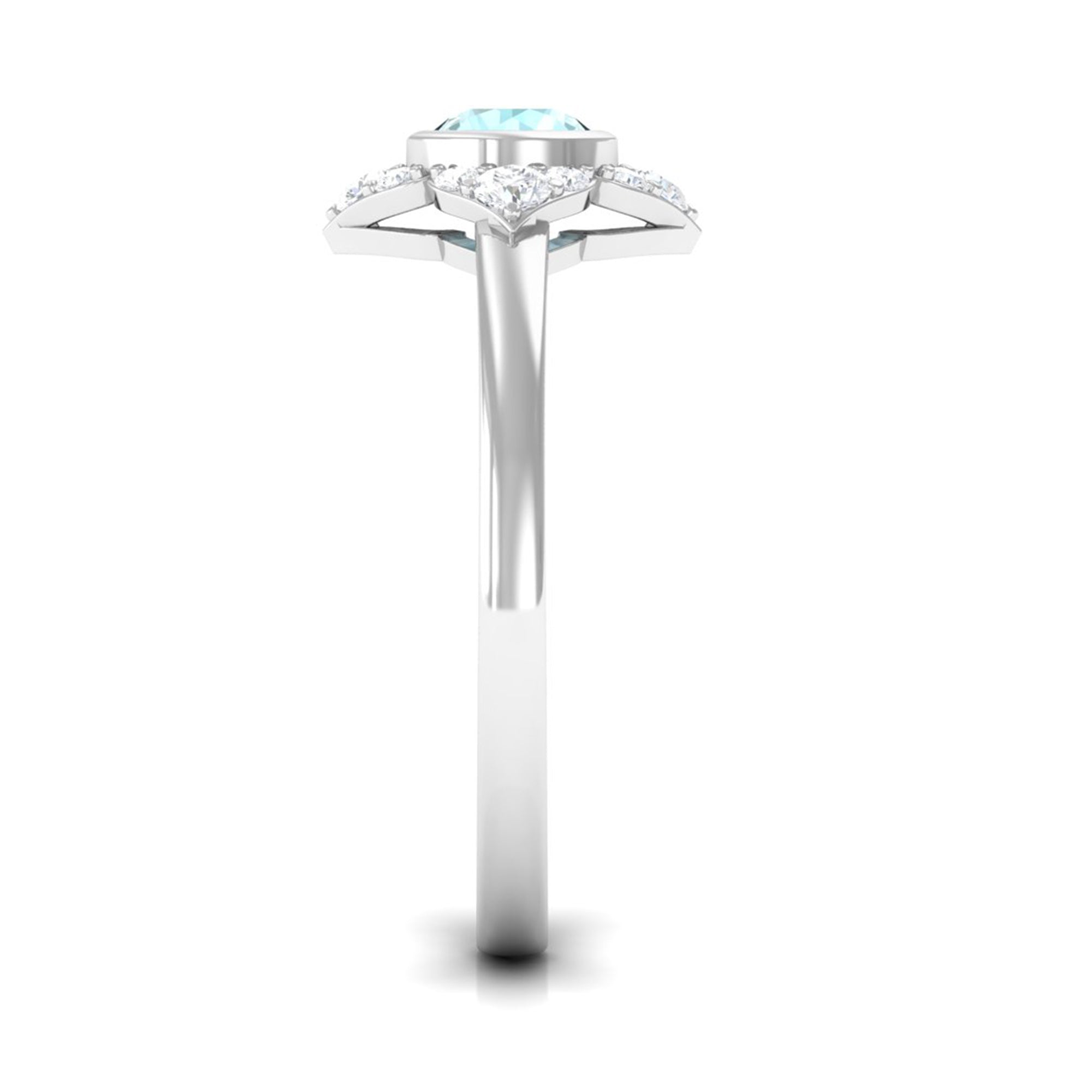 Bezel Set Sky Blue Topaz Flower Engagement Ring with Diamond Accent