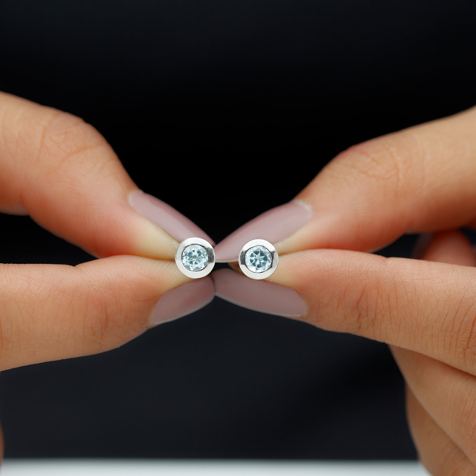 These delicate Sky Blue Topaz Earrings are perfect for celebrating any occasion. Featuring a Round Shape Sky Blue Topaz secured in Bezel Setting set as a Solitaire. The Screw Back Closure will keep these Simple Earrings secured in place. Shine all day in these Blue Topaz Stud Earrings for Women as you pair them with your casual, formal, or evening attire.
