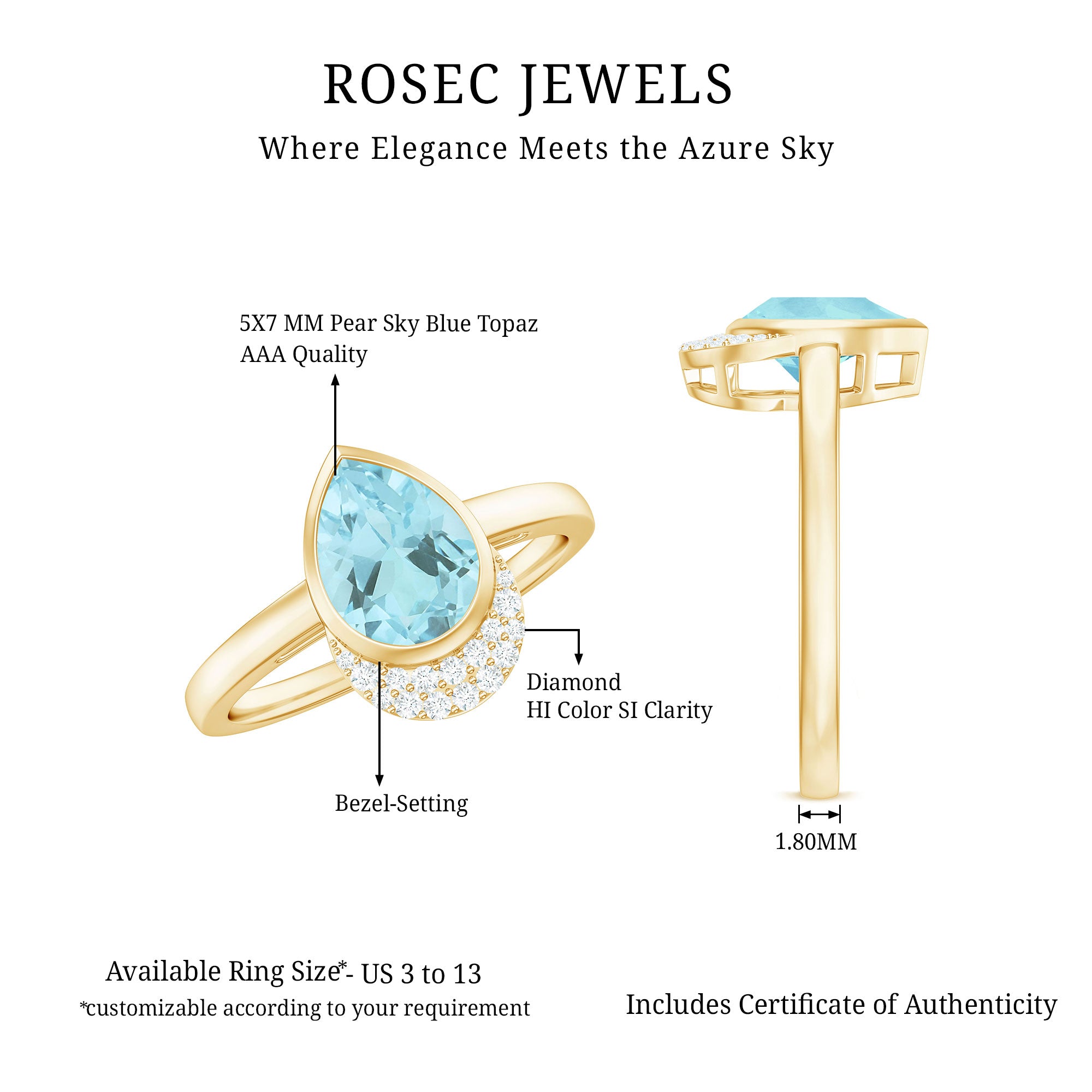 Natural 5X7 MM Sky Blue Topaz Pear Engagement Ring with Diamonds