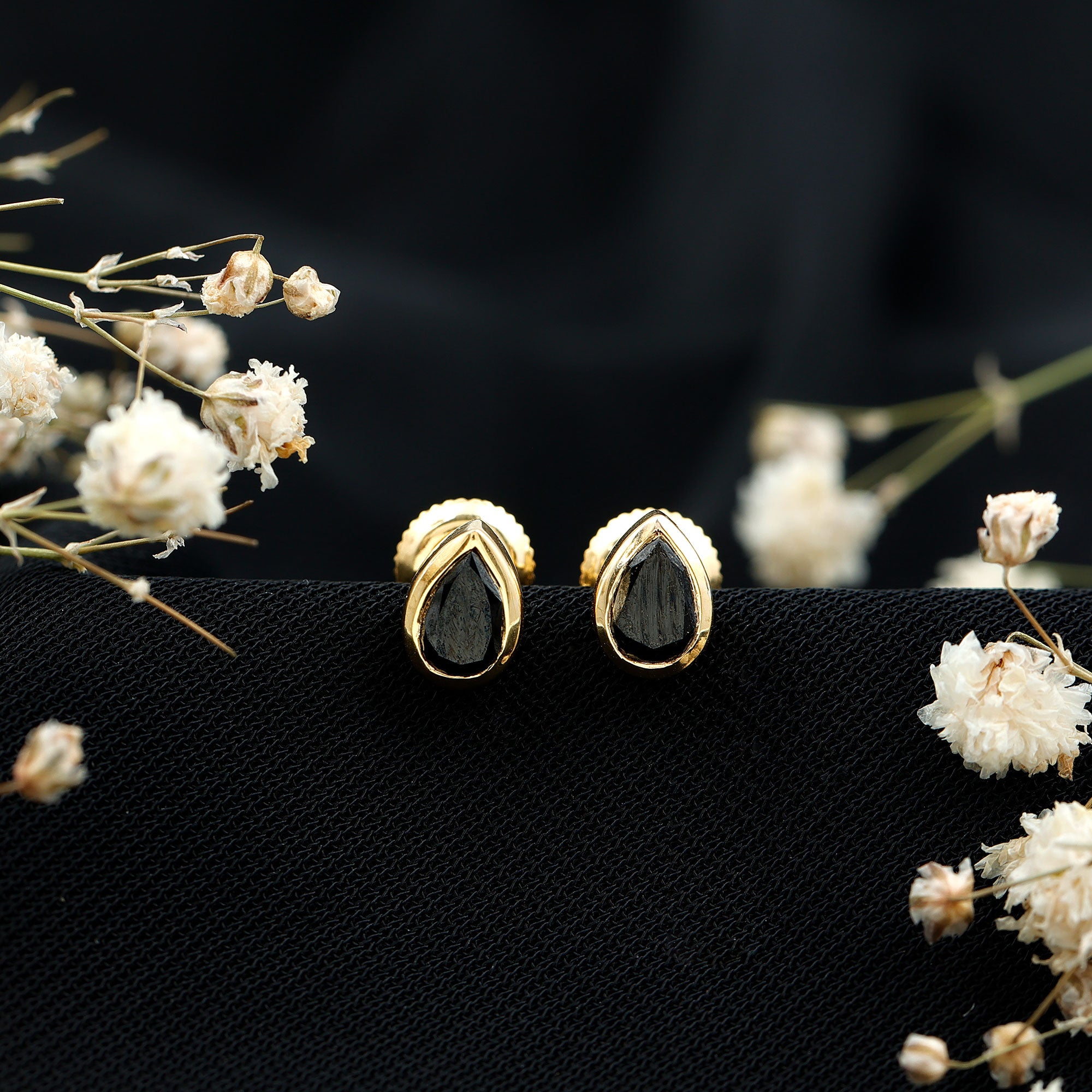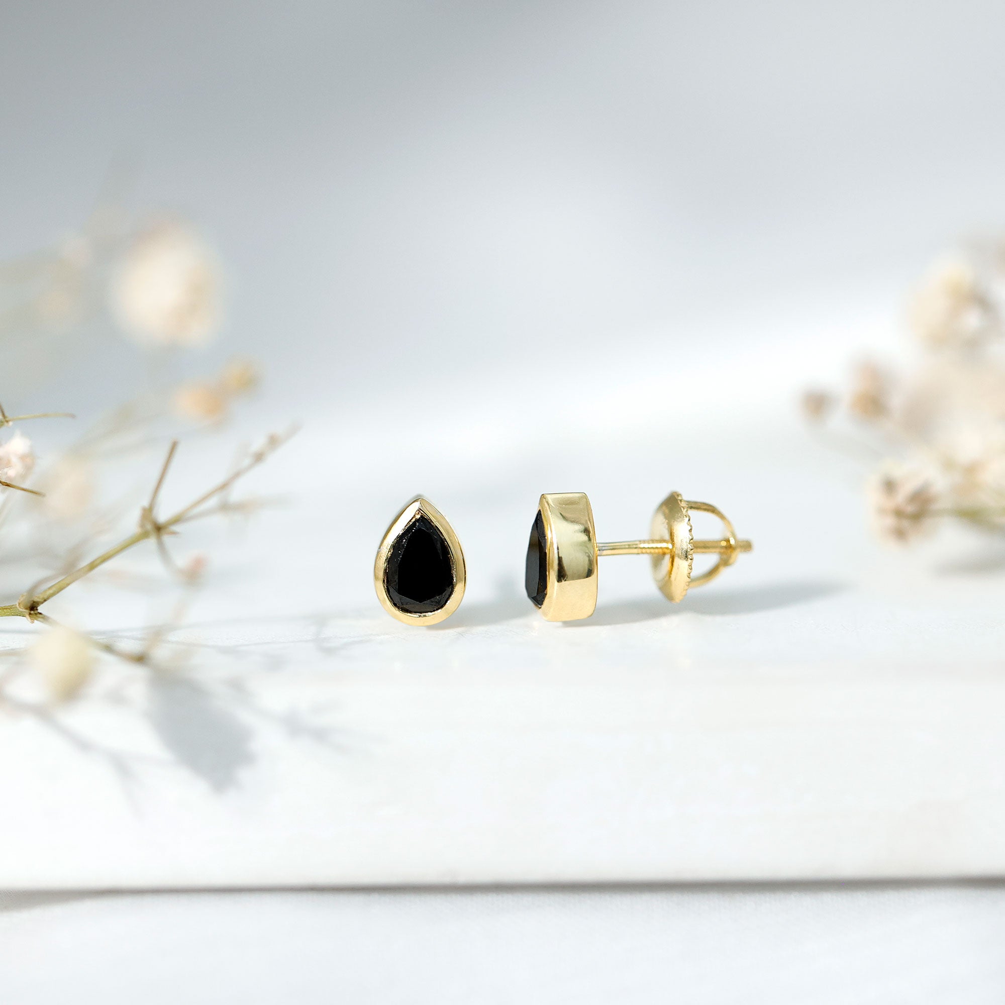 Crafted in 14K yellow gold plated silver, these Black Diamond Earrings bring a subtle style to any look without trying too hard. Each earring features a 4X6 MM pear shaped real black diamond, held securely in a smooth bezel setting that gives the design a polished and contemporary finish. The pear shape offers a soft elegance, while the overall look keeps the design feeling fresh and effortlessly wearable. The bezel setting not only enhances the stone’s shape but also adds a layer of protection, ideal for everyday wear. Fitted with screw-back closures, these Black Diamond Stud Earrings stay snug and secure, so you can move through your day with comfort and confidence. As the April birthstone, black diamonds represent strength, resilience, and clarity, making these Pear Shaped Earrings a thoughtful gift or personal reminder of inner power. Whether you are adding to your own collection or picking out something meaningful for someone special, these April Birthstone Earrings bring a bold, modern vibe to a timeless style. Understated but far from ordinary, they are the kind of piece you will reach for again and again.