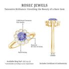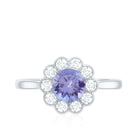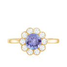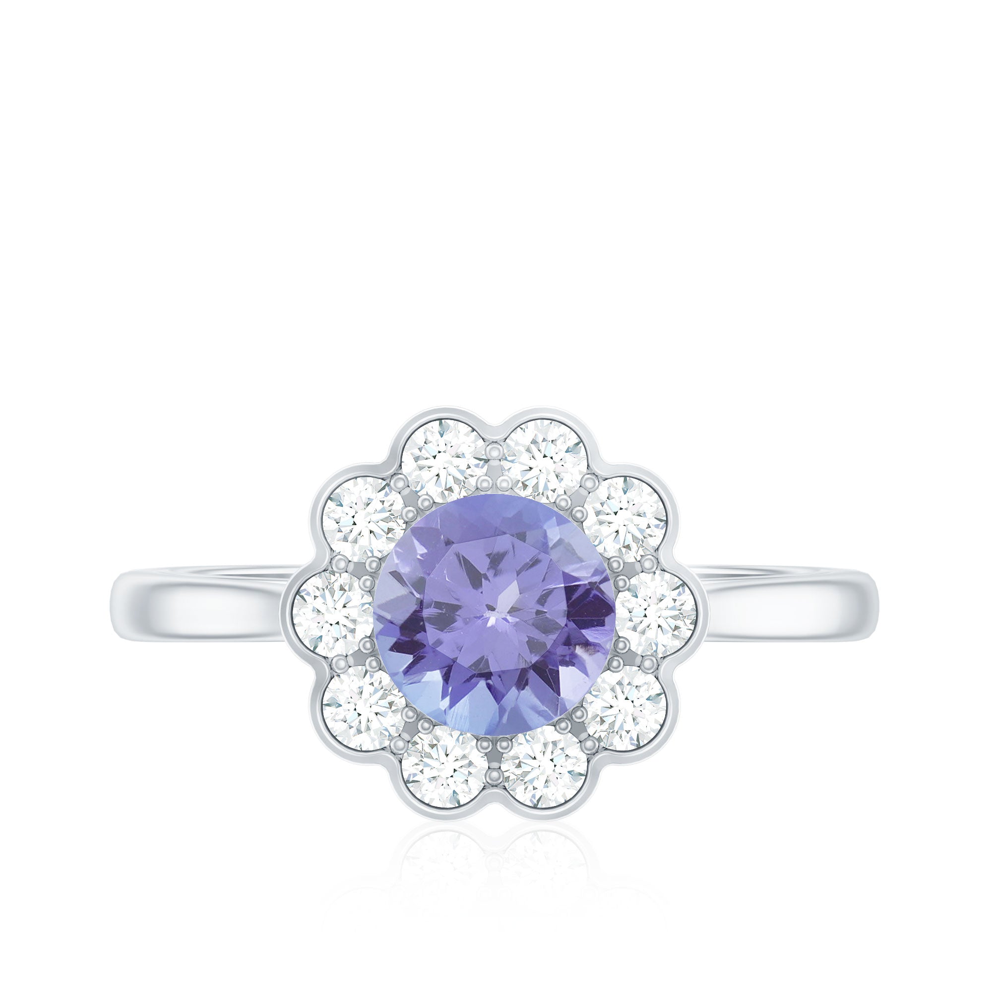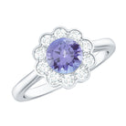 Let her know that your love for her would always bloom as bright as this Tanzanite Flower Engagement Ring. Dripped in the elegance of flower, it boasts a Center Stone of 6 MM Round Shape Tanzanite held by Bezel Setting and complemented by a sparkly Halo of Round Shape Diamond around. Certified for its premium quality, this Tanzanite Flower Ring is a true testament of timelessness, just like your love.