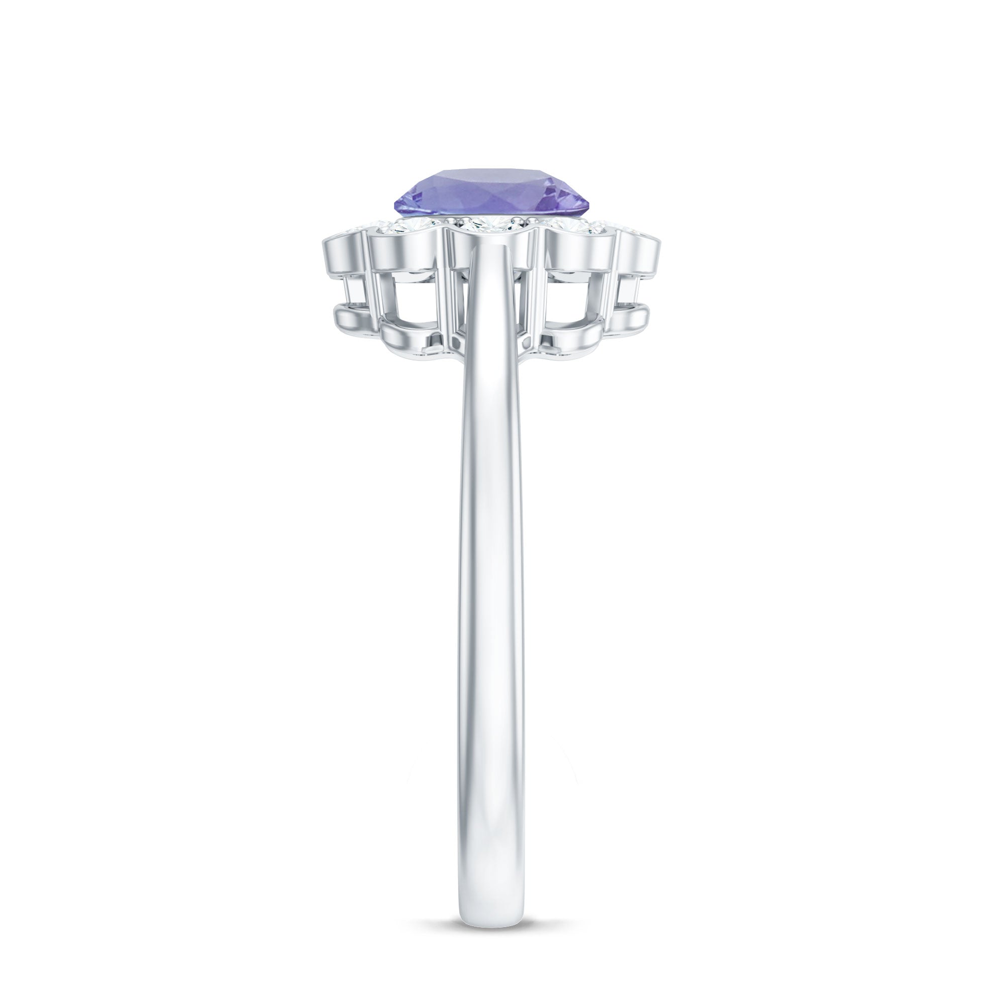 Bezel Set Tanzanite and Diamond Flower Halo Engagement Ring