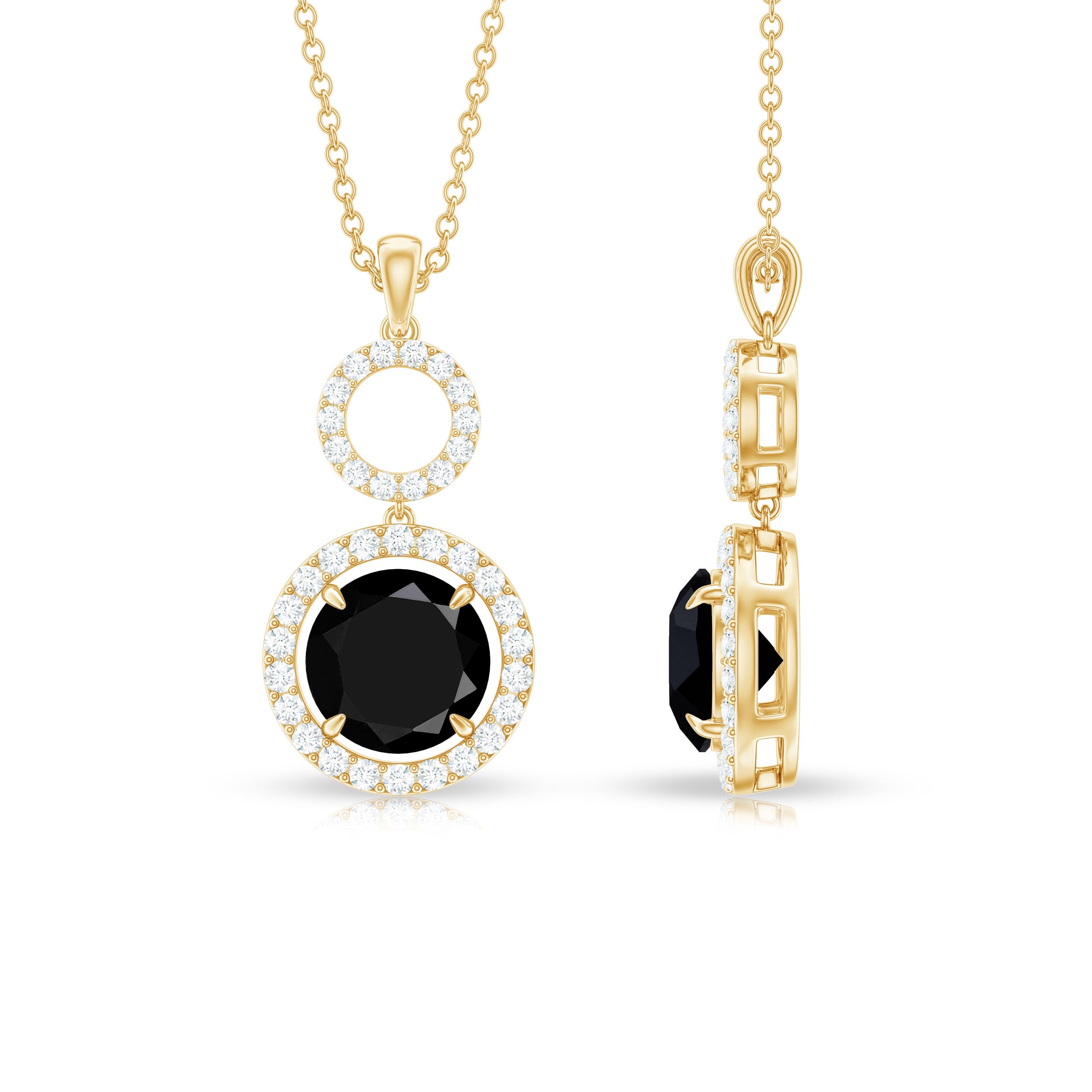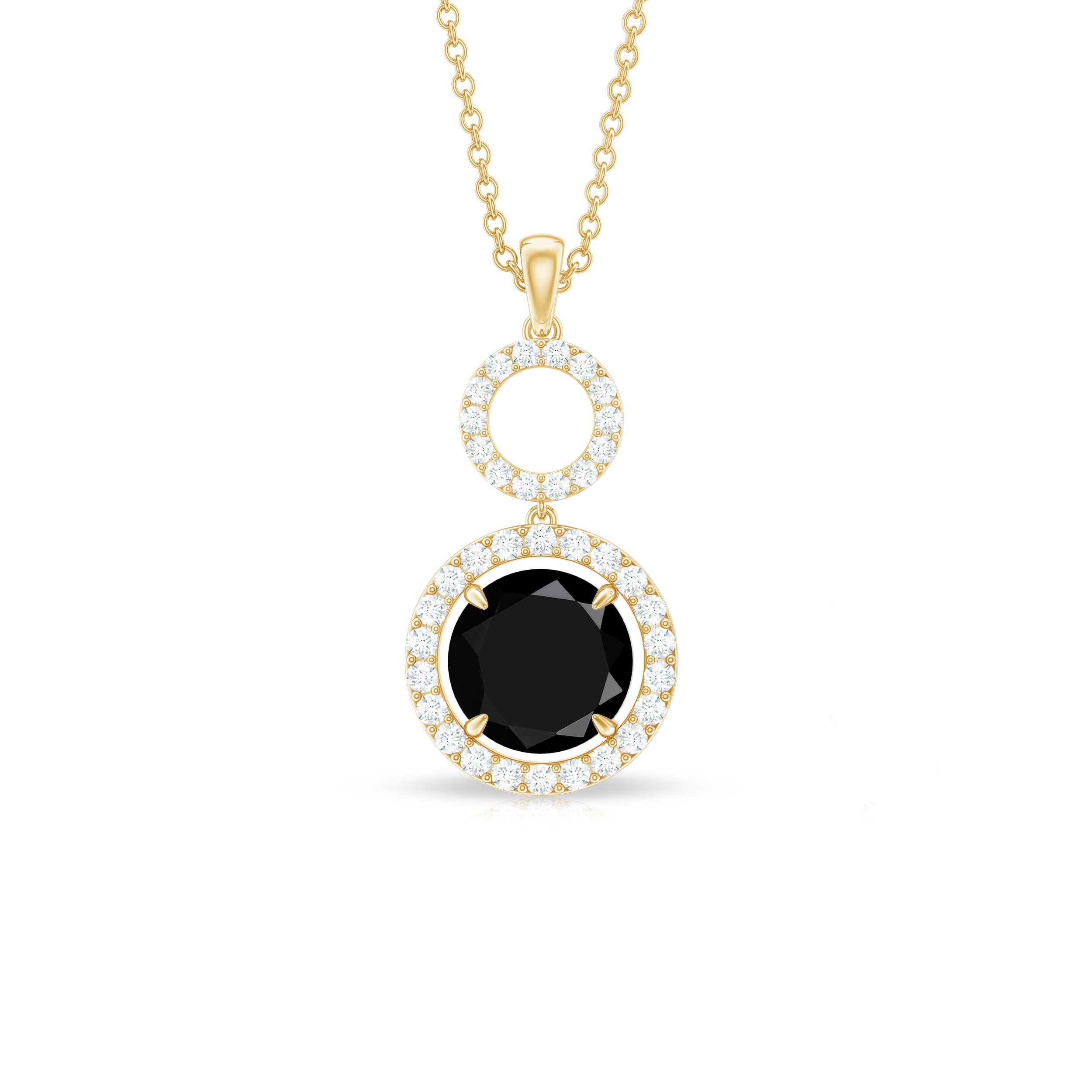 Grab this Dangle Pendant Necklace for your special one as it is embellished with Round Shape Black Onyx secured in Claw Setting while additional Round Shape Diamonds for a sparkly look. Make everyone stop and stare at our Black Onyx Pendant when you flaunt it with your party outfits.