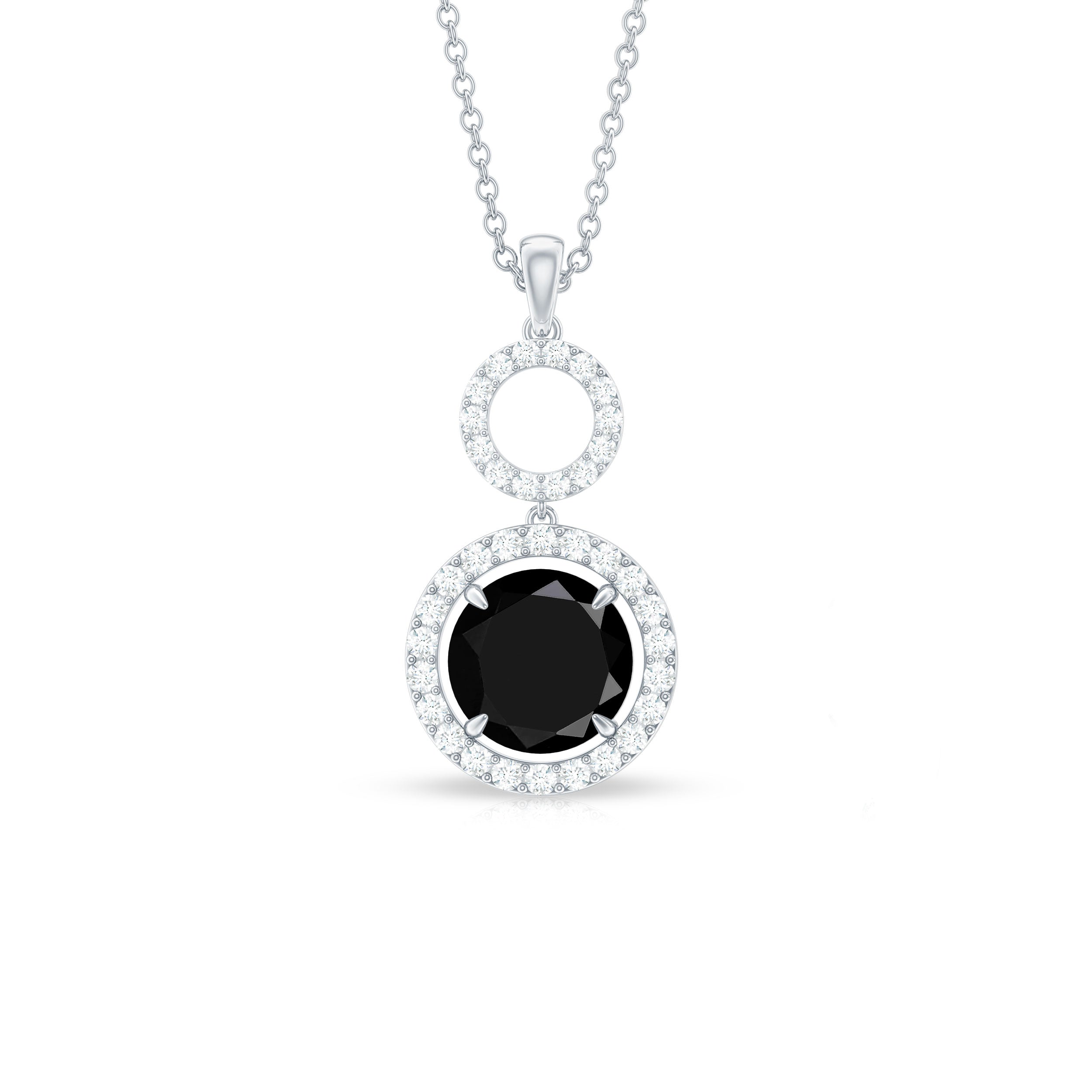 Black Onyx and Diamond Halo Dangle Pendant Necklace