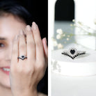 Black Onyx and Diamond Heart Engagement Ring With Ring Guard
