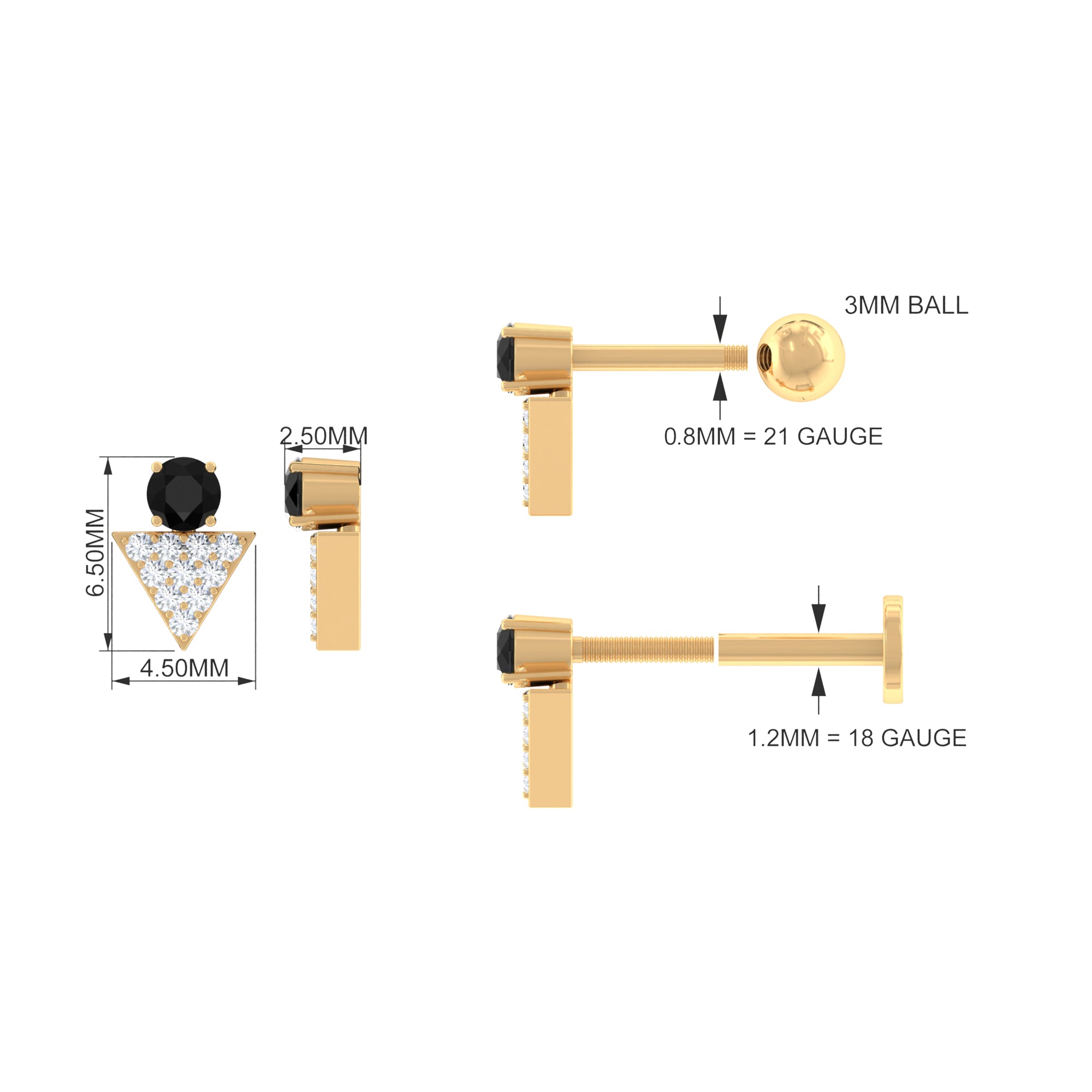 Black Onyx and Diamond Triangle Cartilage Earring in Gold