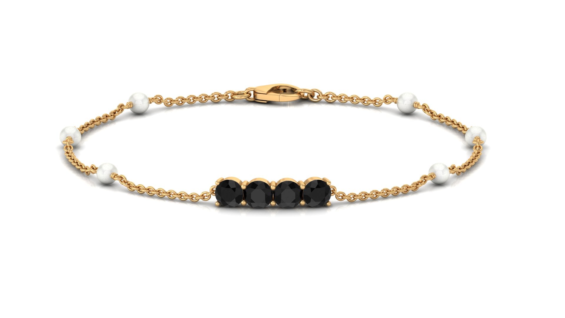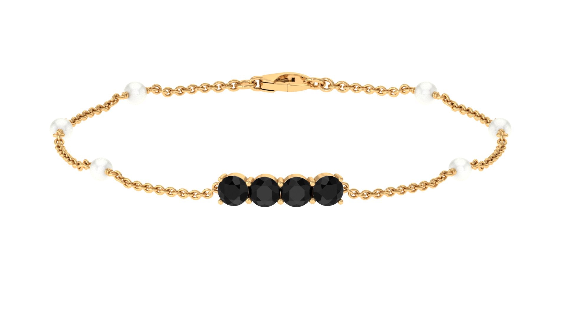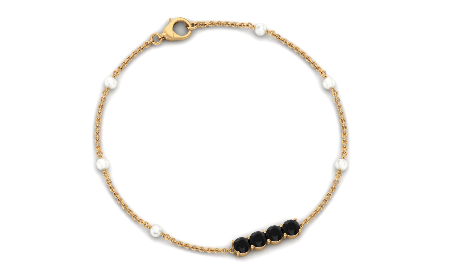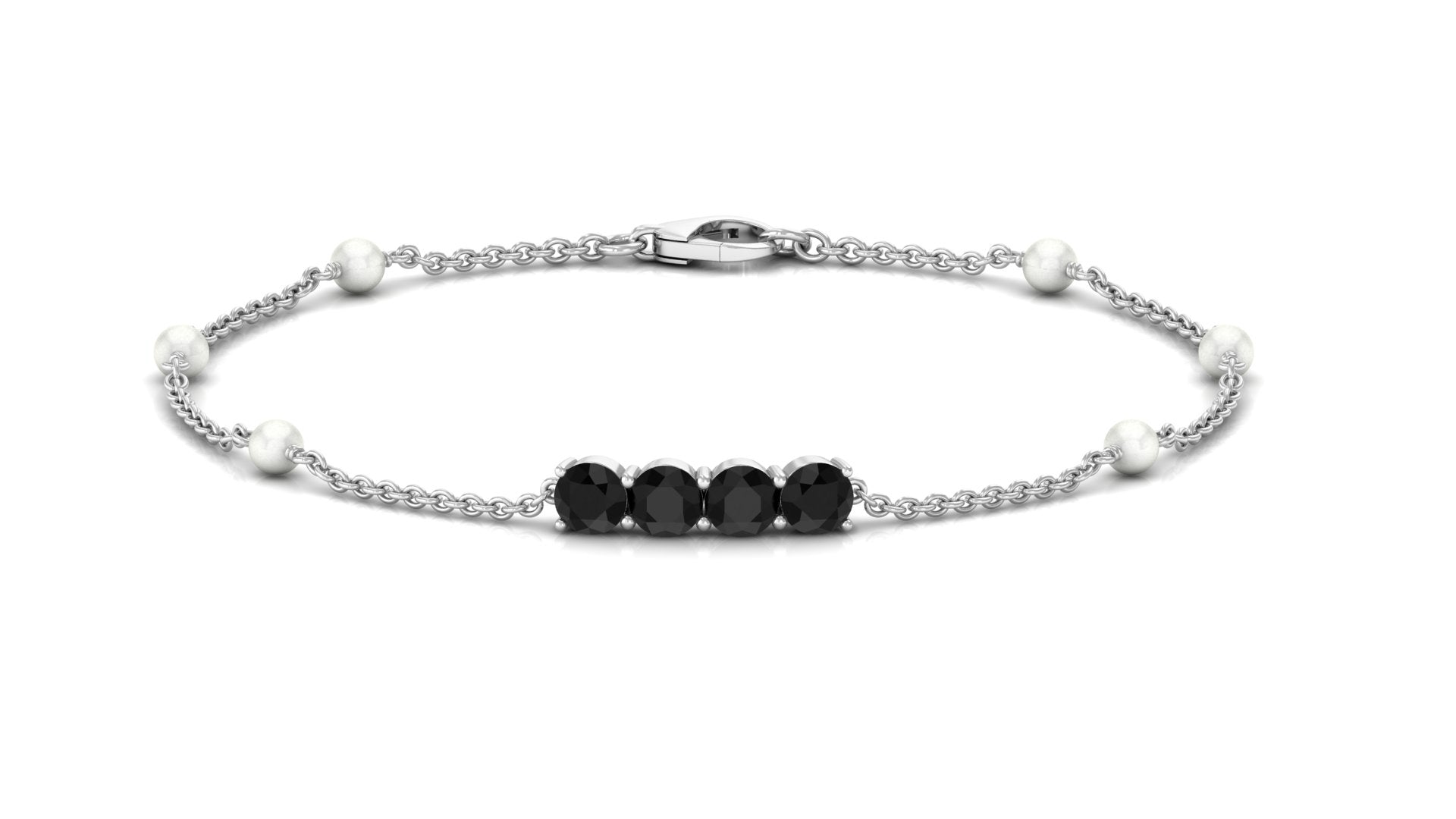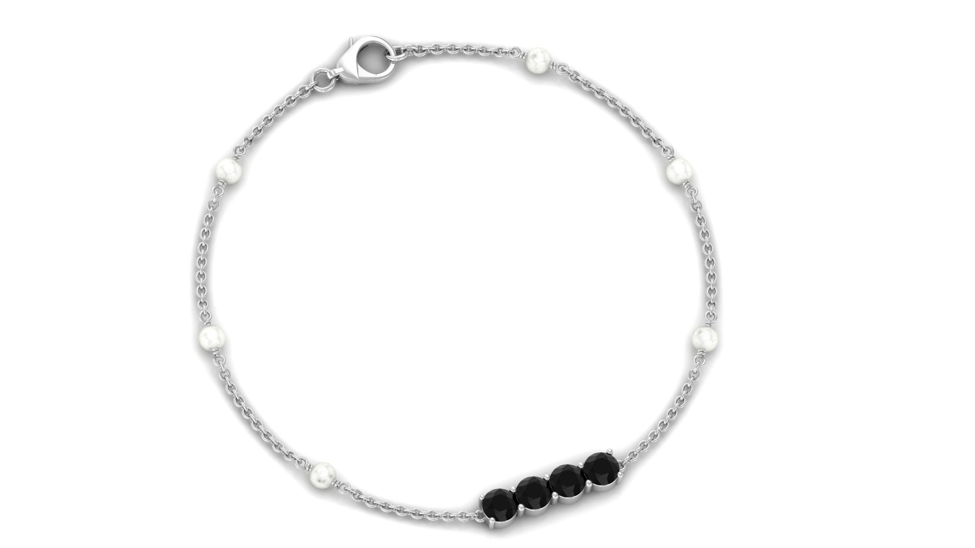 Black Onyx and Freshwater Pearl Minimal Station Chain Bracelet