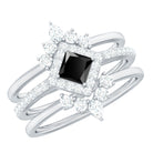 Certified 5mm Princess Cut Black Onyx Wedding Rings Set with Moissanite Band