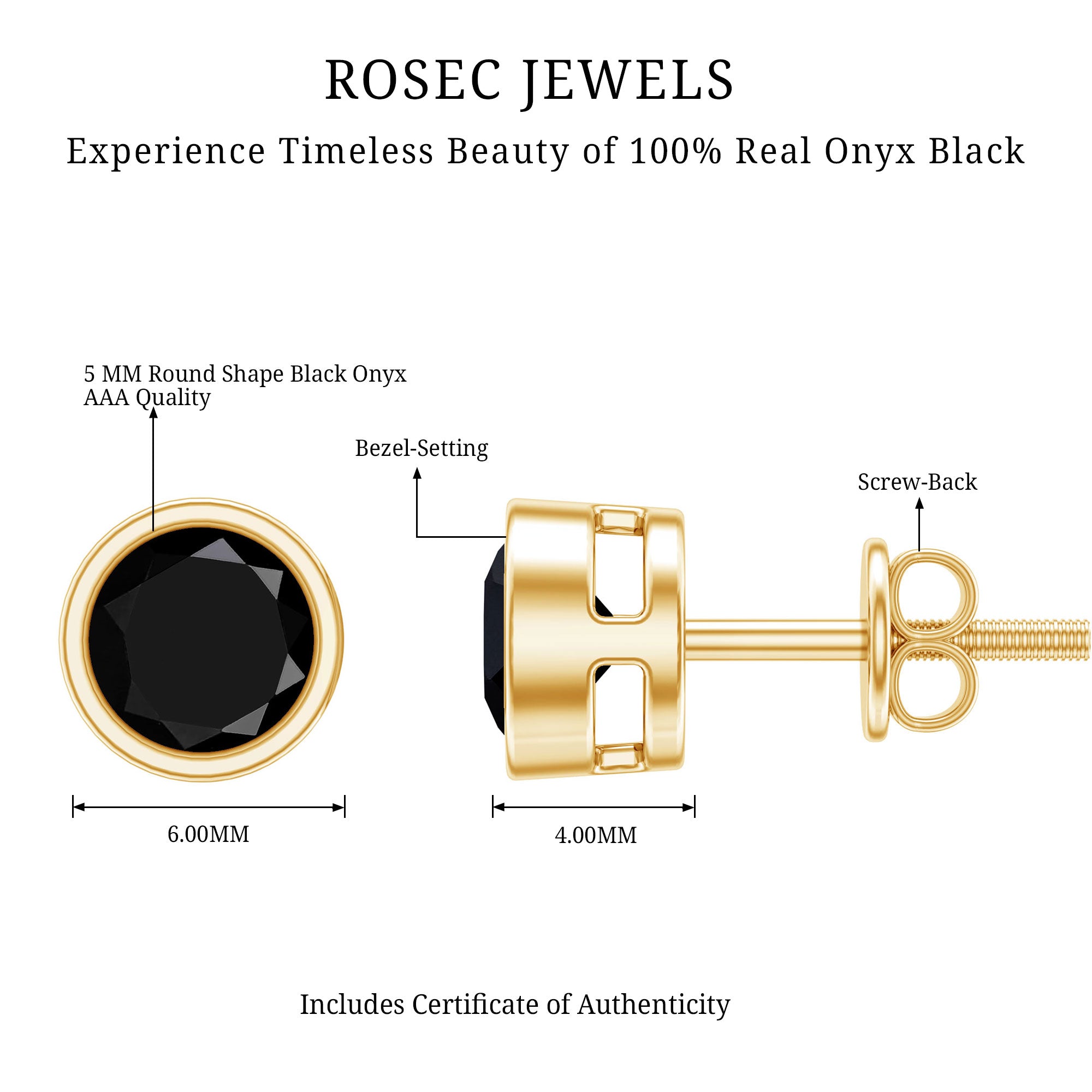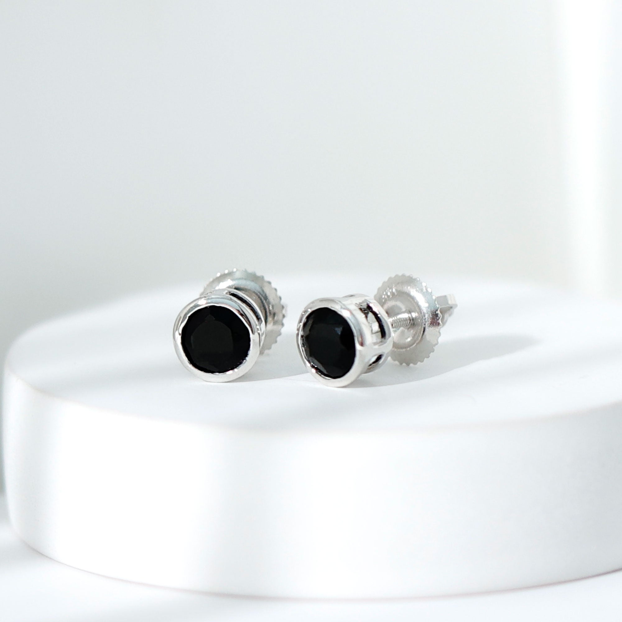 Some days just call for jewelry that feels simple, comforting, and easy to wear, and that is exactly what this pair of Black Onyx Stud Earrings brings to your style. They feature 5 MM round Black Onyx set in bezel setting, giving the design a modern look. The stone sits securely and shines with a classic charm that suits everyday outfits just as well as dressier moments. Made with screw back closures, the Solitaire Stud Earrings stay firmly in place, offering comfort and peace of mind throughout the day. They are perfect for women who love minimal jewelry that still holds a touch of meaning and elegance. The subtle shine of the Black Onyx adds a hint of confidence and calm, making the Bezel Set Earrings suitable for work, casual outings, or special celebrations. Whether you are searching for a thoughtful gift for someone you love or simply want to treat yourself to something timeless, this pair makes a lovely choice. Their simple beauty, durability, and effortless style allow Black Onyx Earrings to become a piece you will reach for again and again.