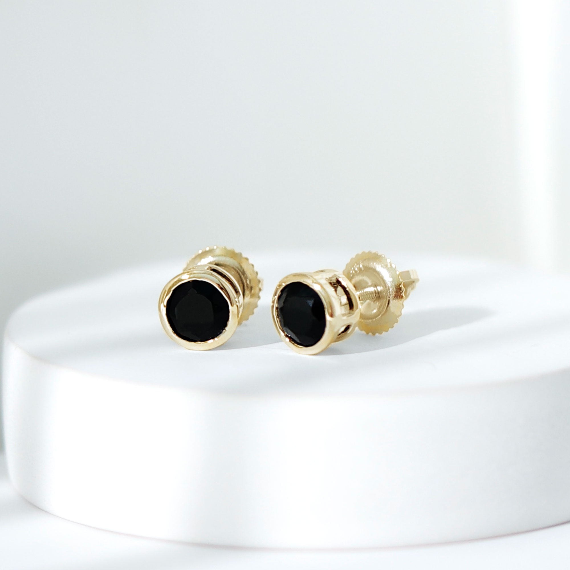 Black Onyx Solitaire Stud Earrings in Bezel Setting