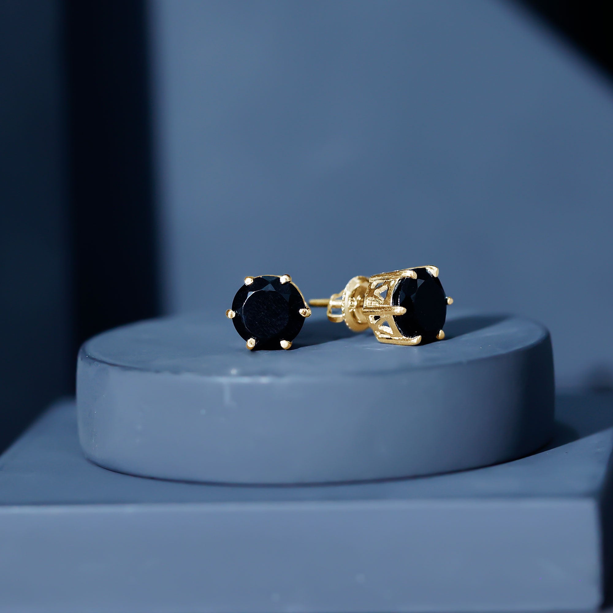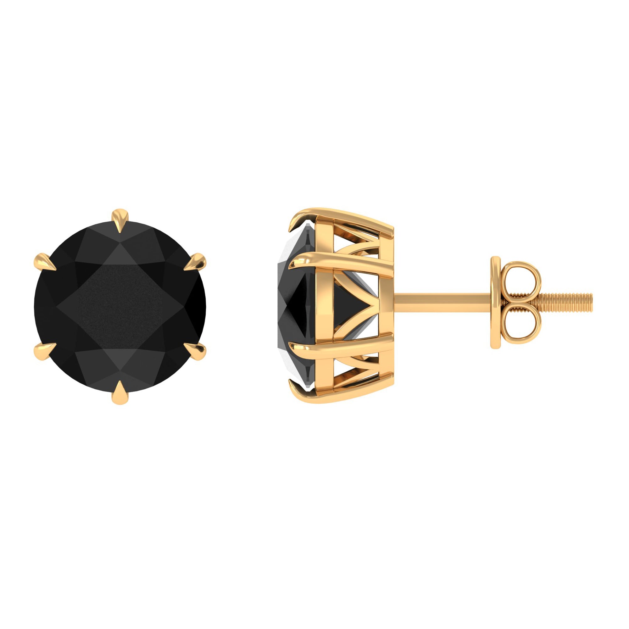 Elevate your style with these exquisite Solitaire Stud Earrings, each adorned with a round shape Black Onyx Gemstone, elegantly cradled in a secure 6 Claw Prong Setting. These earrings exude sophistication and individuality, making them the perfect addition to your jewelry collection for any occasion.