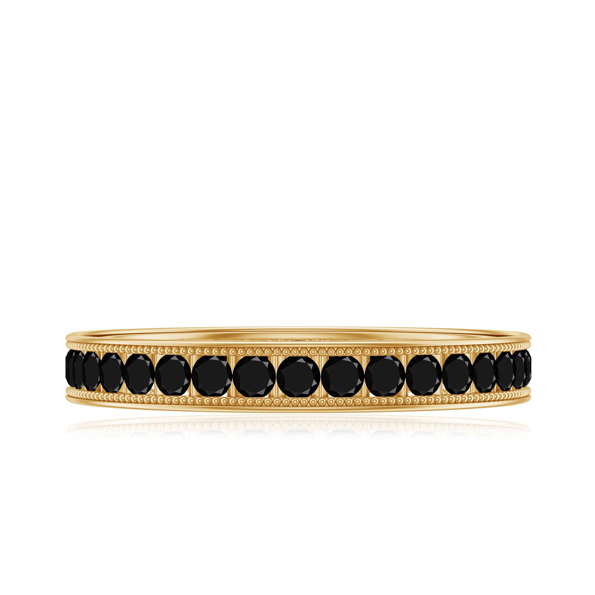 Curves and details come together in perfect harmony with this Onyx Eternity Band, creating a look that is both classic and charming. This Full Eternity Ring features round cut Black Onyx stones that circle the entire band, giving it a continuous flow of dark color. Each black onyx gem is carefully channel set to showcase its natural beauty and shine, making the Eternity Wedding Band a bold yet elegant accessory. Adding to its vintage charm, the edges of the band have delicate beaded detailing, which gives the Black Onyx Wedding Band a unique texture and an old world feel. Perfect for special moments, this Stackable Eternity Ring can be worn alone to make a strong style statement or paired with other rings to create a stacked look. It is a beautiful choice for anniversaries, celebrations, or just to add a touch of timeless elegance to your everyday outfit. Made with AAA quality Black Onyx, the ring is designed to last and maintain its stunning appearance for years to come. Whether you are treating yourself or searching for a thoughtful gift, this Black Onyx Anniversary Band brings a blend of sophistication and classic beauty to any jewelry collection. Its vintage inspired design and careful craftsmanship make it a truly special accessory for anyone who loves jewelry with character and charm.