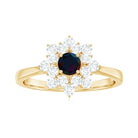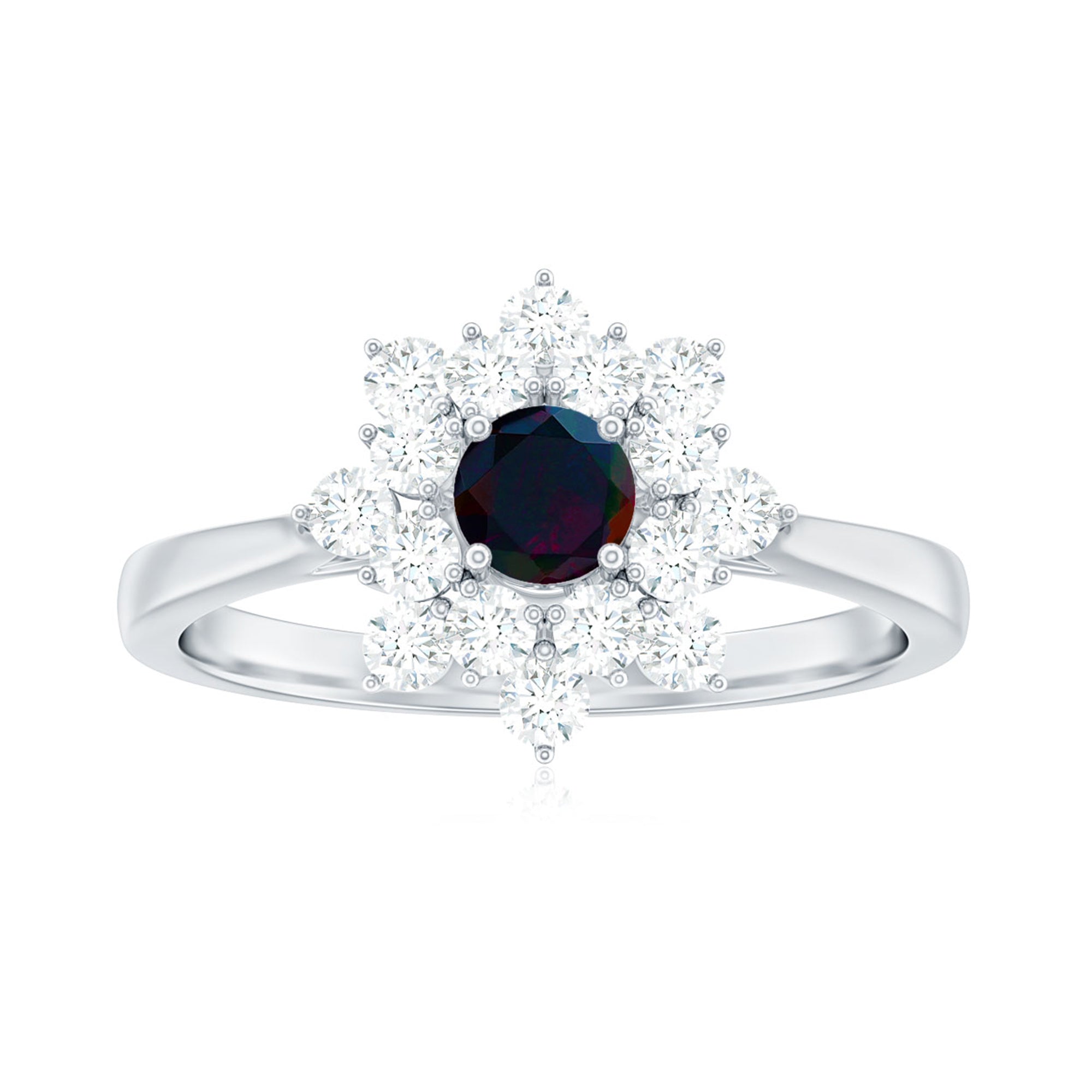 Black Opal and Diamond Flower Cluster Engagement Ring