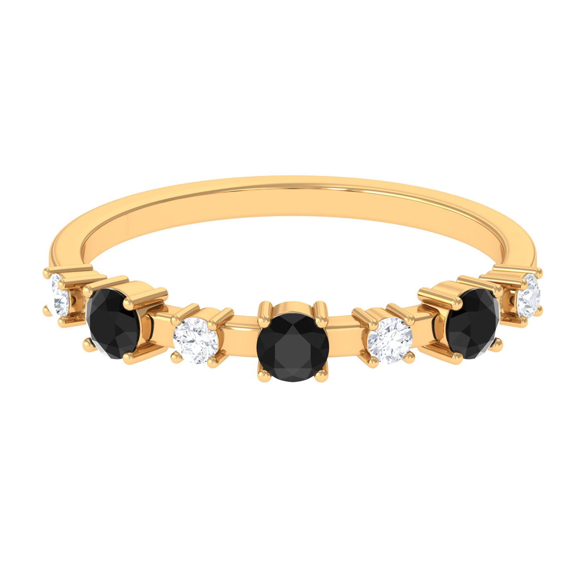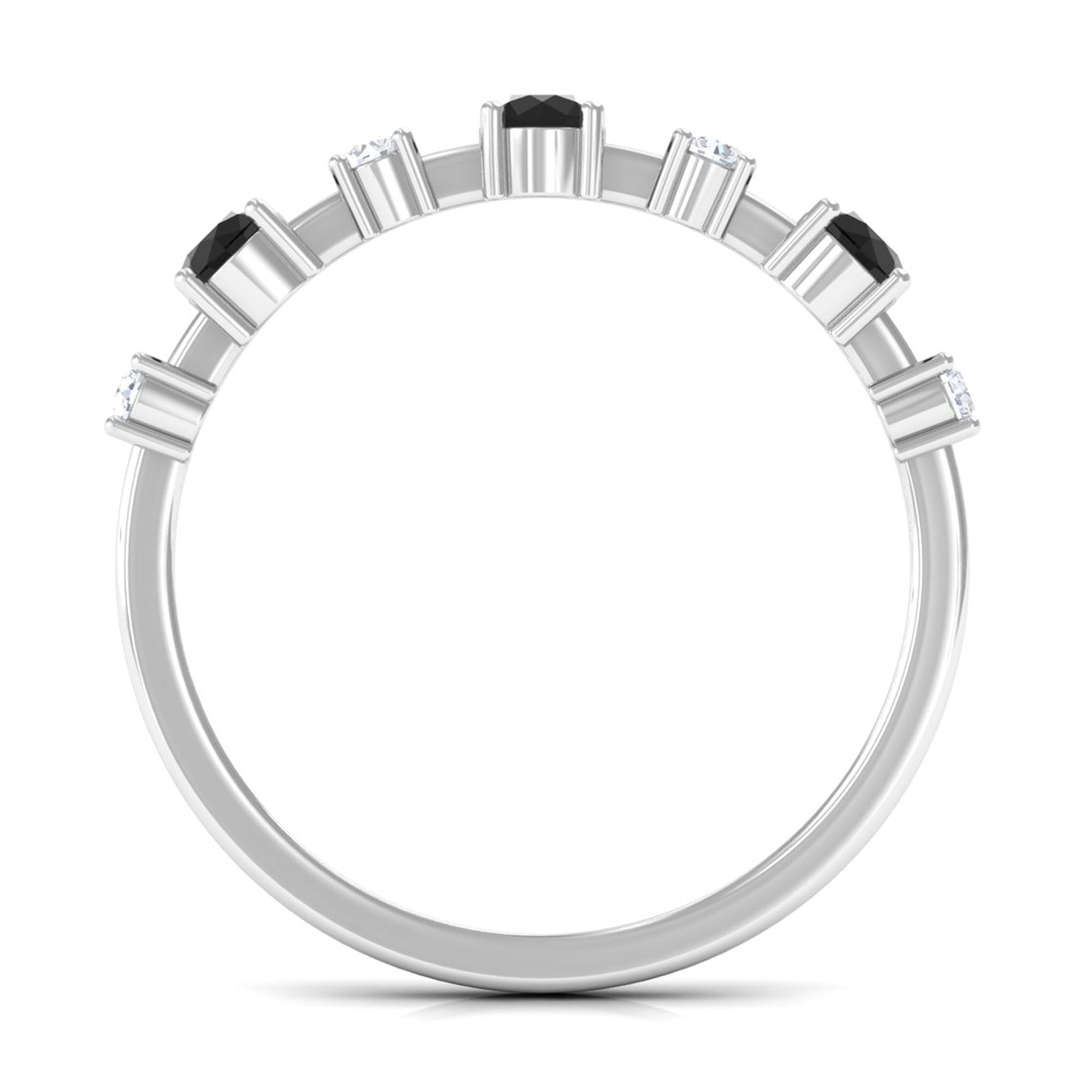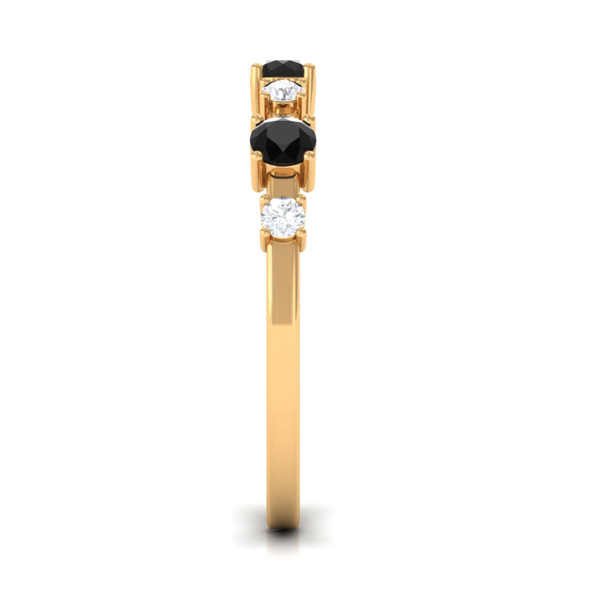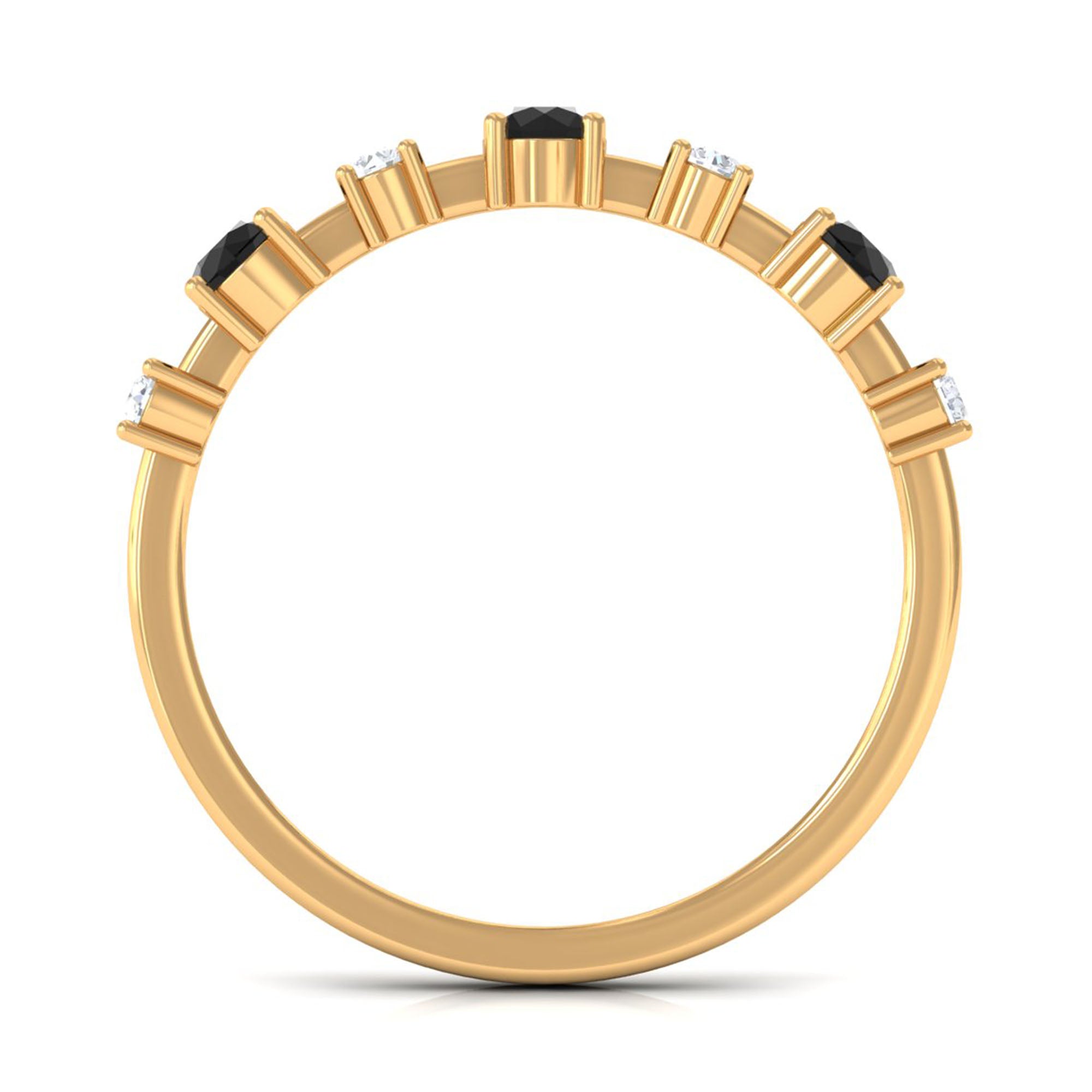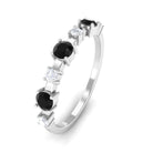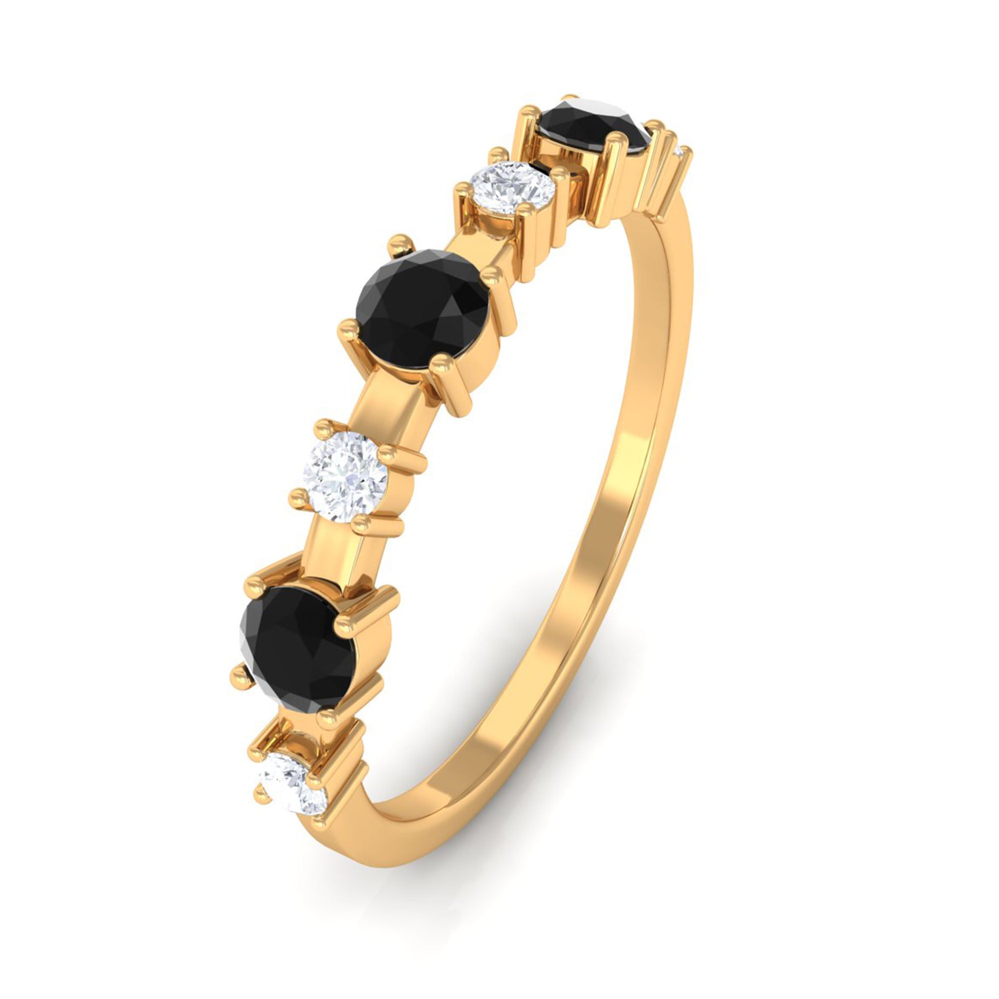 This striking Half Eternity Ring adds oomph to your look. It is adorned with Round Shape Black Spinel in Prong Setting and Diamond is a feminine jewelry.