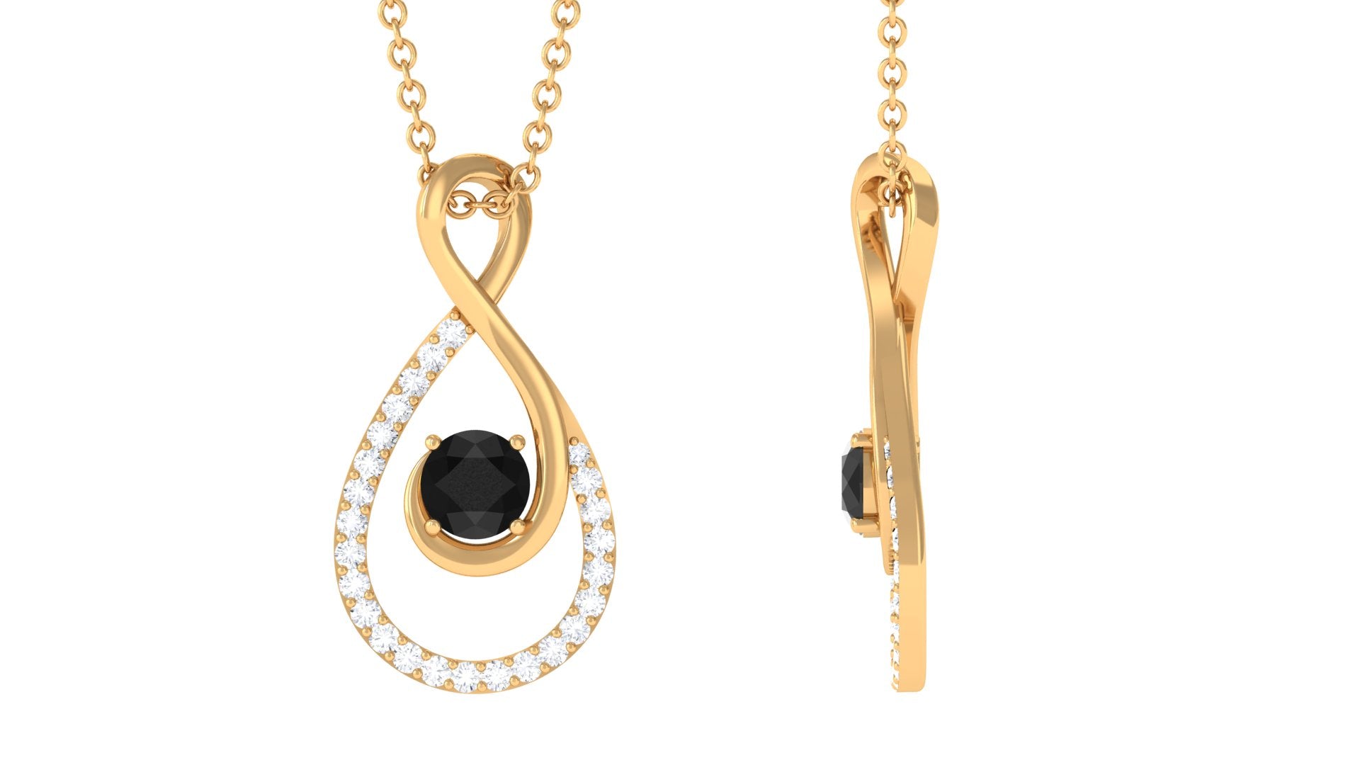 Experience the captivating beauty of the Infinity Pendant Necklace, where a sparkling Solitaire Black Spinel gracefully dances at its center. Surrounding this stunning Black Spinel, brilliant Round Diamond is elegantly encased, enhancing the shimmer and elegance of the Teardrop Pendant Necklace. It serves as a perfect gift for your special person on Valentines Day or your anniversary, showcasing your love and appreciation. Embrace the allure of this gorgeous piece, and let it be a symbol of your enduring affection and timeless style.