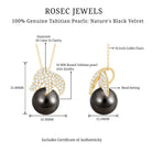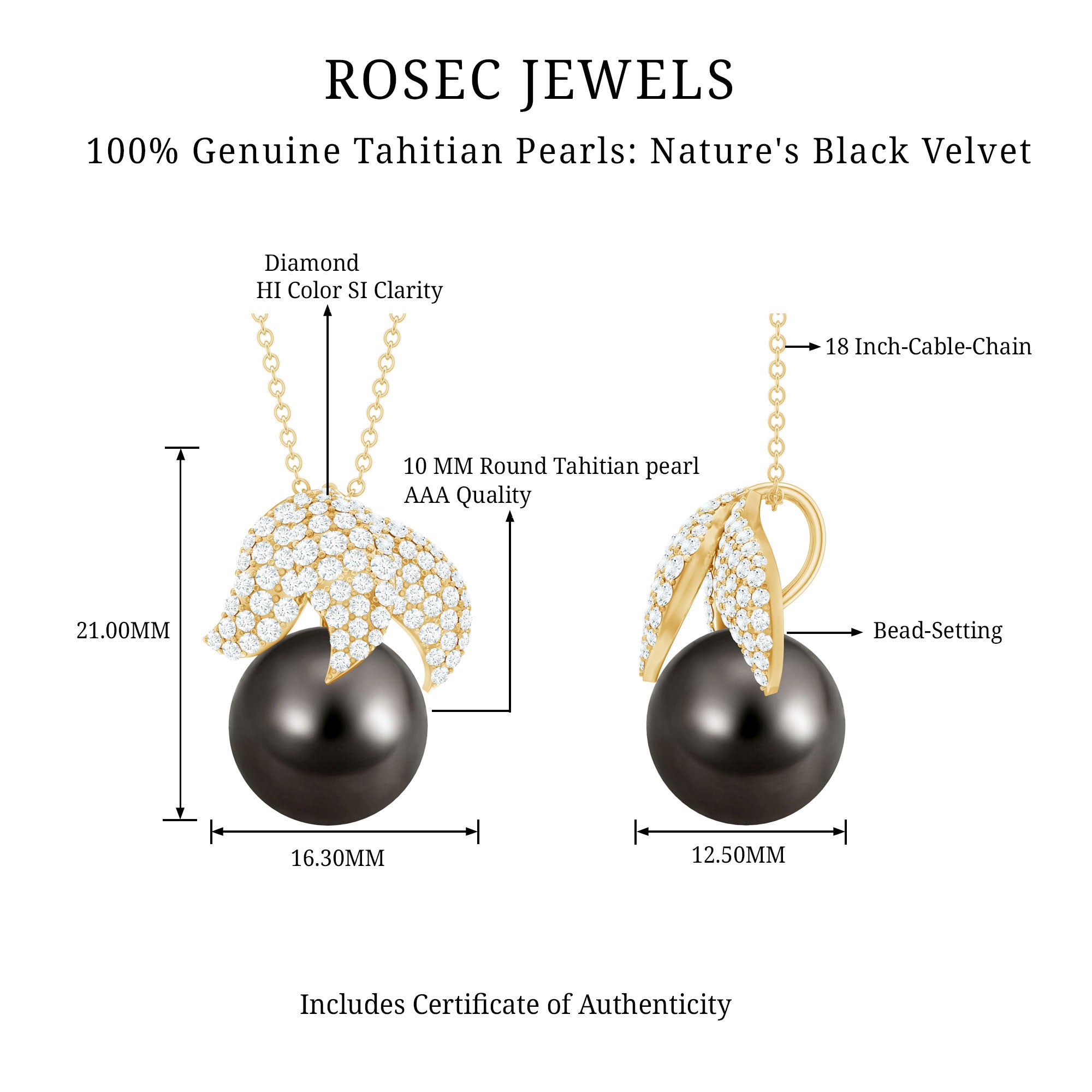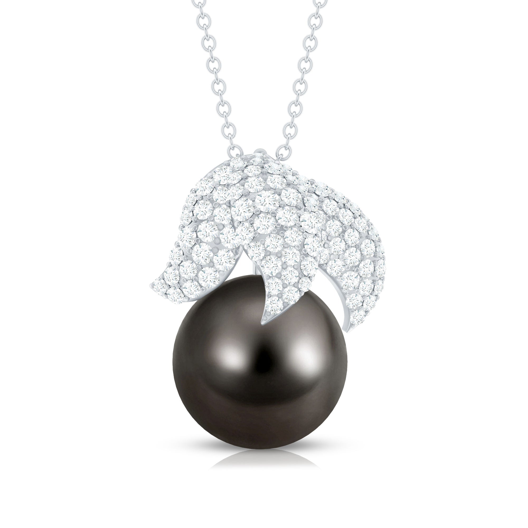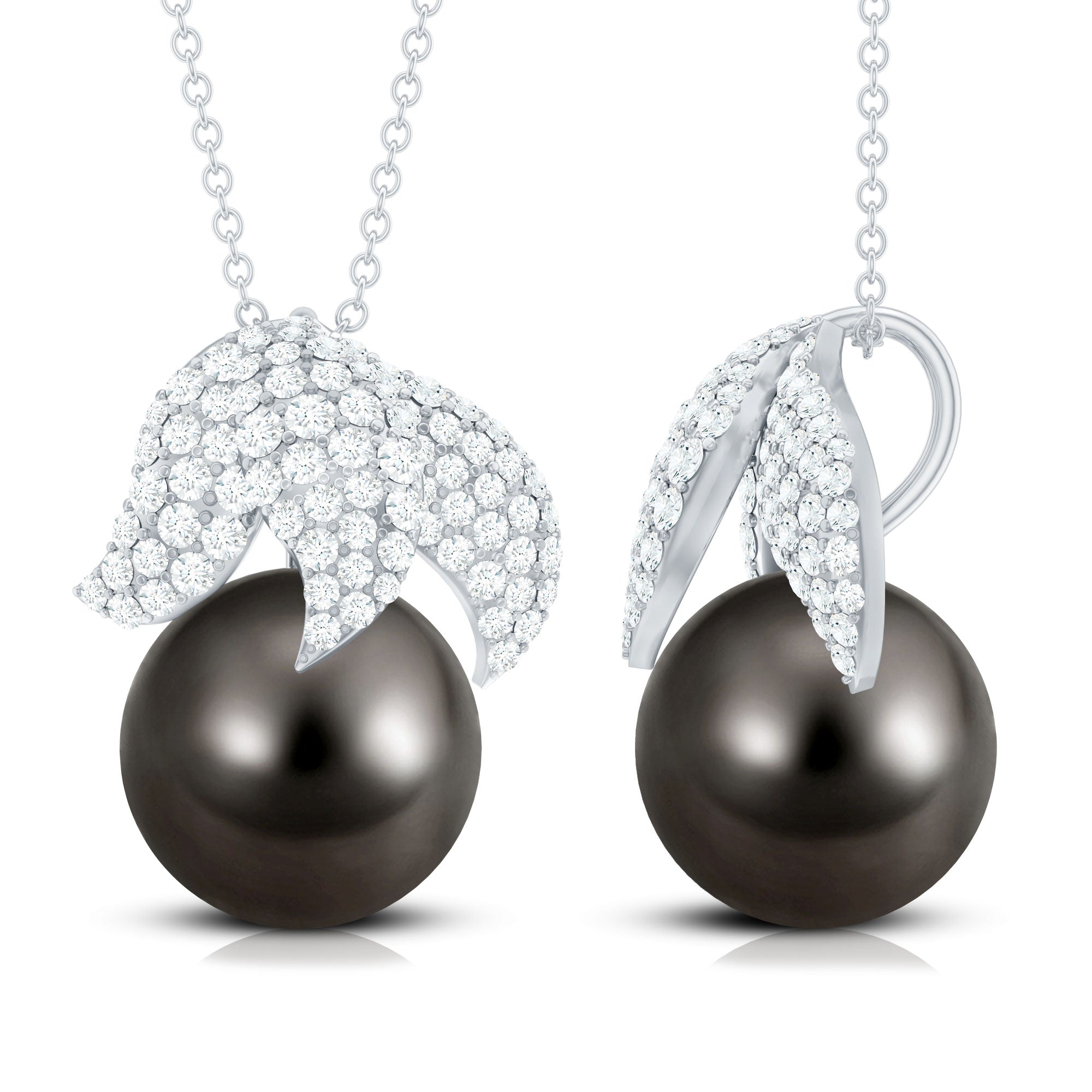 Black Tahitian Pearl and Diamond Leaf Pendant Necklace