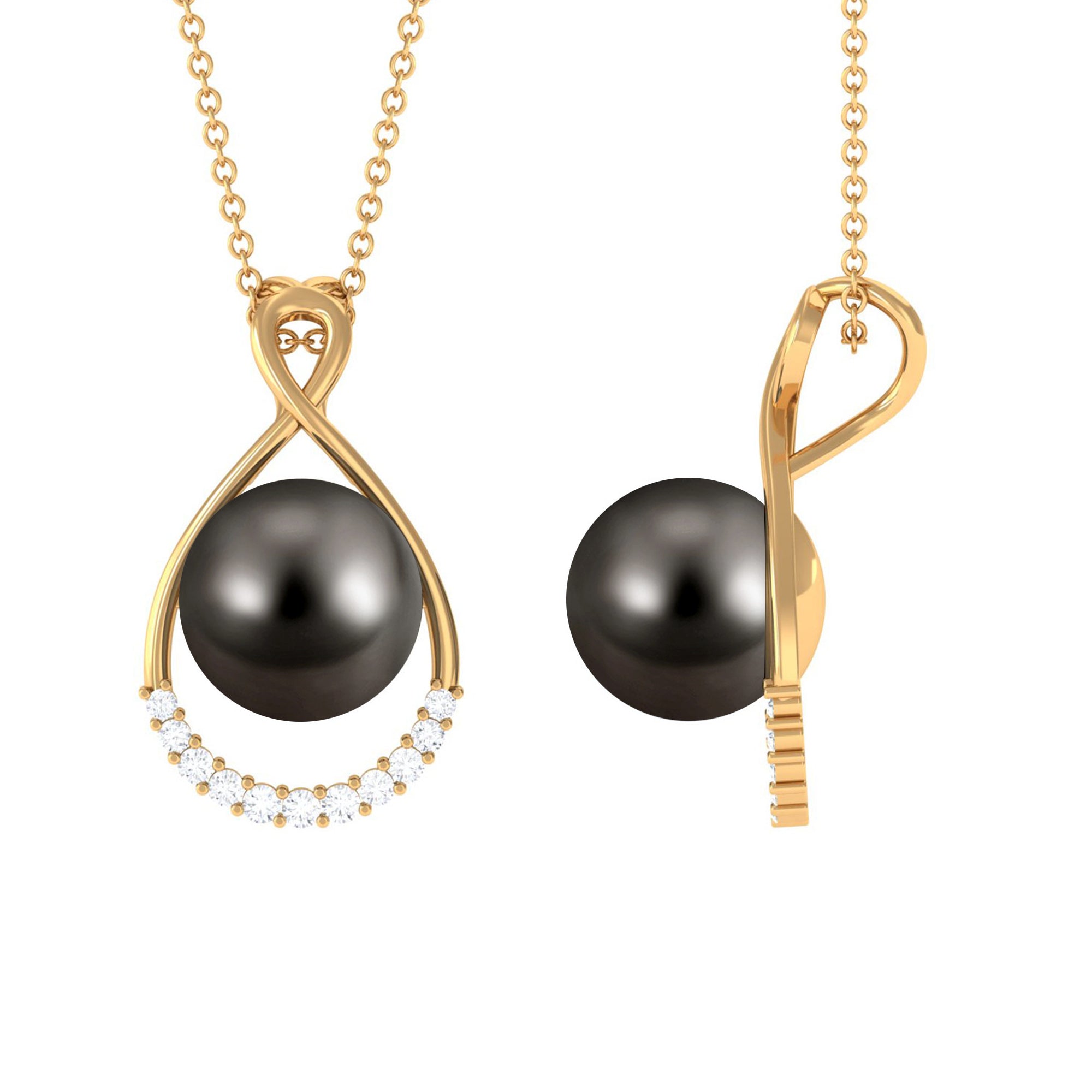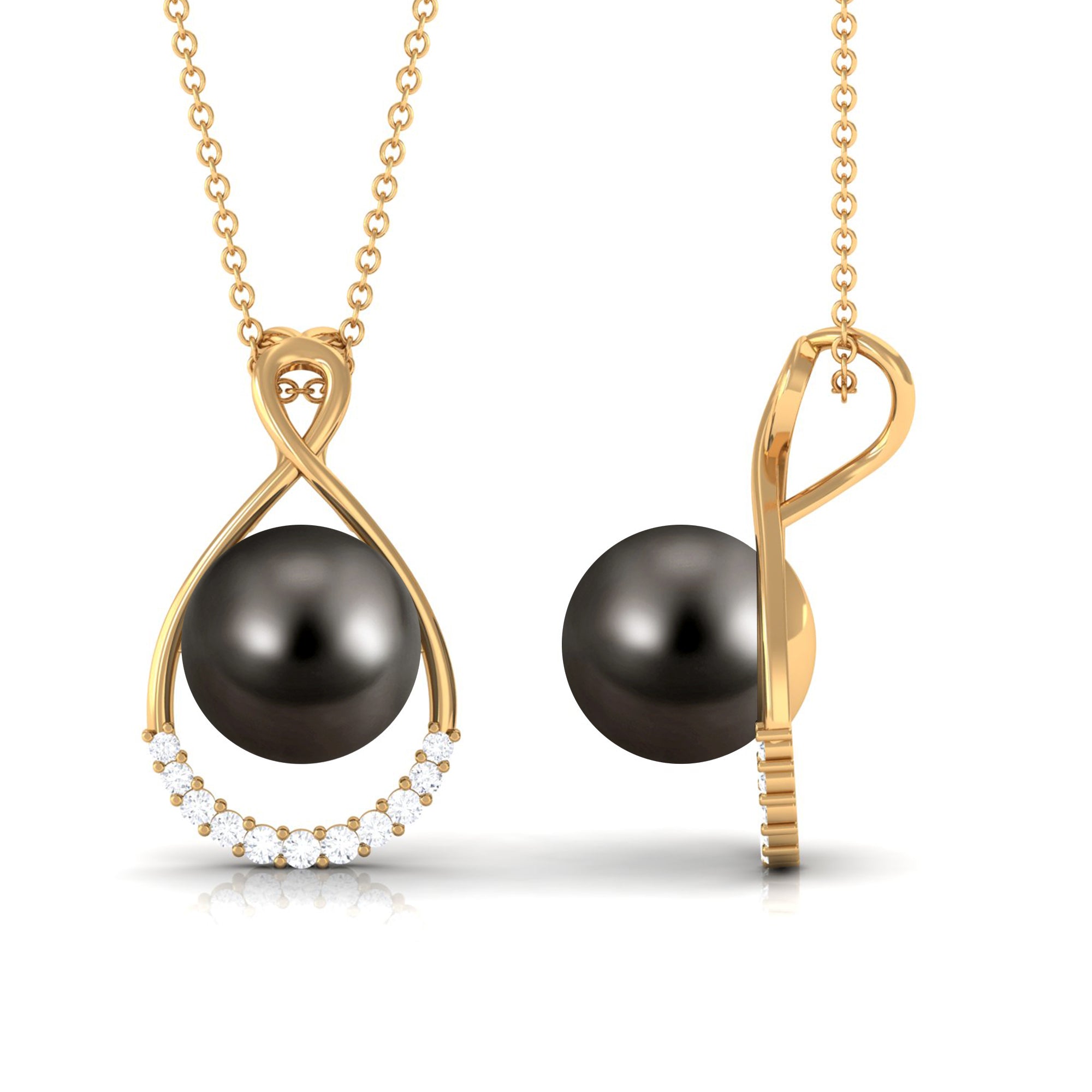 This Solitaire Pendant will complement your attire effortlessly as it is embellished with Round Shape Tahitian Pearl and additional Round Shape Diamond Accent. Get this Black Pearl Pendant and make her jewelry collection even more impressive by presenting it as a Birthday present. This Tahitian Pearl Pendant will complement her unique personality.