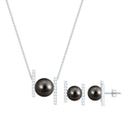 Youll absolutely adore this chic and trendy Black Jewelry Set. The Solitaire Jewelry Set is adorned with a Round Shape Tahitian Pearl in Bead Setting along with Round Cut Moissanite for a perfect sparkle. This Minimal Earring and Necklace Set, crafted in Gold, will give you an alluring and charming appeal that you wont want to take off.