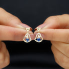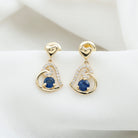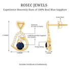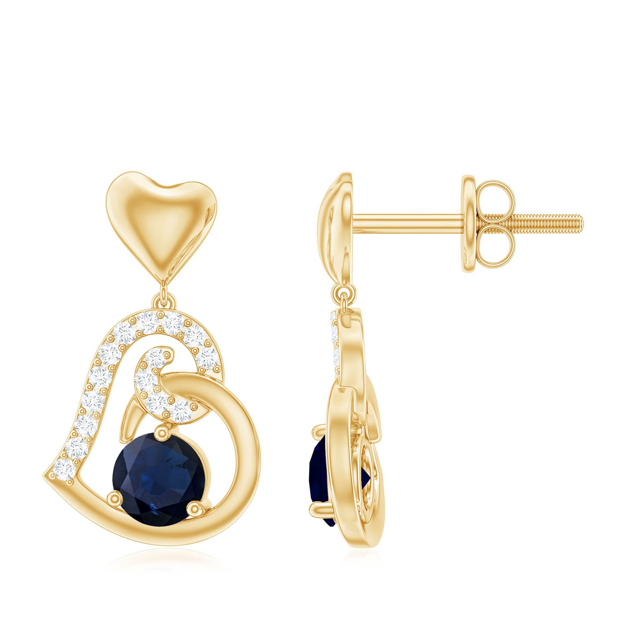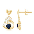 Be Dazzle and Flaunt your Style with these Unique Design Heart Drop Earrings. The Drop Earrings are embellished with Round Shape Blue Sapphire as Center Stone in 3 Prong Setting.