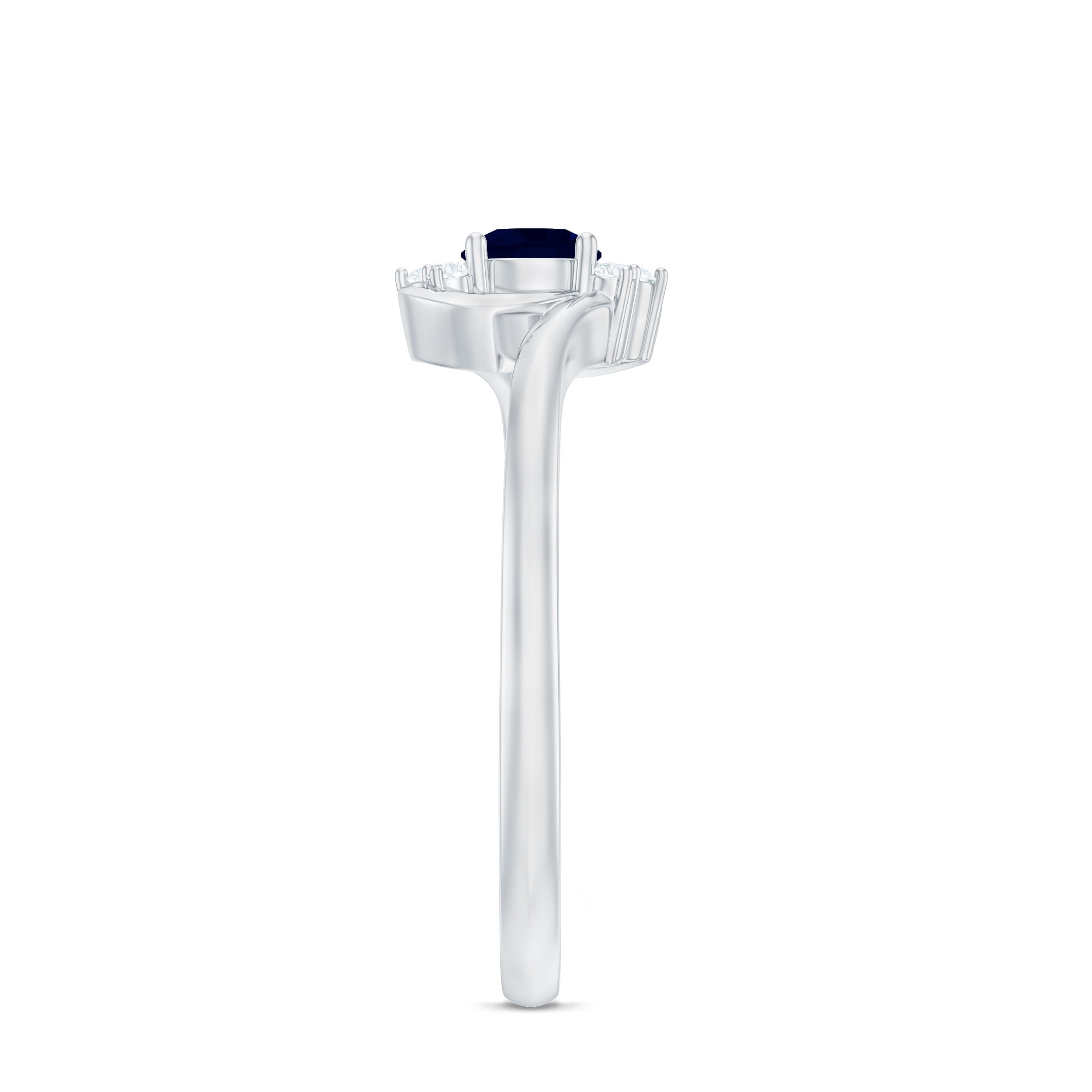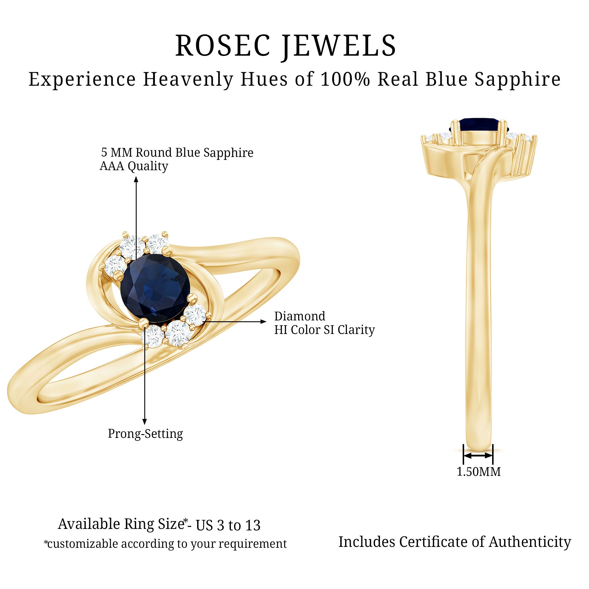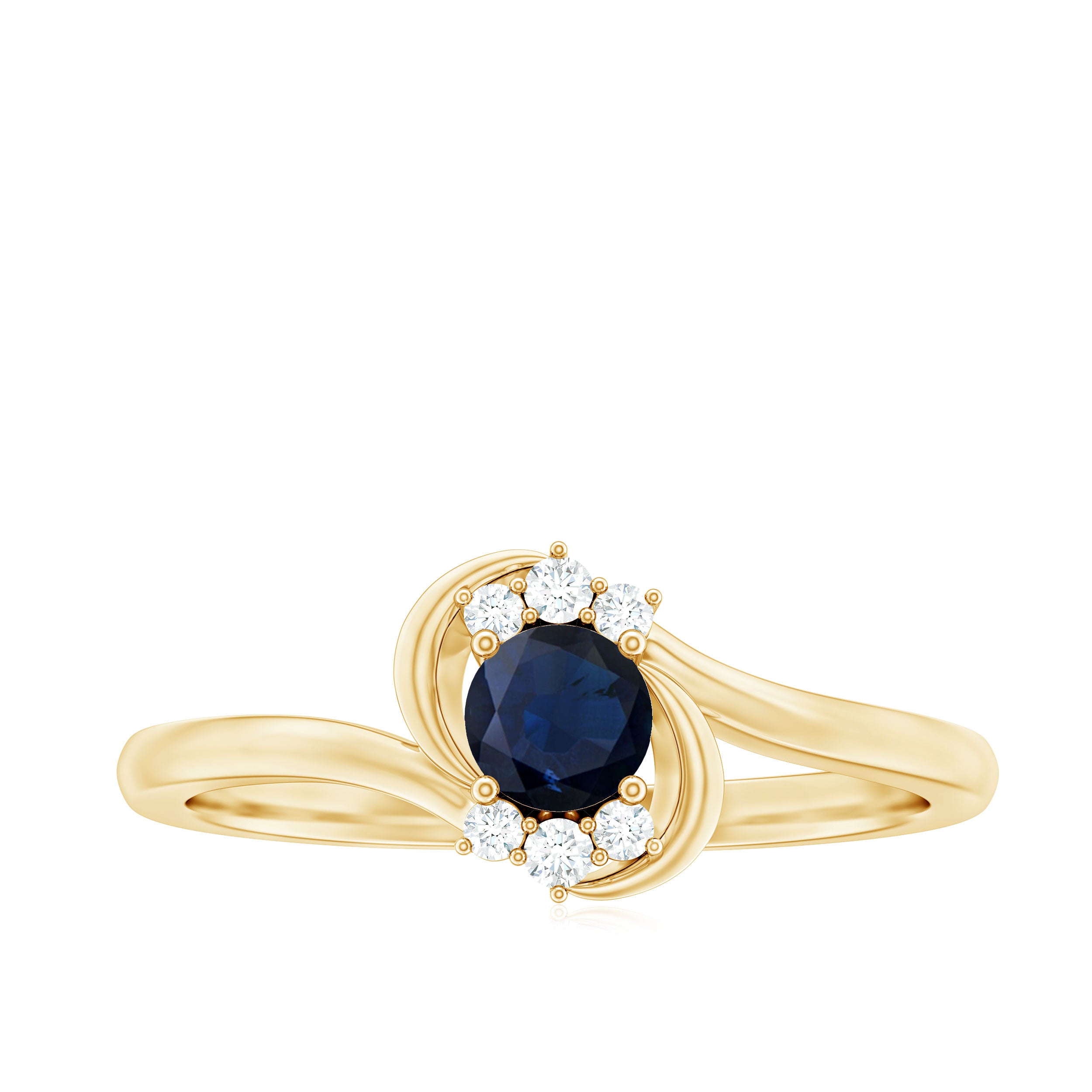 When youre ready to make a statement at the party, consider our captivating Blue Sapphire Promise Ring. This Bypass Ring features a Round Blue Sapphire gem in a secure prong setting, complemented by a trio of diamonds on both the upper and lower sides of the central gemstone. The unique Bypass Shank design adds a fashionable touch that will elevate your style to new heights.