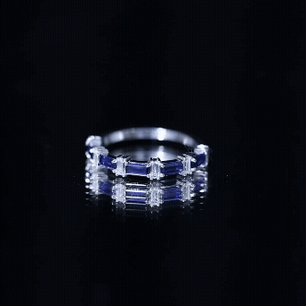 Indulge in the charm and allure of our East West Baguette Half Eternity Band, designed to captivate your ladys heart. Adorned with the timeless beauty of Baguette Cut Blue Sapphires, each securely held in a Prong Setting, and accentuated by Diamonds, this Half Eternity Band Ring is as captivating as it is elegant. A perfect choice for celebrating her special day, its a symbol of your enduring love and the promise of a beautiful future together. Let this Semi Eternity Band be the exquisite token that expresses your affection and devotion.