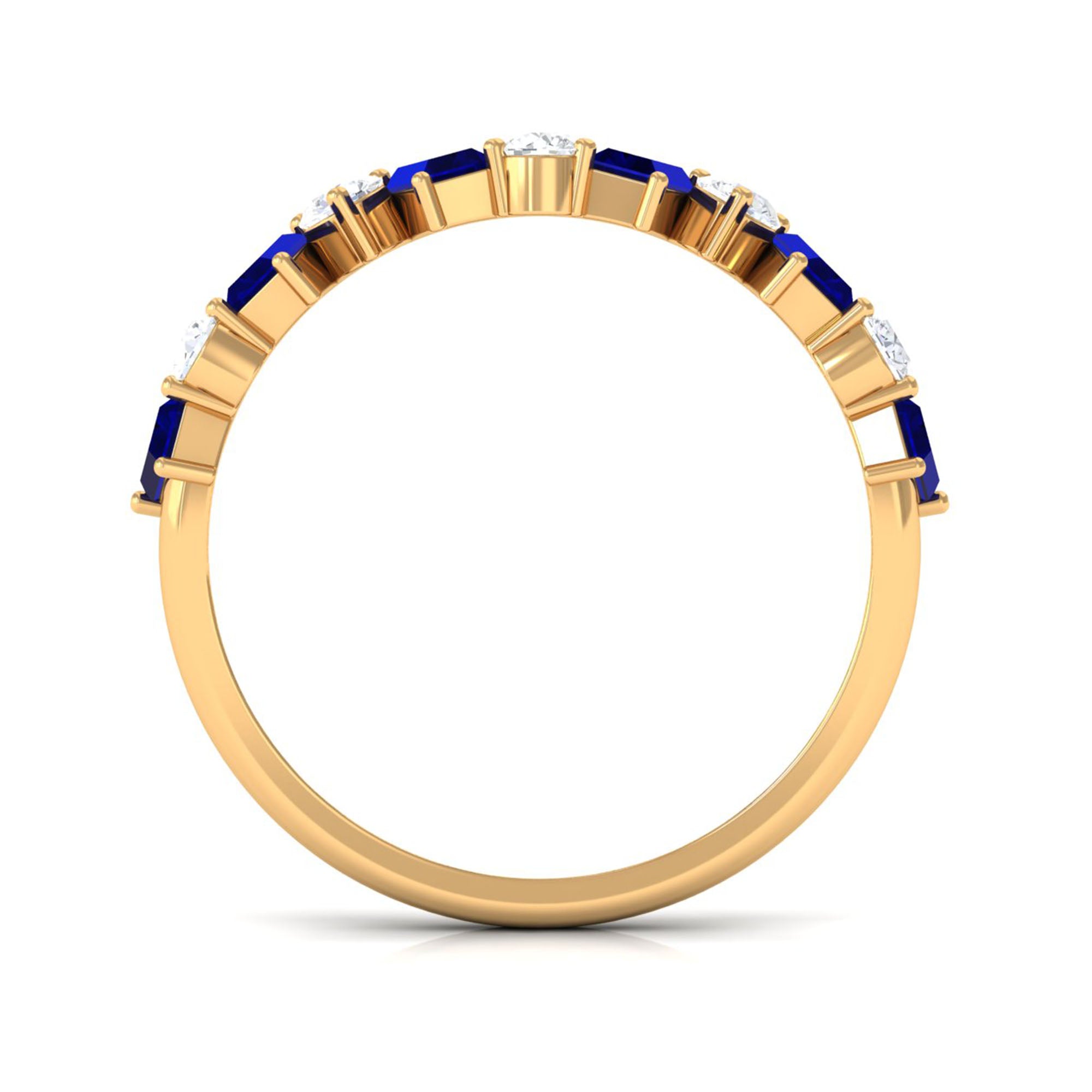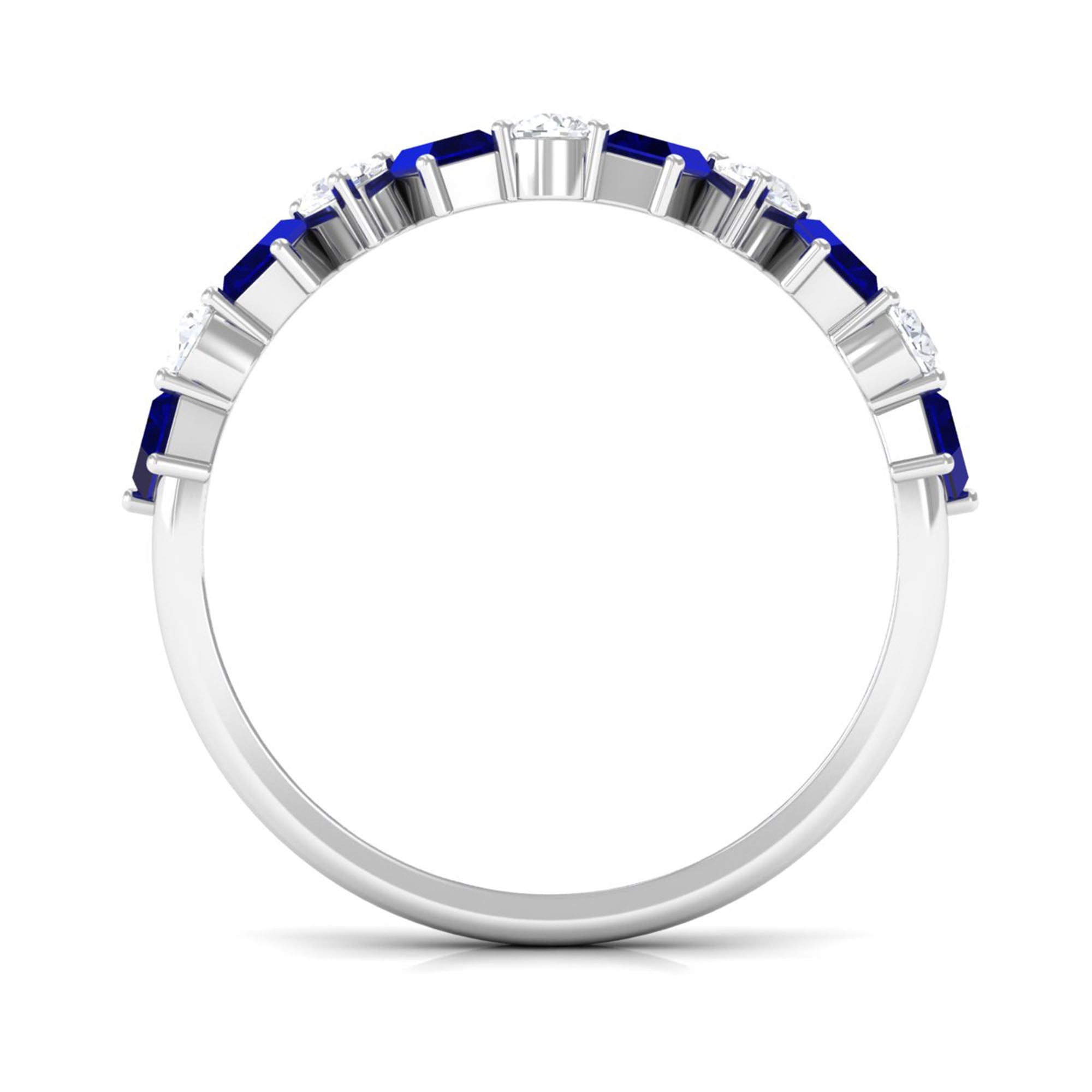 Blue Sapphire and Moissanite Half Eternity Ring in Prong Setting