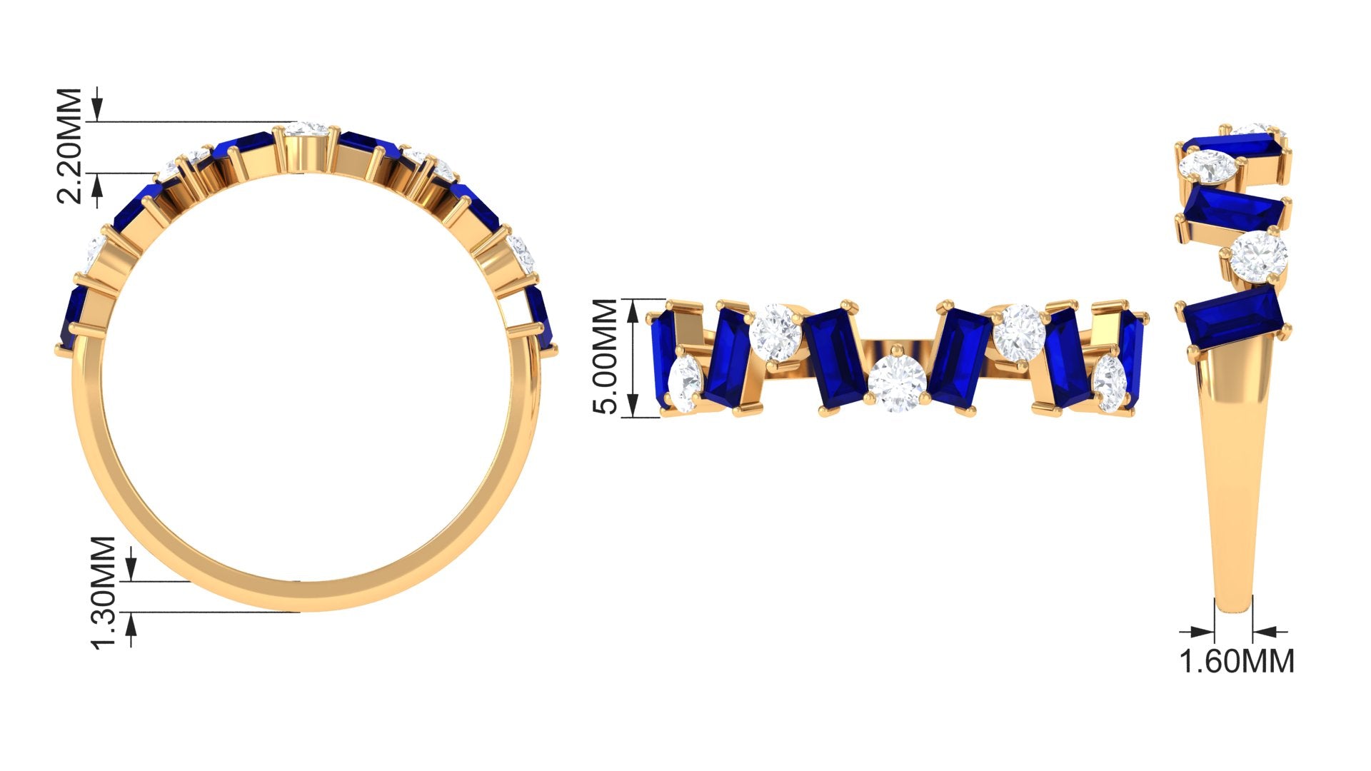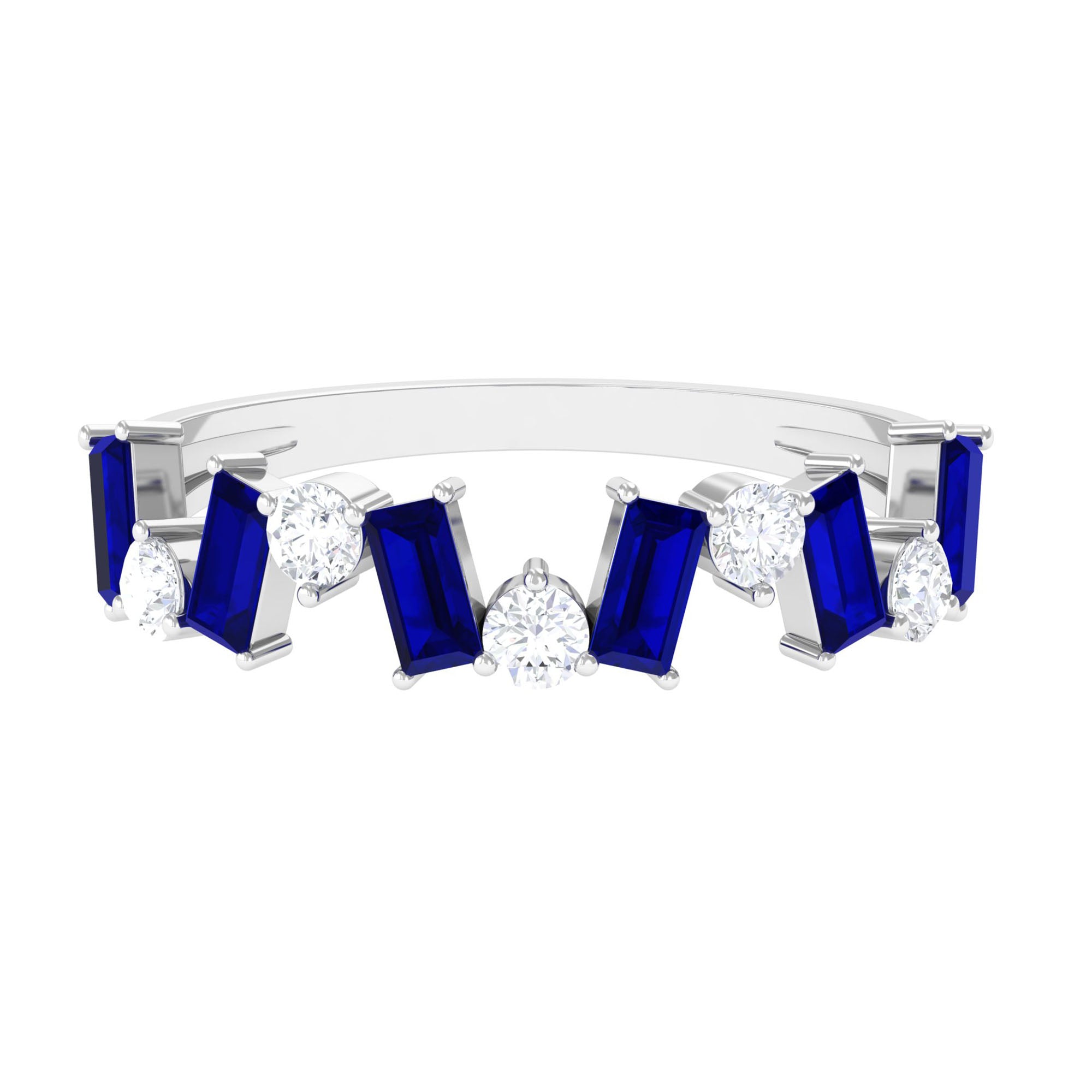 Create a memorable moment with our Designer Half Eternity Band. This exquisite uneven semi eternity ring features a stunning combination of baguette-cut blue sapphires and round-cut moissanite stones in a secure prong setting.•Present her with this exquisite band and let her experience the joy of eternal love and happiness.