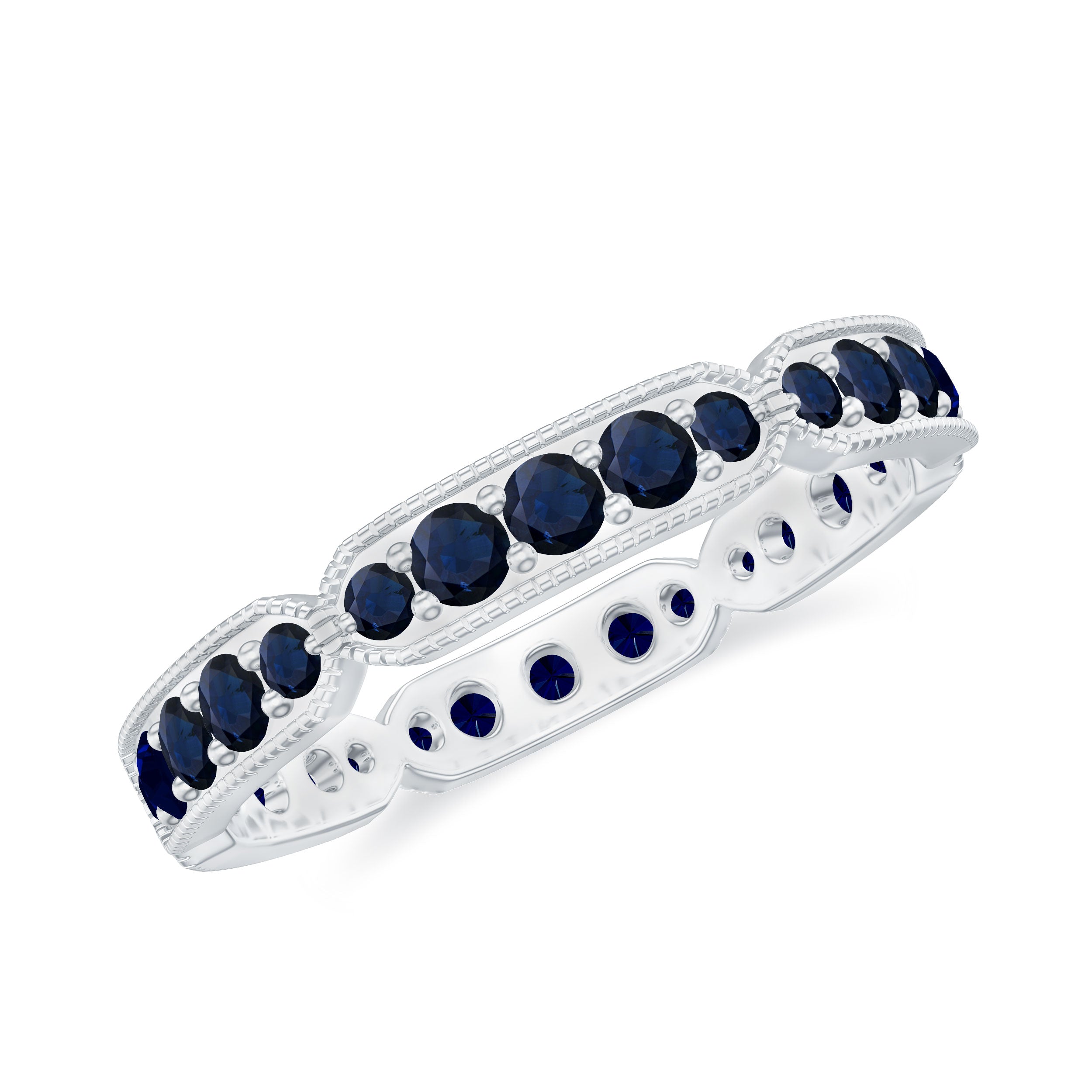 Blue Sapphire Eternity Ring with Milgrain Detailing