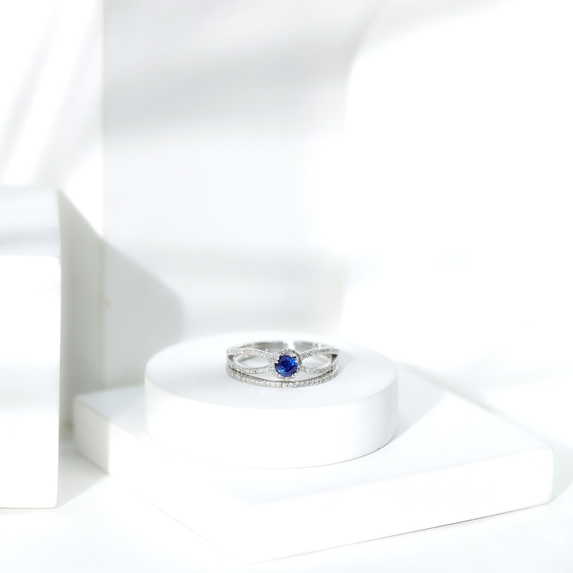 This stunning blue sapphire wedding ring set with Diamond is the perfect way to celebrate your everlasting love. The center stone is a brilliant eye-catching blue sapphire, surrounded by a halo of sparkling Diamonds. This wedding ring set is the perfect way to show your everlasting love and commitment to your partner. It is also a beautiful and timeless piece of jewelry that you will cherish for a lifetime. This ring set is the perfect way to show your loved one how much you care.