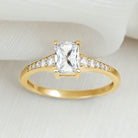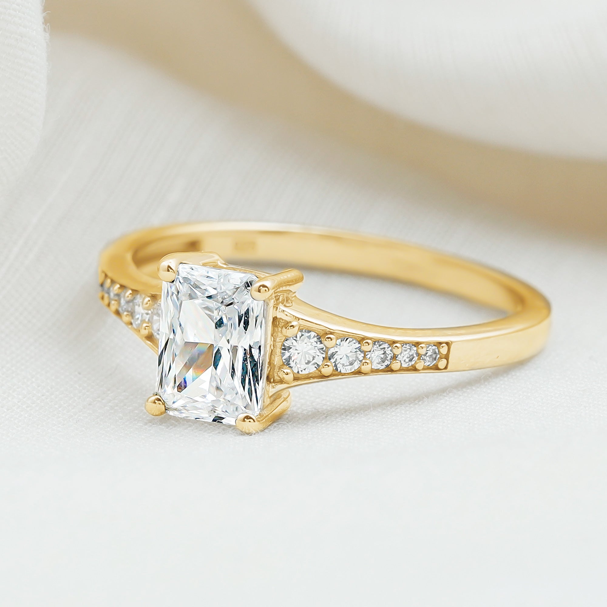 An elegant choice for a lifelong promise, the Lab Grown Diamond Engagement Ring brings together classic beauty and modern charm. At its center sits a stunning 7X5 MM emerald cut lab created diamond, set securely in prong setting. The band is embellished with round cut diamond side stones in different sizes, arranged in a graduated pattern. The side stones gradually increase in size as they lead toward the center, drawing the eye in and adding just the right amount of extra brilliance without overwhelming the main stone. Thoughtfully designed to suit a wide range of styles, this Emerald Cut Engagement Ring is available in multiple metal options. You can also choose your preferred metal purity and get the Solitaire Engagement Ring in any US size from 3 to 13, ensuring a perfect fit for every hand. Ideal for a proposal or as a meaningful gift to mark a milestone in your relationship, this Diamond Solitaire Ring is both stylish and full of meaning. It also comes with a certificate of authenticity, giving you confidence in the quality and craftsmanship of your piece. Timeless, versatile, and radiant, this Lab Grown Diamond Ring is a beautiful way to tell your love story, simple in design, yet rich in emotion and sparkle.