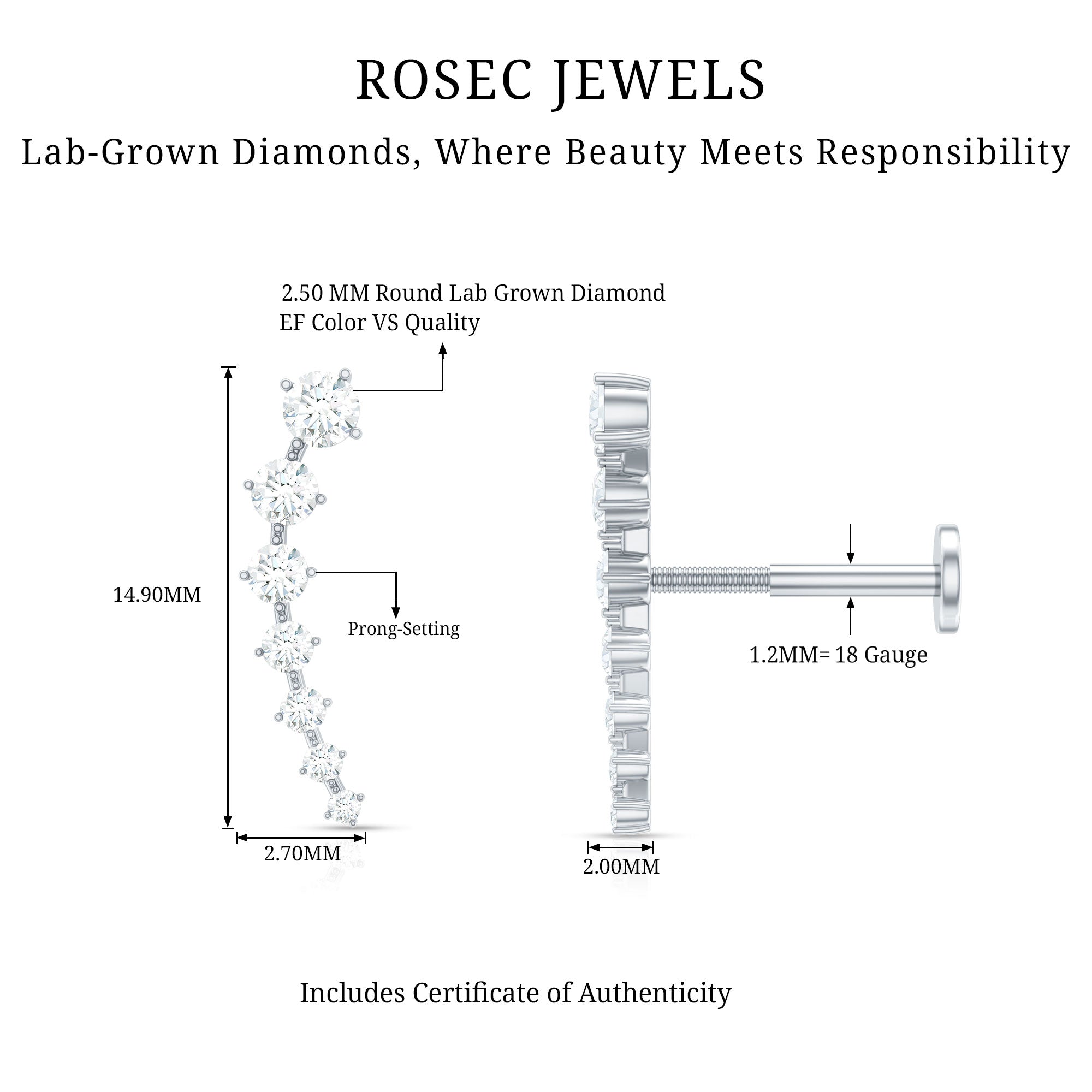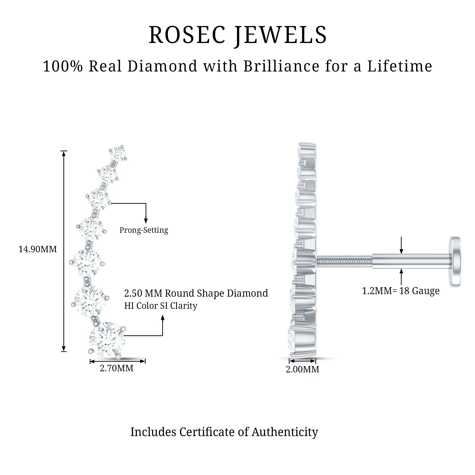 Brilliant Cut Diamond Ear Climber Earring for Helix Piercing