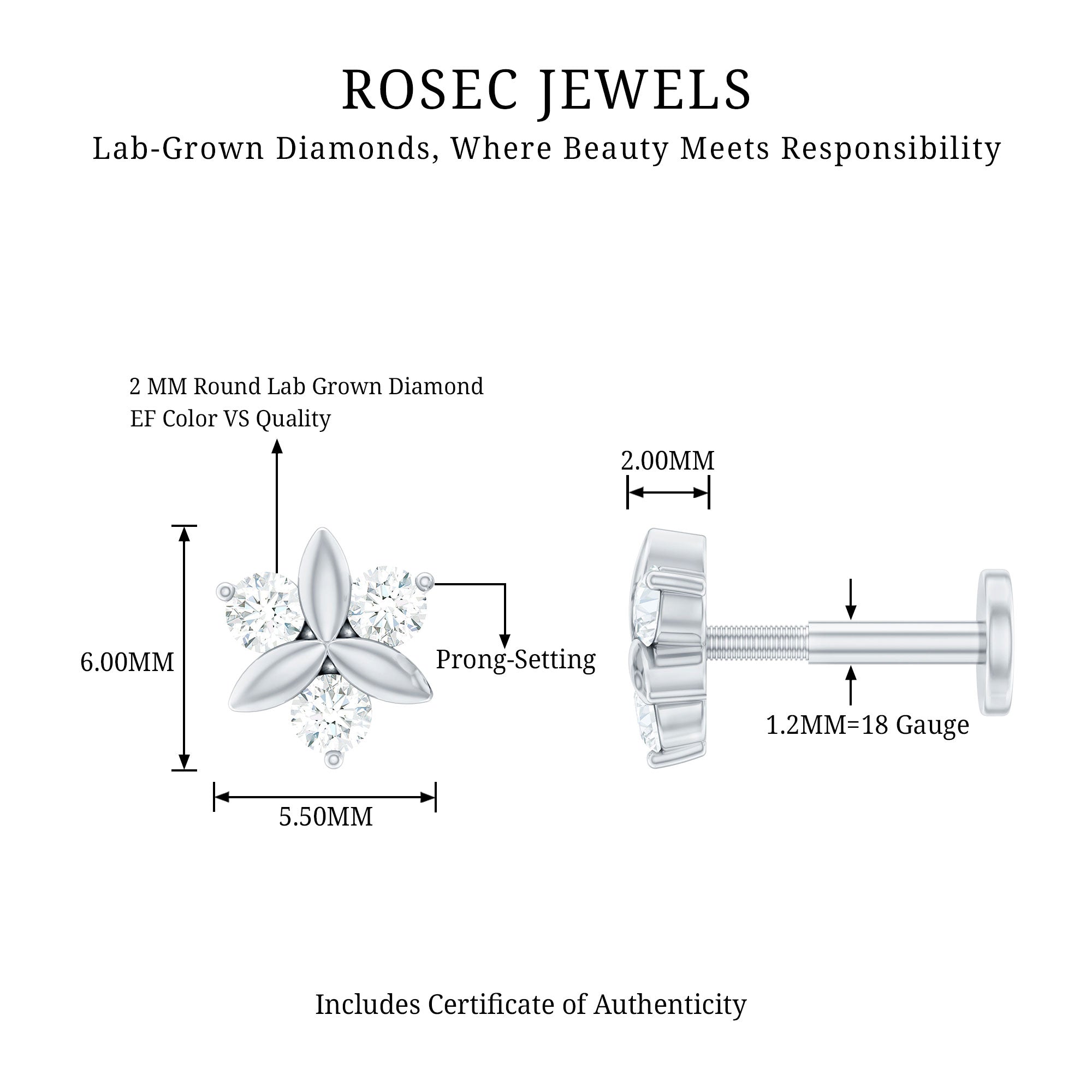 This Diamond Flower Earring embodies elegance and represents beauty, growth, and fresh starts. Its truly a work of art, showcasing stunning design and craftsmanship. Adorned with sparkling round brilliant cut diamonds, which are alternately set with marquise metal shapes, this earring radiates timeless allure. You can wear this Diamond Ear Piercing on your Conch, Helix, Cartilage, or Upper Lobe, adding a hint of natures beauty to your personal style. This Floral Stud Earring is perfect for any occasion, enhancing your overall look. Drawing attention, this Flower Piercing keeps the spotlight on its dazzling design. Fastened with a Flat Back Closure, this Diamond Cartilage Earring symbolizes enchanting beauty and charm, embracing a nature-inspired theme while offering an elegant style with a playful twist.