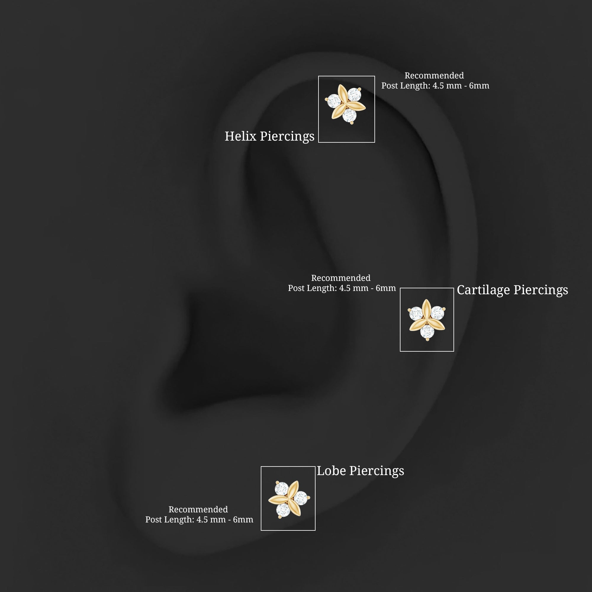Brilliant Cut Diamond Floral Earring for Conch Piercing