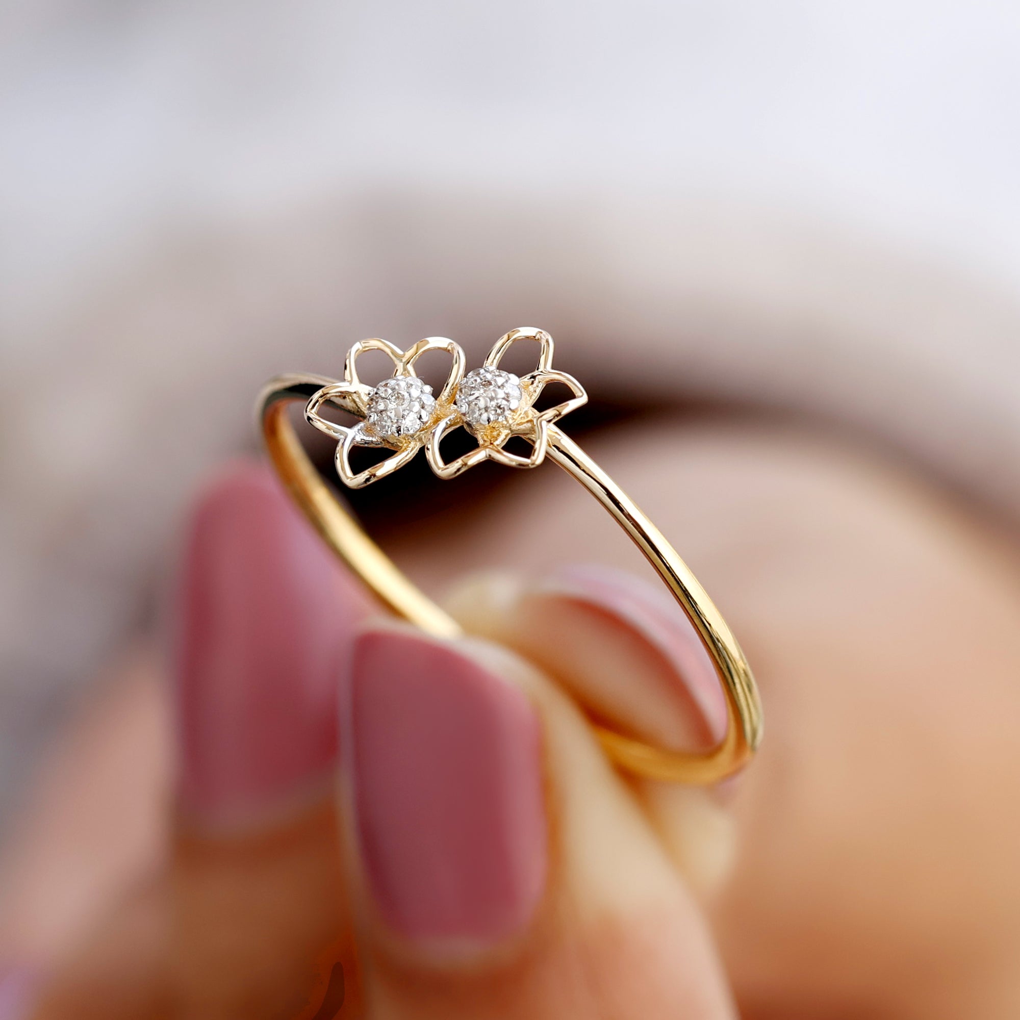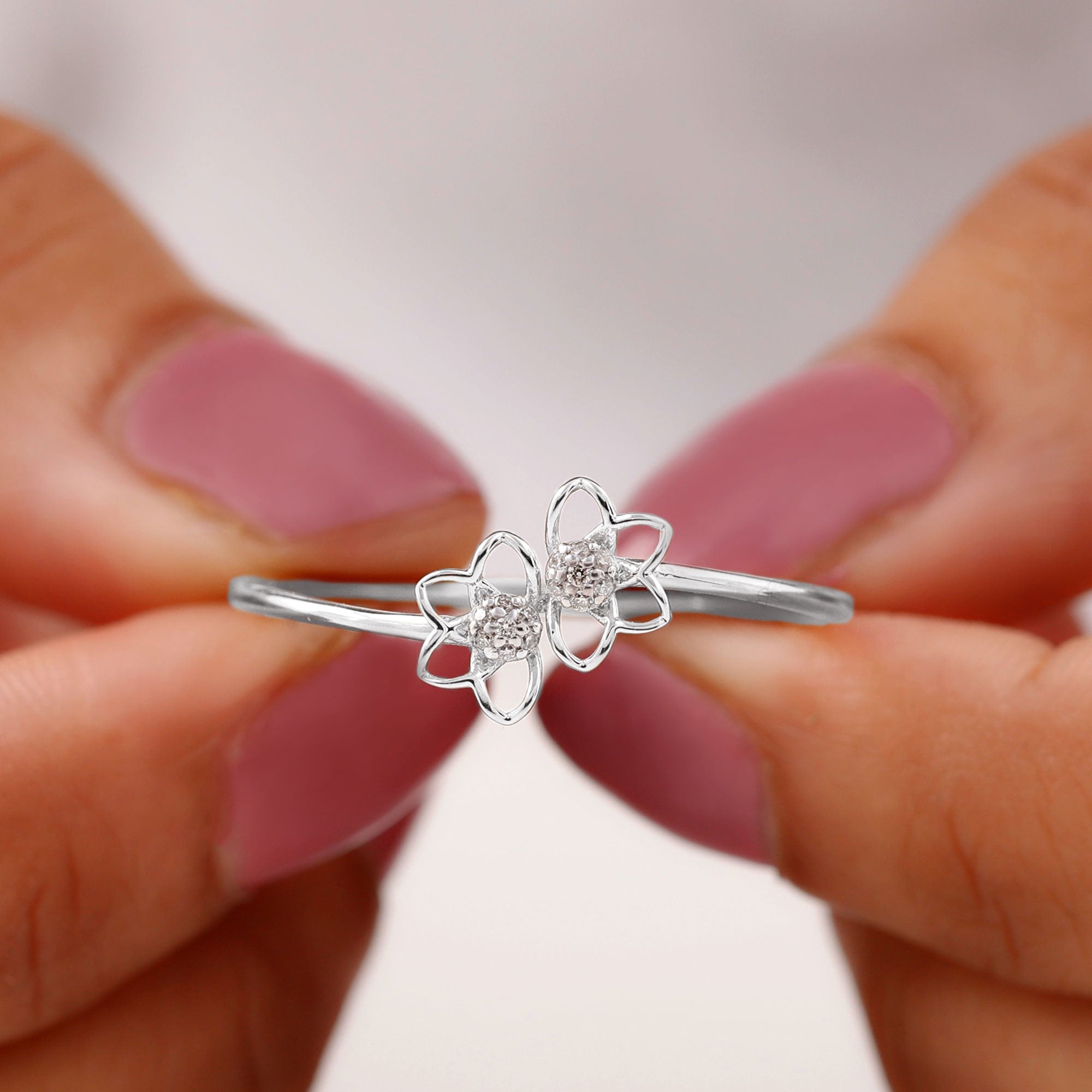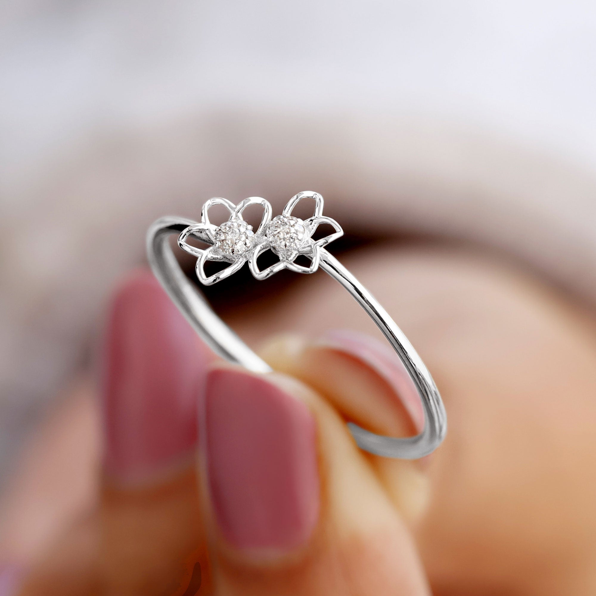 As a sweet reminder of your love, this Diamond Promise Ring brings a touch of beauty to any outfit with its stunning design. The beautiful Round Shape Diamond in an Illusion Setting and the metal petals of the flower on a Twin Floral Promise Ring. Elevate your style with this luxurious symbol of elegance Flower Promise Ring, which makes a captivating piece of jewelry celebrating a milestone or a commitment being shared. It is a celebration of love, commitment and a unique story being shared. This timeless Flower Diamond Ring is ready to see your love blossom that has the official love emblem. Strengthen bonds and rejuvenate broken ties with this stunning Nature Engagement Ring. Its intricate design is a refreshing take that continues to capture hearts with the significant trend. The flowers add aesthetic appeal and also imbue the ring with meaning that couples can cherish for a lifetime.