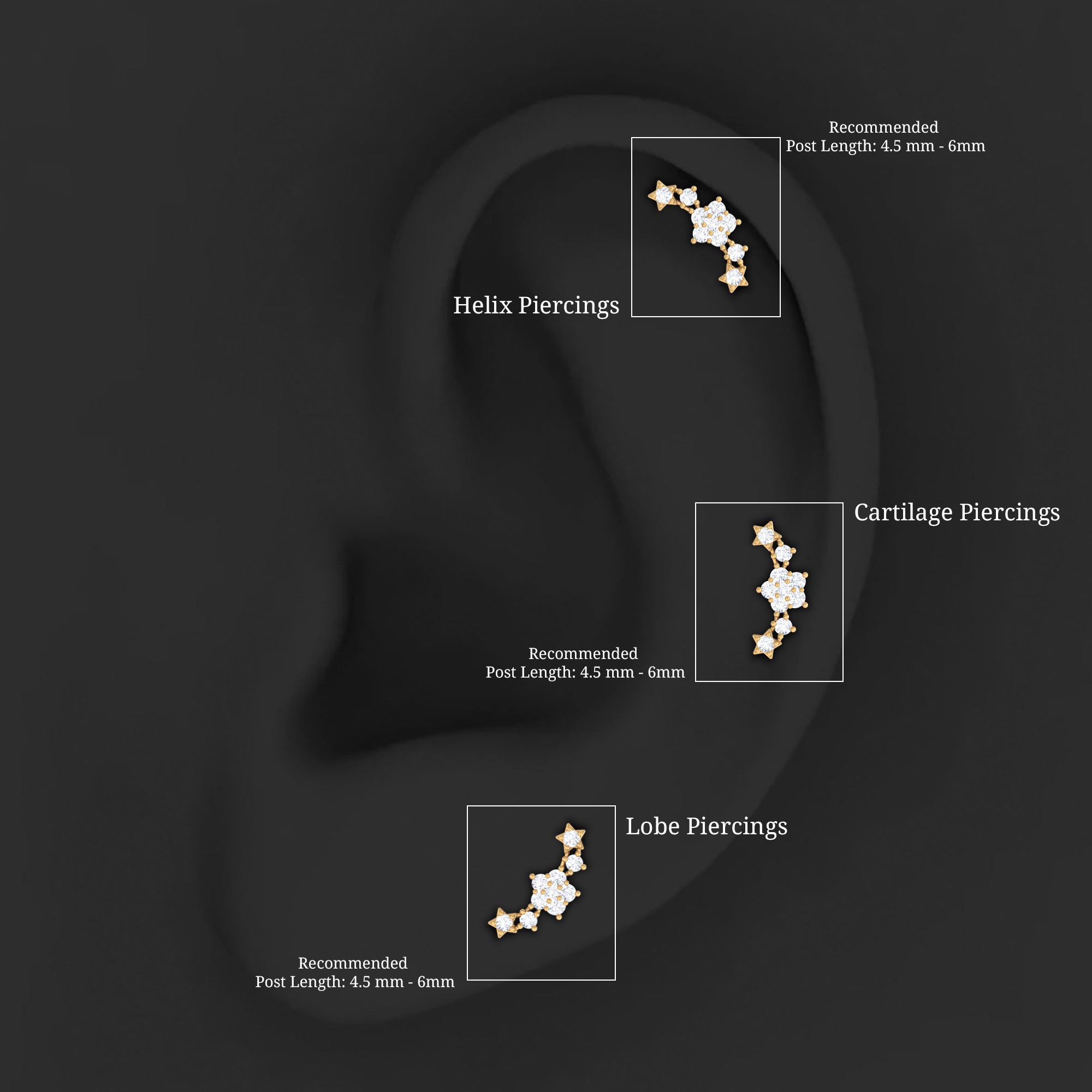 - Simply slide this Diamond Ear Crawler Earring into your Helix, Cartilage, Tragus, Conch, or Upper Lobe Piercing and see the magic of how it enhances your overall look.