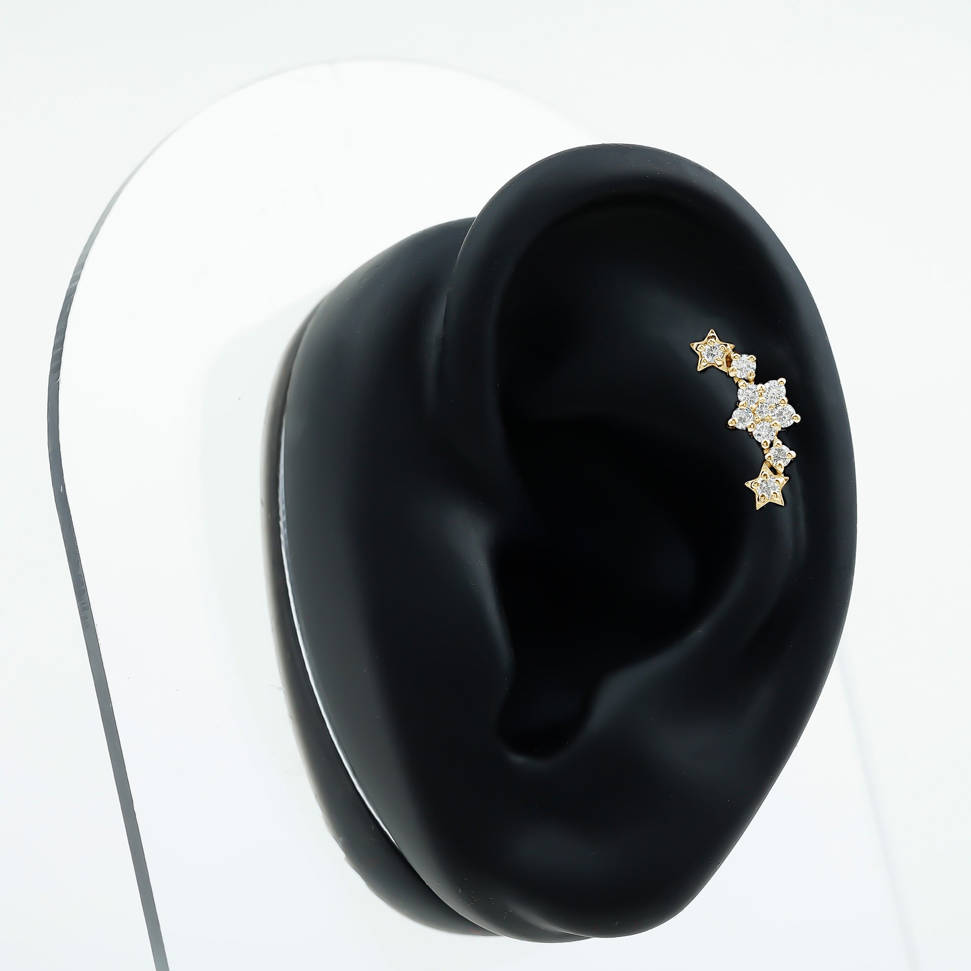 - For an extra shine, pair with other diamond piercing jewelry.