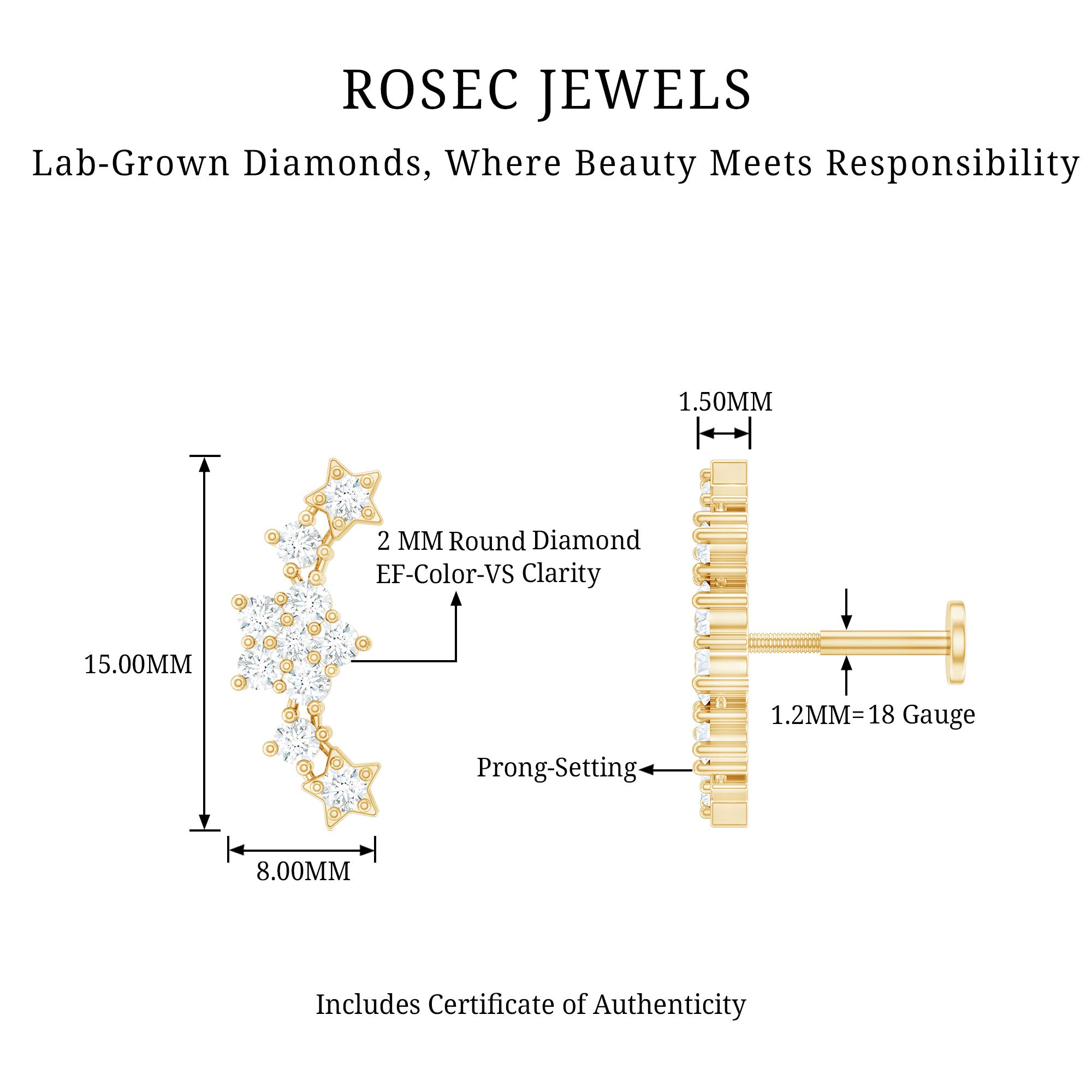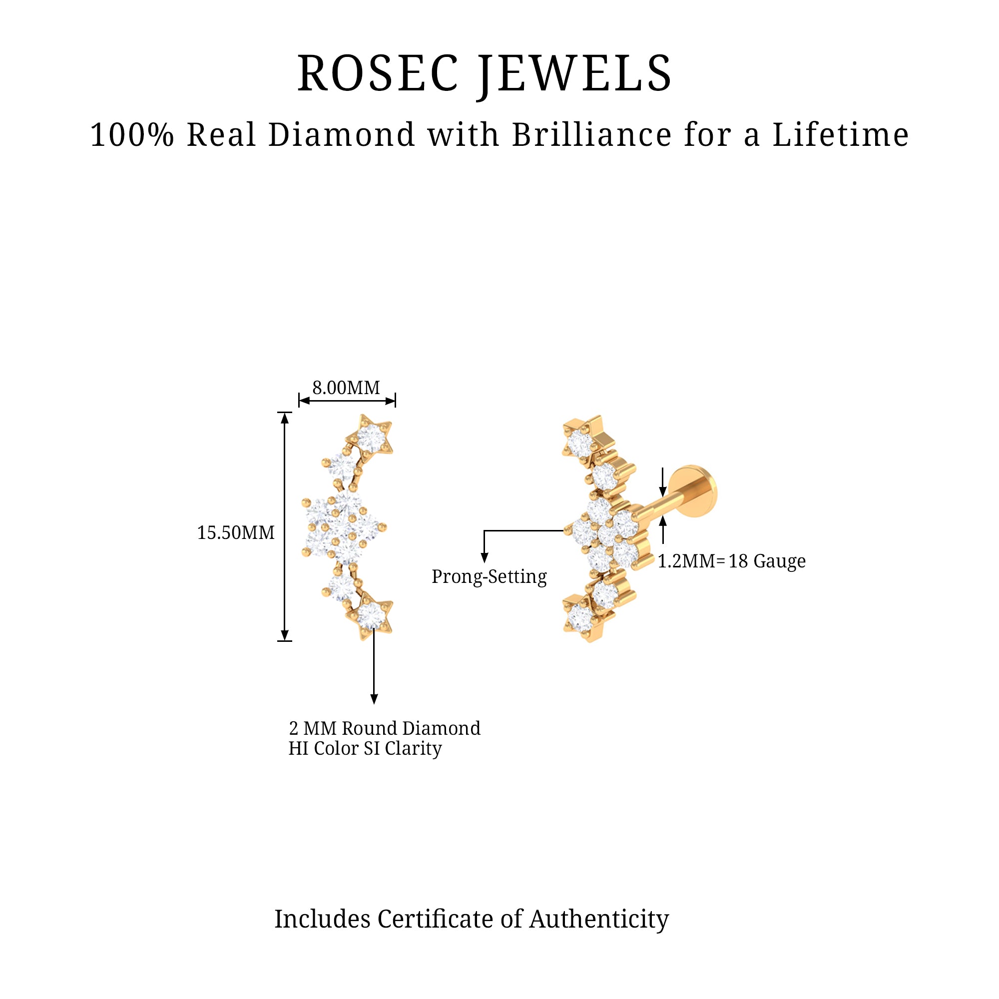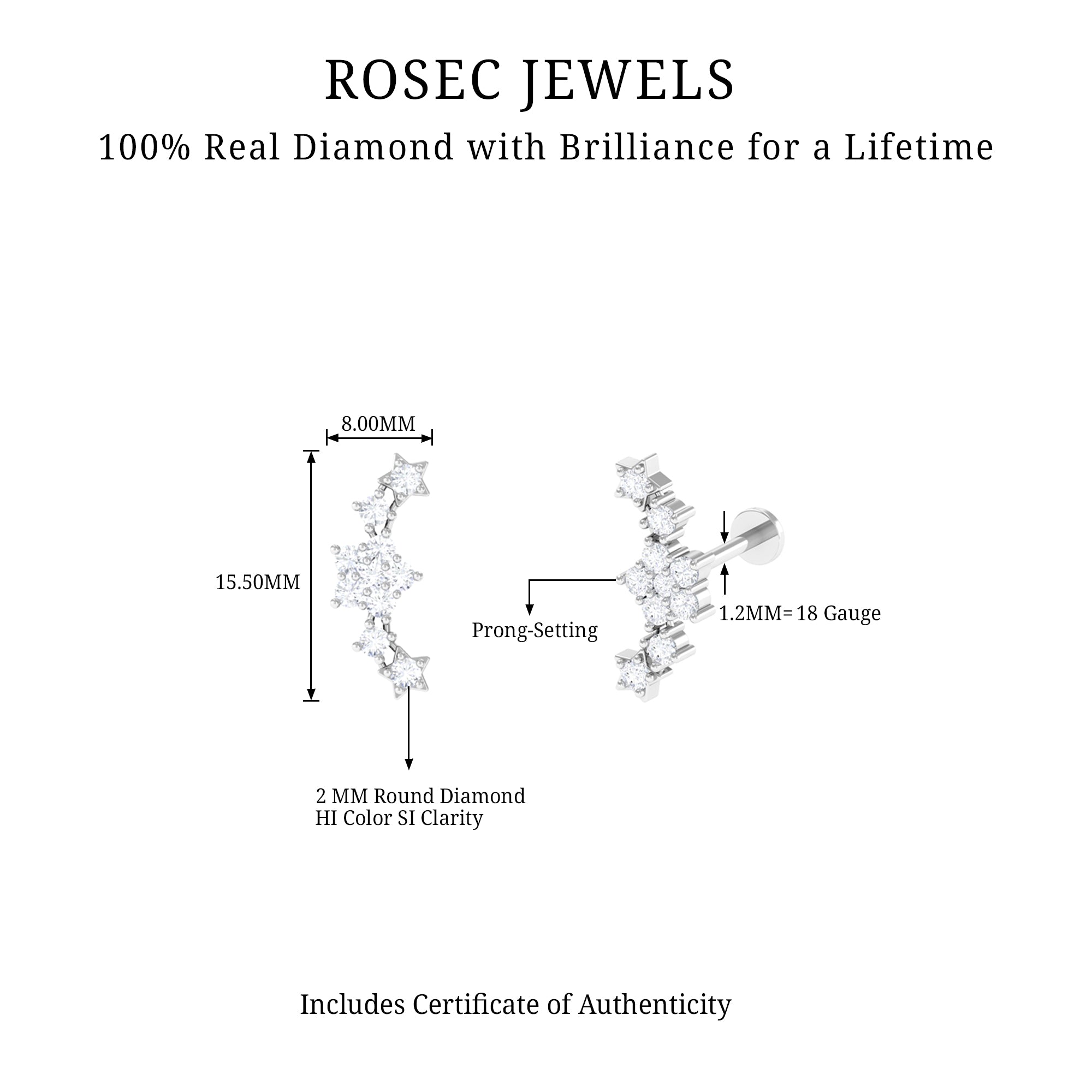 - Crafted with a flat back closure to ensure comfort and safety for all-day wear, this Ear Crawler will be delivered to you in a premium packaging box for safe storage, along with a certificate of authenticity for quality assurance.