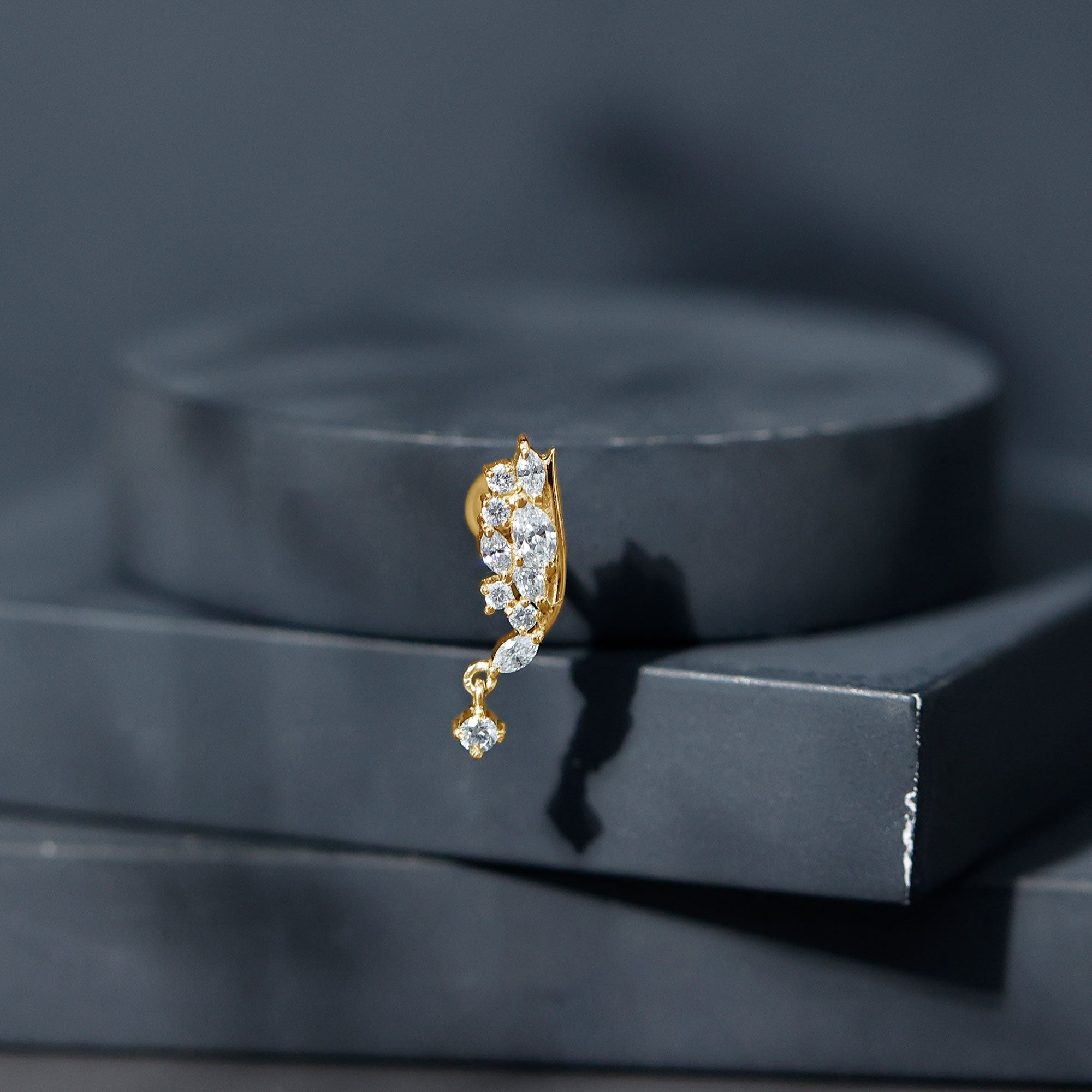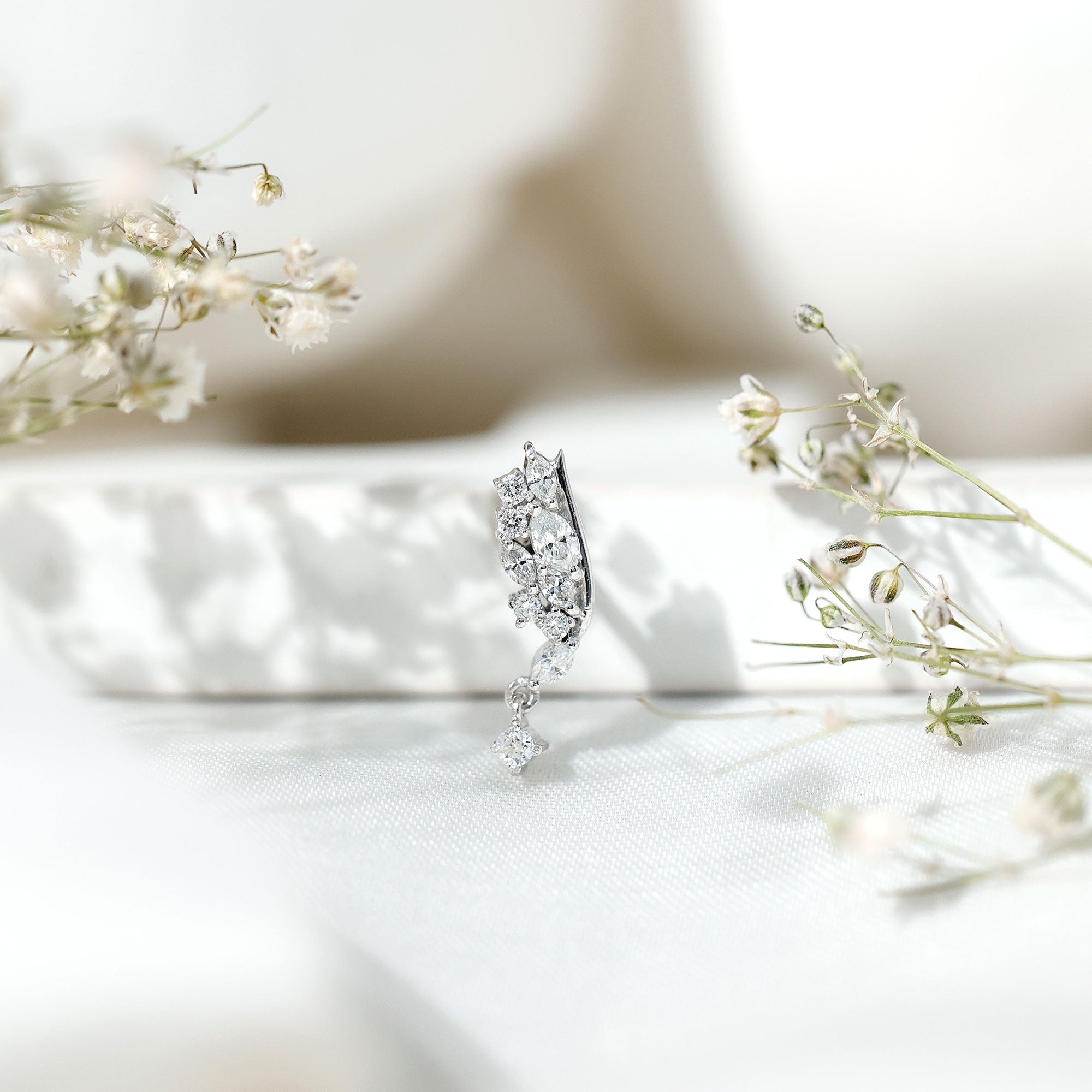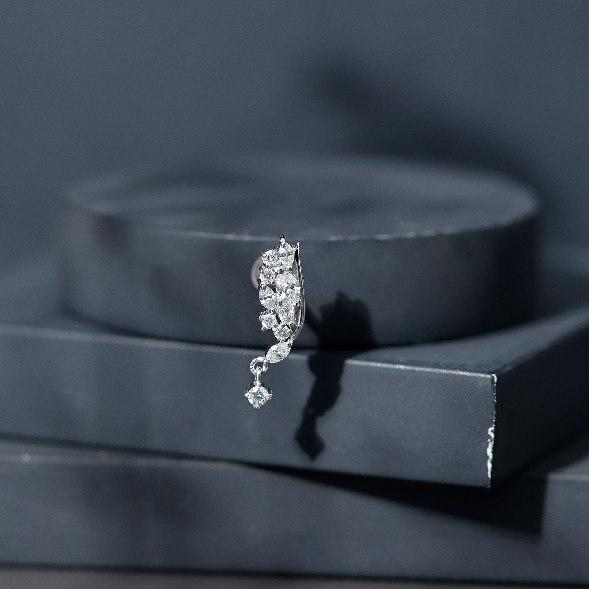 This brilliant cut diamond wing helix drop earring is designed for those who appreciate refined cartilage jewelry with a distinctive silhouette. The wing-inspired form follows the natural curve of the ear, creating a subtle yet expressive statement.