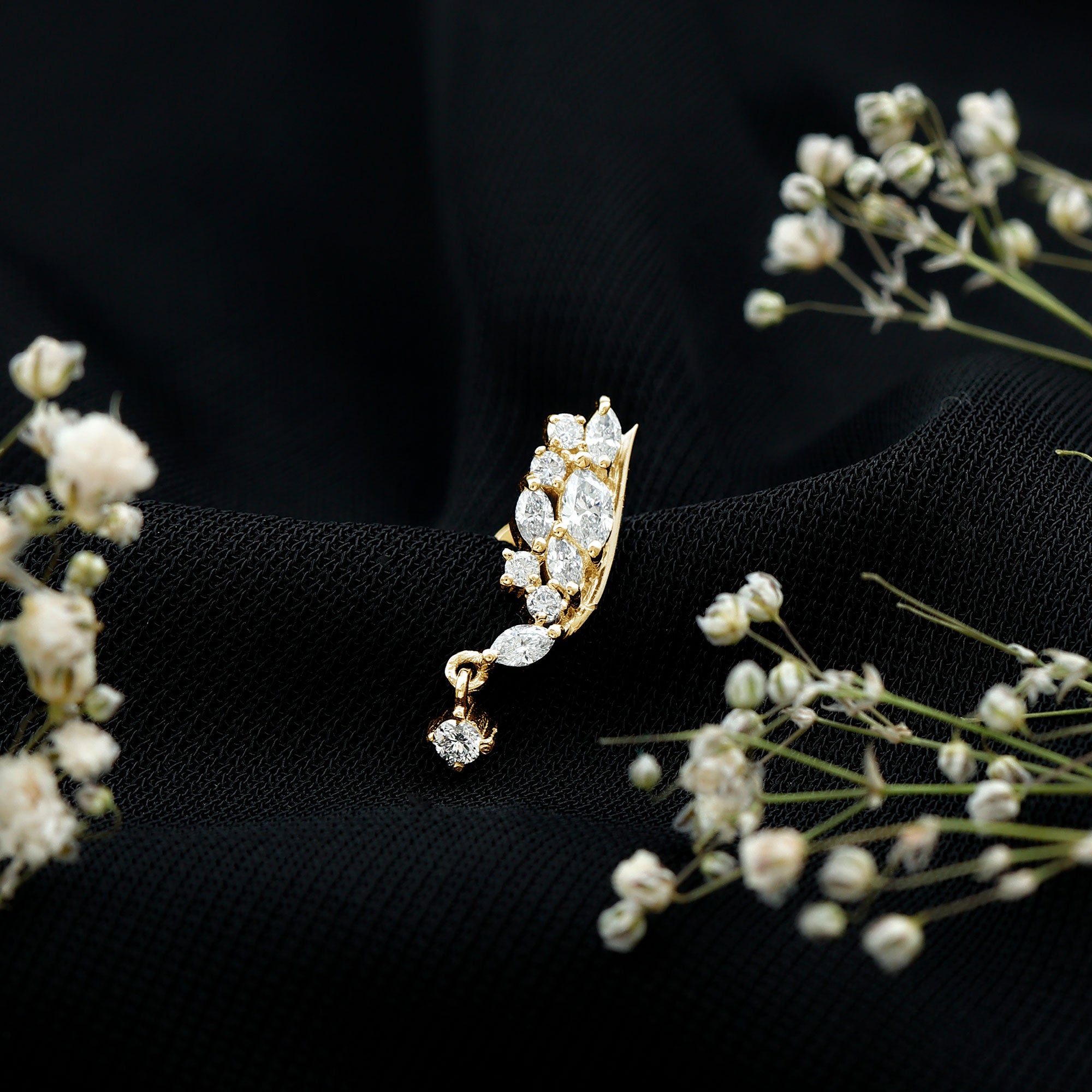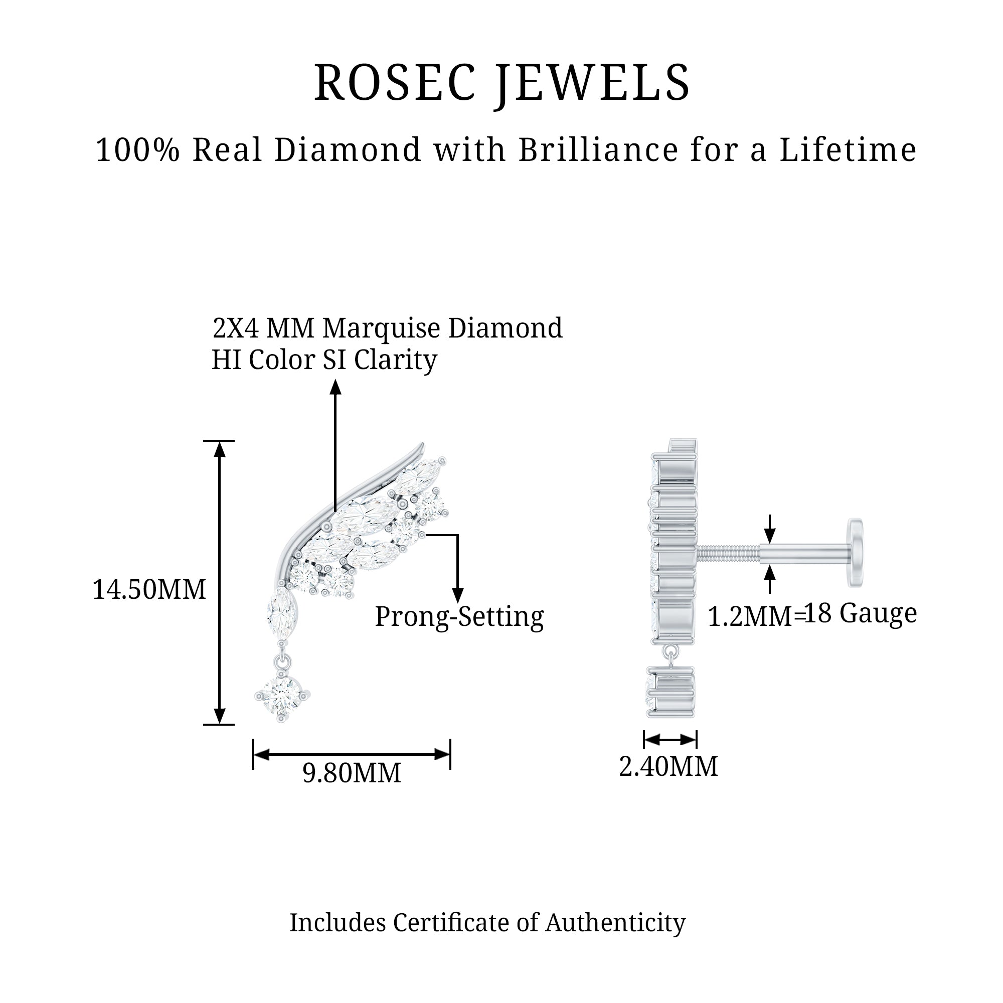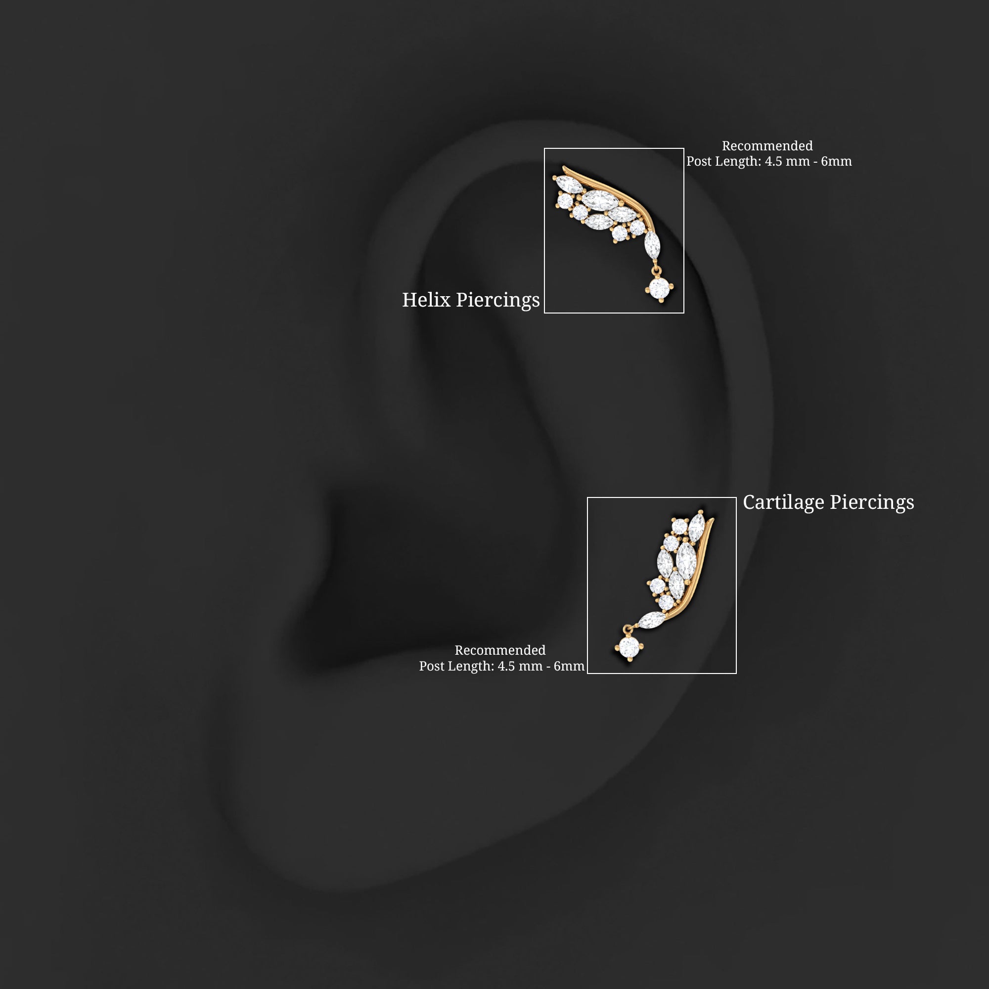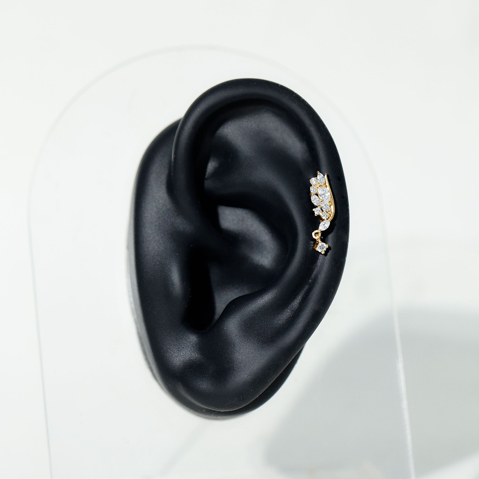 This brilliant cut diamond wing helix drop earring is designed for those who appreciate refined cartilage jewelry with a distinctive silhouette. The wing-inspired form follows the natural curve of the ear, creating a subtle yet expressive statement.