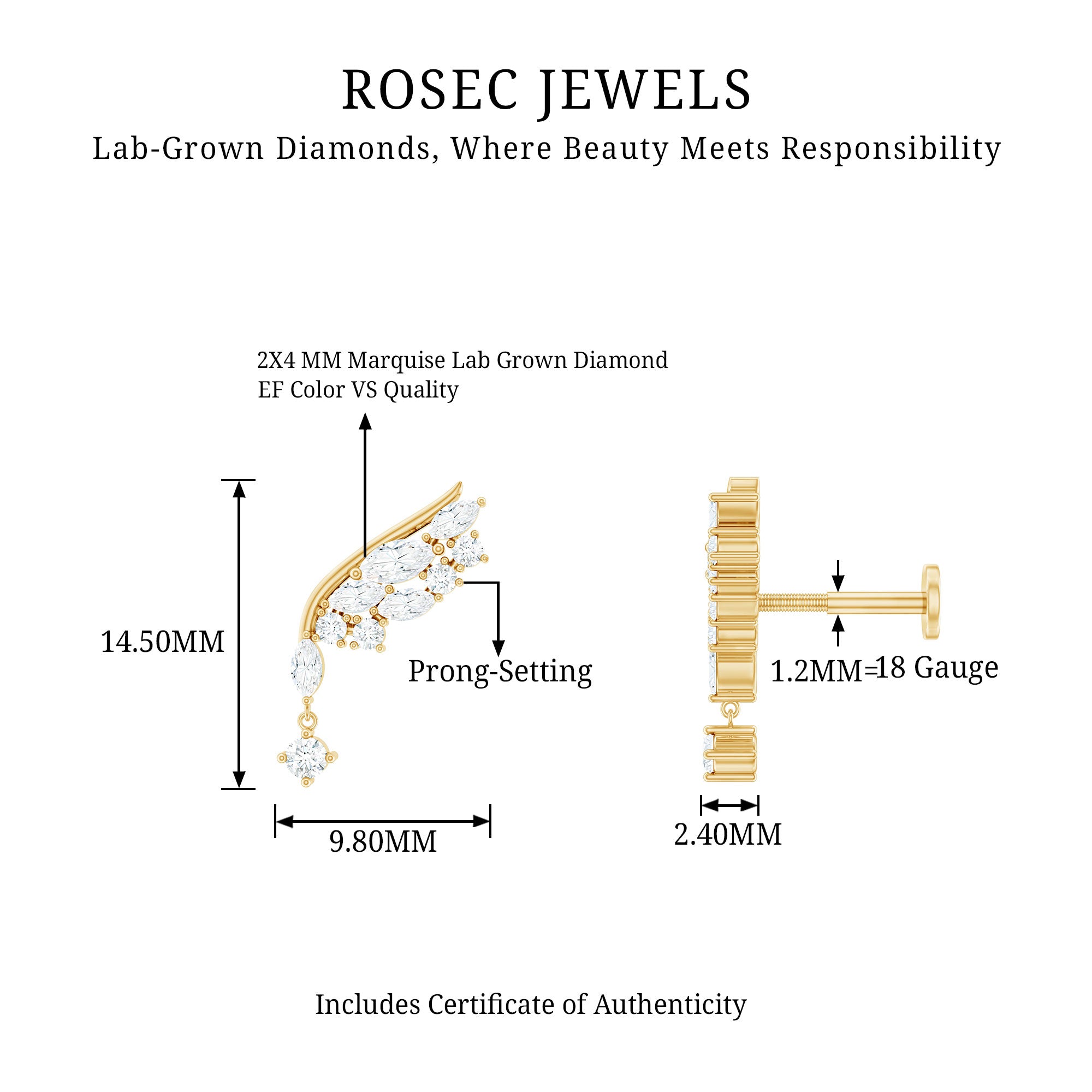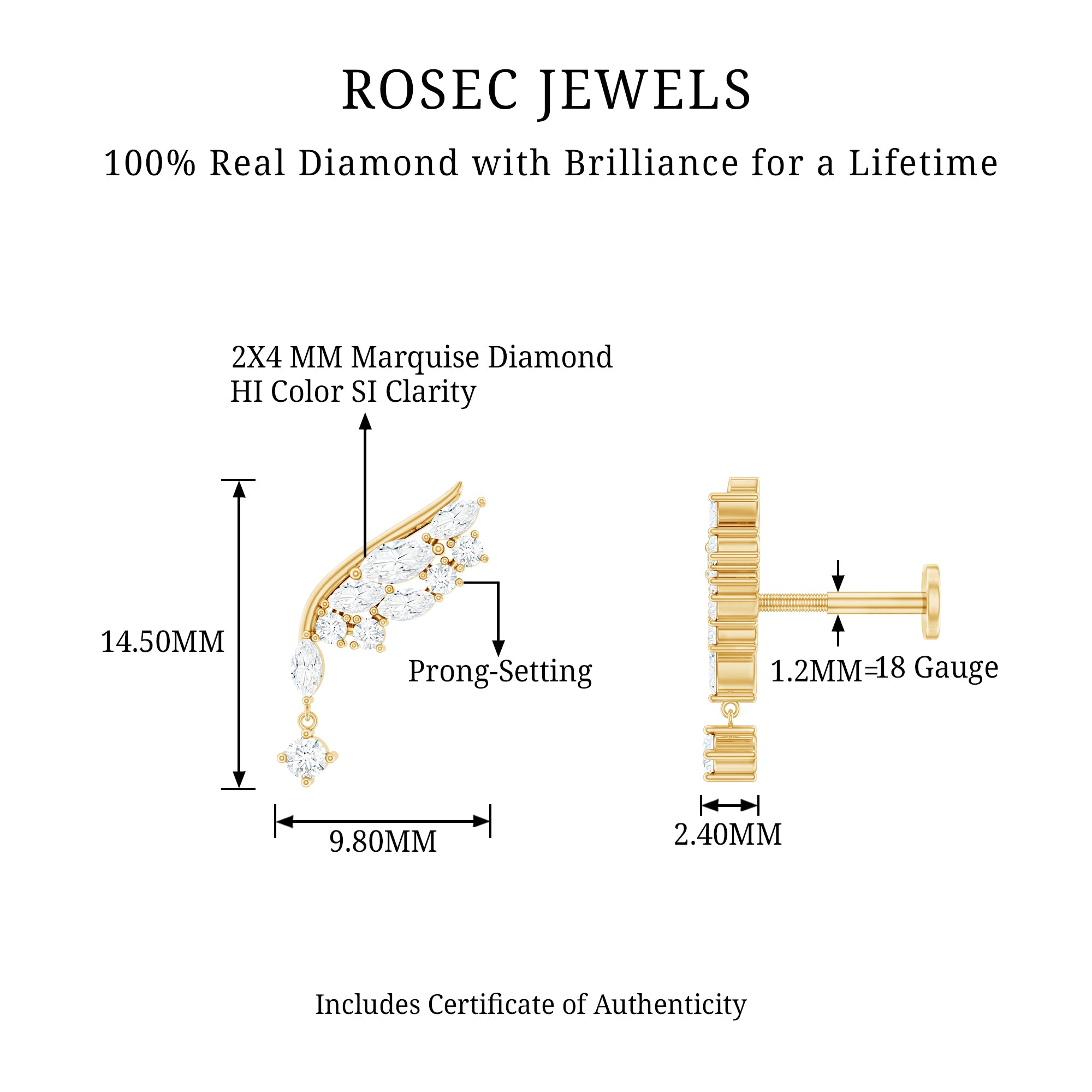 Brilliant Cut Diamond Wing Helix Drop Earring with Flat Back