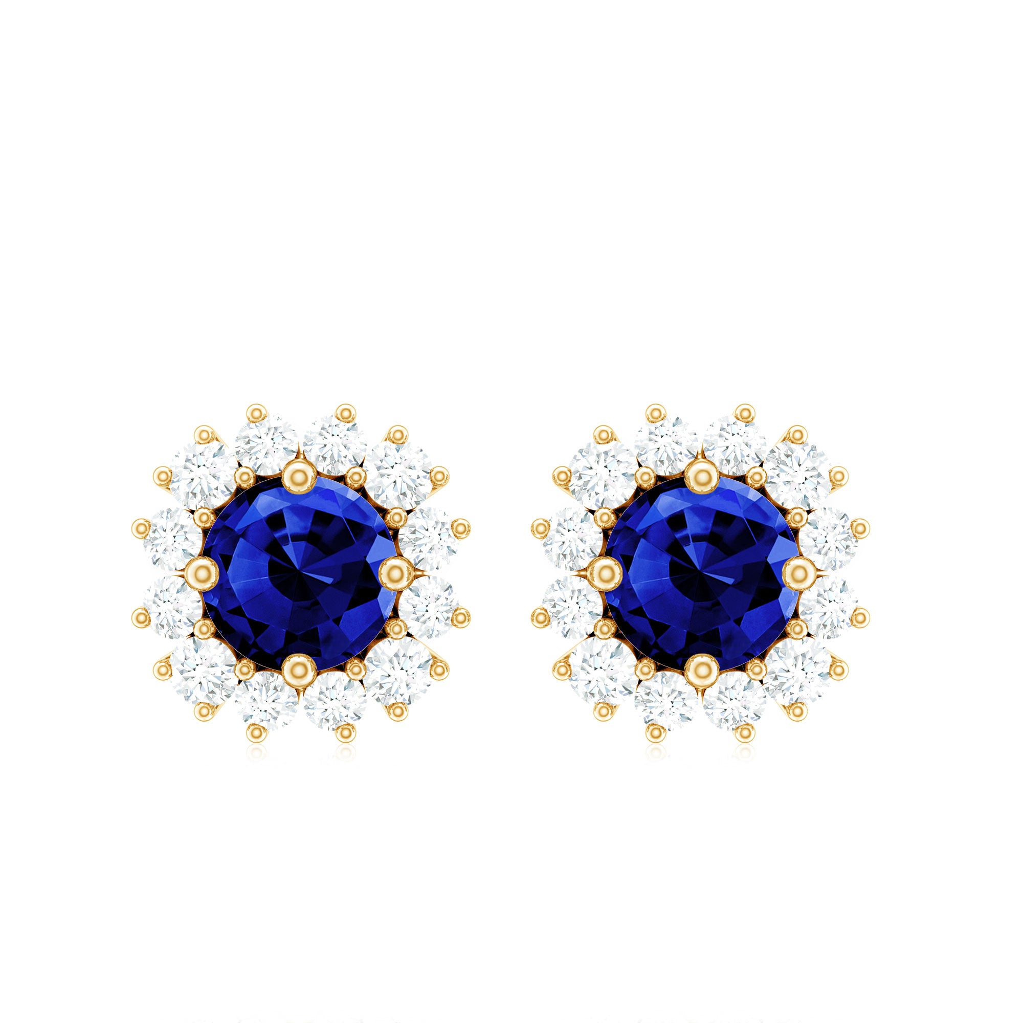 Brilliant Cut Lab Created Blue Sapphire Stud Earrings with Diamond Halo