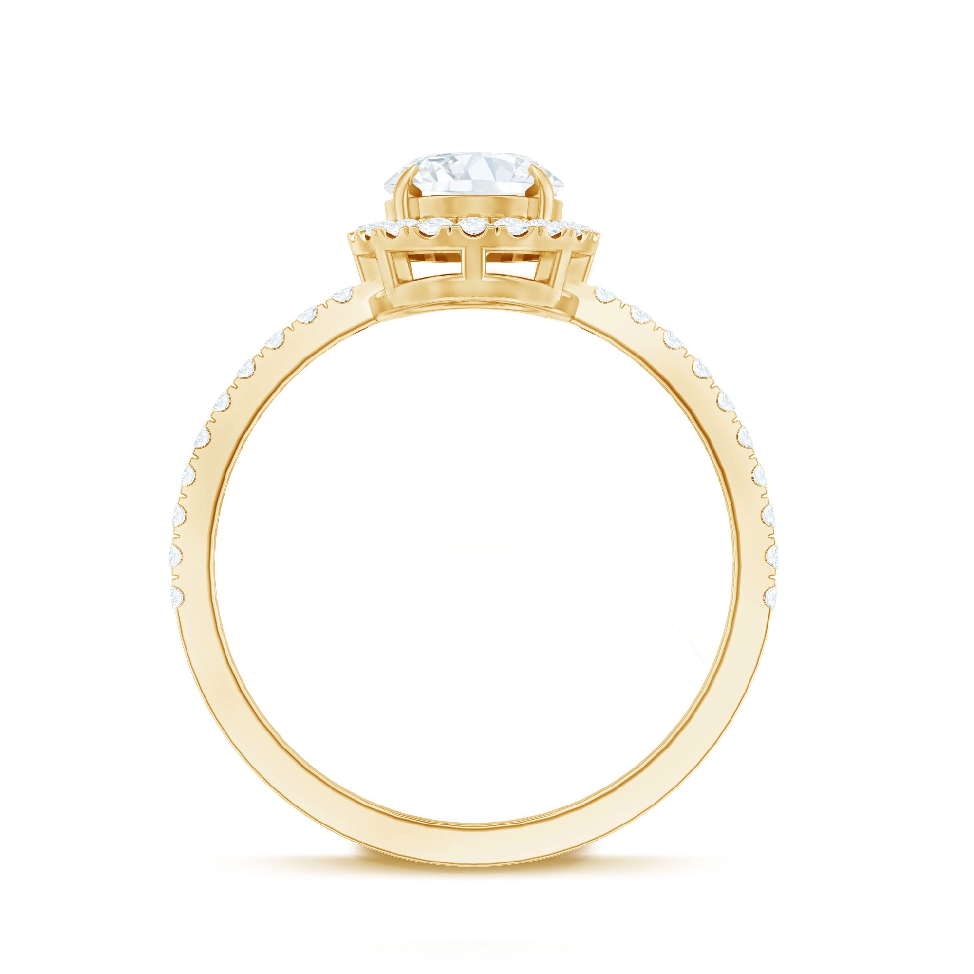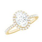 Surprise your beloved with the breathtaking charm of our Moissanite Engagement Ring on her special day, which captivates with its elegance and beautifully highlights the center stone. This timeless Oval Shape Engagement Ring features a D-VS1 quality Moissanite, ensuring the fire and brilliance that represent love and commitment. It showcases a 6X8 MM oval Moissanite at its center set in claw setting and surrounded by a halo. The dazzling side stones on the Halo Engagement Ring create a striking and magical look, reflecting your individual style and character. This Oblong Engagement Ring features a classic brilliant shape that captures everyones attention. It merges traditional beauty with contemporary elegance, providing a polished appearance that radiates with exceptional brilliance. We have designed this Moissanite Halo Ring in a variety of precious metals, along with options for color and purity. This 1 Carat Moissanite Ring will be delivered in an elegant jewelry box, ensuring safe and secure transport during shipping and for future storage. This timeless piece is destined to become a cherished addition to her jewelry collection that she will hold forever.