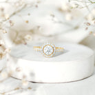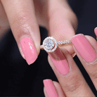 Elegant yet simple, this Moissanite Promise Ring will continue to shine for many years. Its classic and timeless design will make you look stunning. Unique and special, it is a piece of jewelry that is both classic and timeless, sure to impress anyone who sees it. The dramatic effect enhances its sparkle, making its brilliance truly extraordinary. This Classic Ring features a 5 MM Round Shape Moissanite set beautifully in a 4 Prong Diagonal Setting. Surrounding the center stone is a Round brilliant cut Moissanite Floating Halo, which is endlessly elegant and iconic. This Half Carat Moissanite Ring is further enhanced with side stones that add even more brilliance. Designed to win her heart, this exquisite Commitment Ring shines with timeless elegance. It amplifies its sparkle, creating a stunning display of light, making this Promise Engagement Ring a significant symbol of your unwavering commitment and the love you share, as well as the future you dream of together. It tells a story of devotion and a beautiful future. Additionally, this Moissanite Halo Ring is a tangible expression of your deepest feelings, crafted to be treasured for a lifetime.