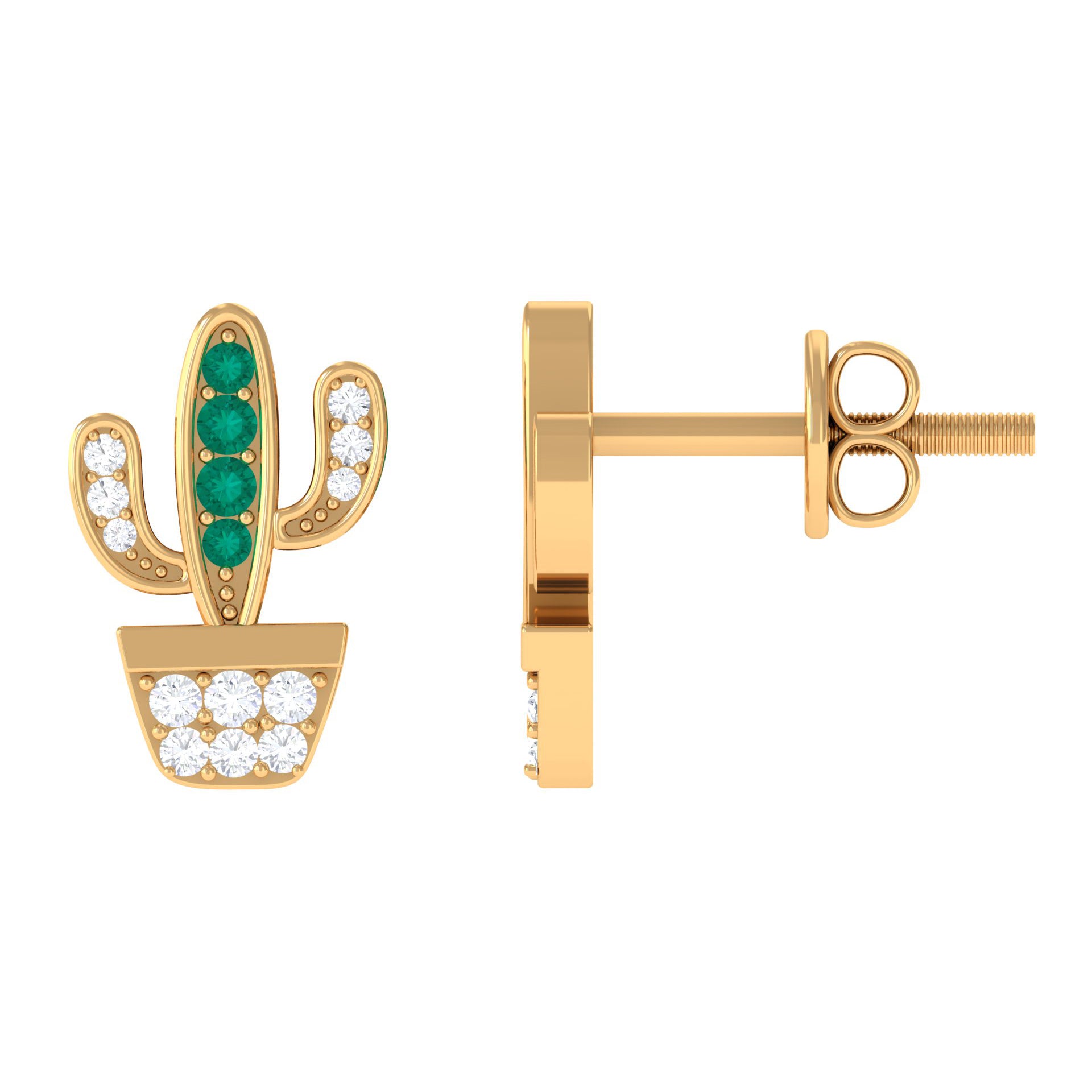 Cactus Stud Earrings with Emerald and Diamond Stones