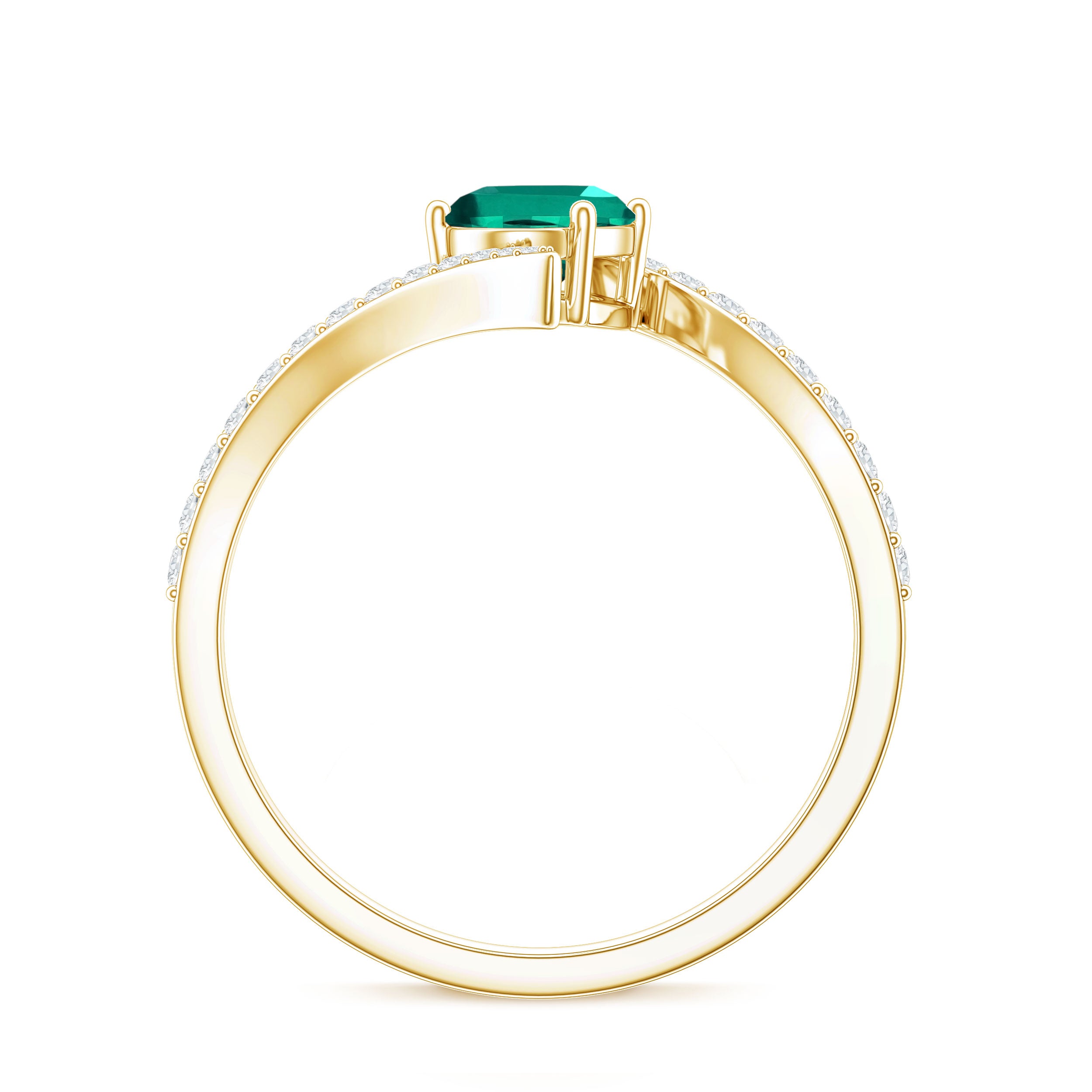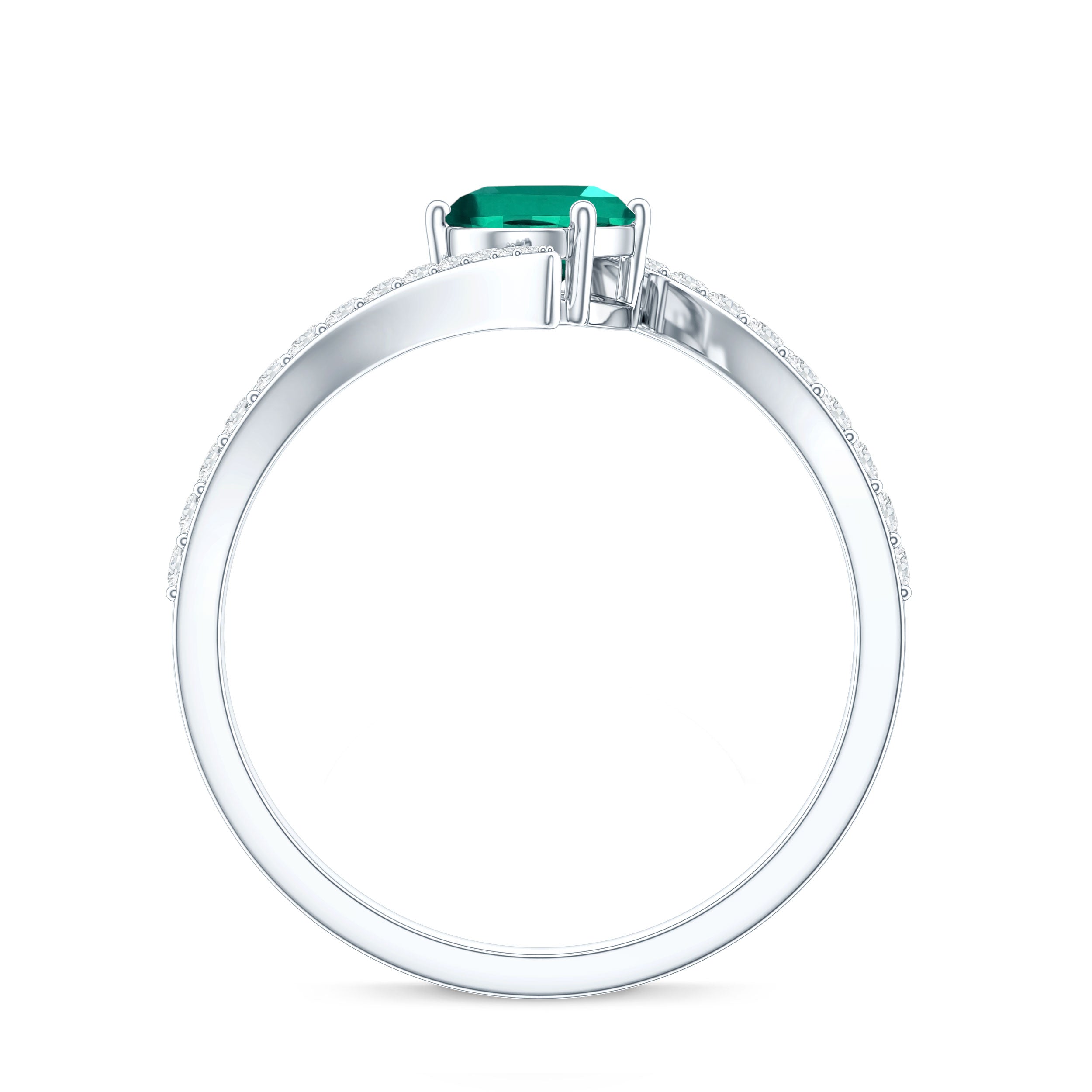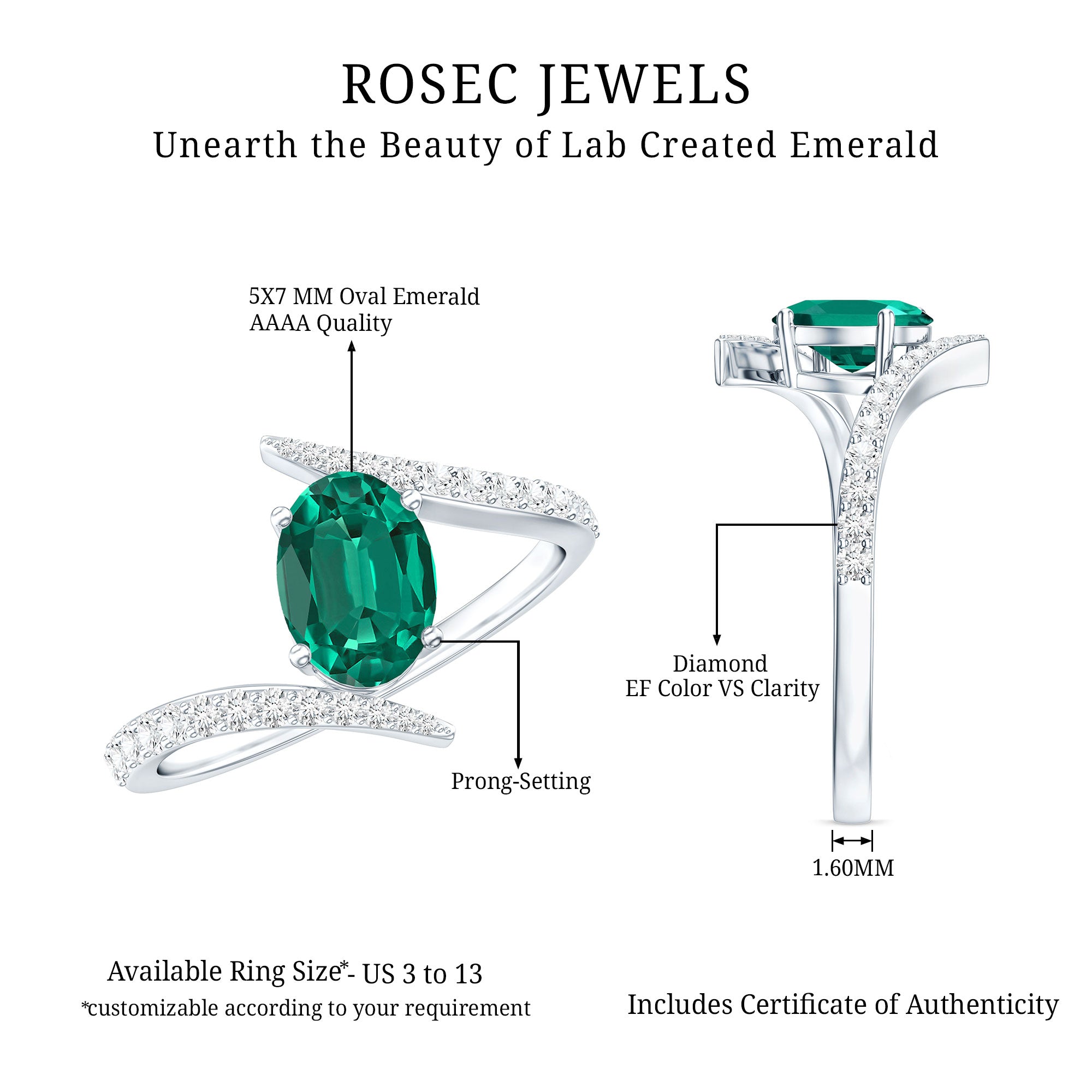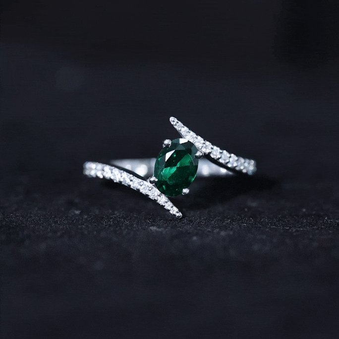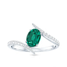 Crafted with sophistication and allure, this luxurious Created Emerald Engagement Ring is adored by all who behold it, featuring a brilliant sparkle that may rival even a true loves kiss. This Bypass Ring highlights a 5X7mm Oval Shape Lab Created Emerald, elegantly positioned in prong setting with petite round shape Lab Grown Diamond stones set on the bypass shank. What enhances the uniqueness of this Emerald Engagement Ring is its bypass shank. A ring of such remarkable craftsmanship and stunning brilliance is guaranteed to make her heart skip a beat. The refined and minimalist bypass shank gracefully curves to cradle the radiant stone, blending classic charm with a modern aesthetic that not only offers a contemporary appearance but also protects the gem, making this Oblong Engagement Ring perfect to wear as per the occasion. Carefully handcrafted, this Oval Cut Ring is offered in a variety of high-quality metal purity options and colors. Additionally, it is available in US standard sizes from 3 to 13, ensuring an impeccable fit for every hand. Whether for a proposal, an anniversary, or a memorable occasion shared between the two of you, this Lab Grown Emerald Ring is a timeless keepsake that she will treasure forever. A classic design meant to stir emotions, just as yours did when you discovered your soulmate.