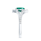Certified 0.8 Carat Oval Cut Lab Grown Emerald Engagement Ring with Diamond Bypass Shank