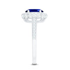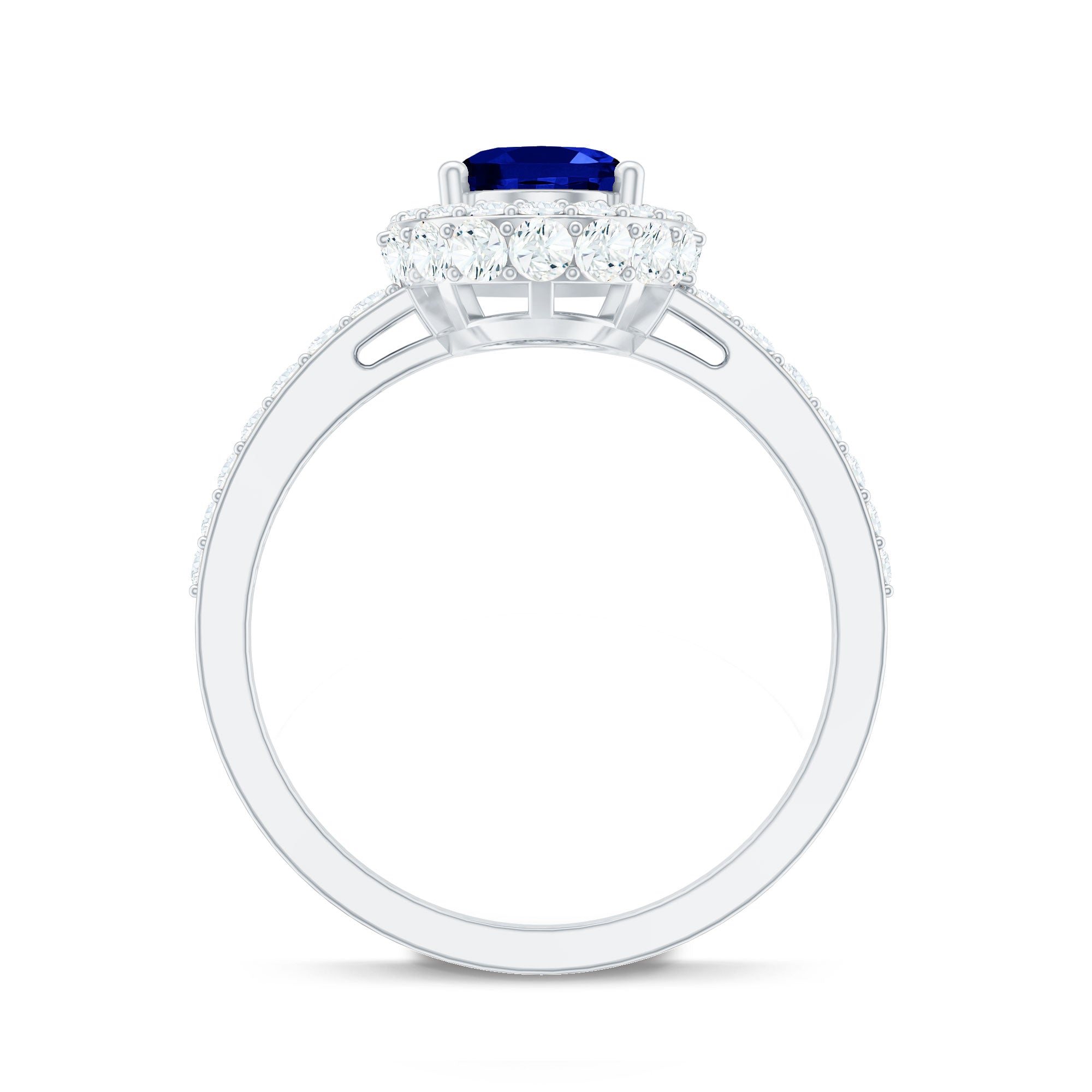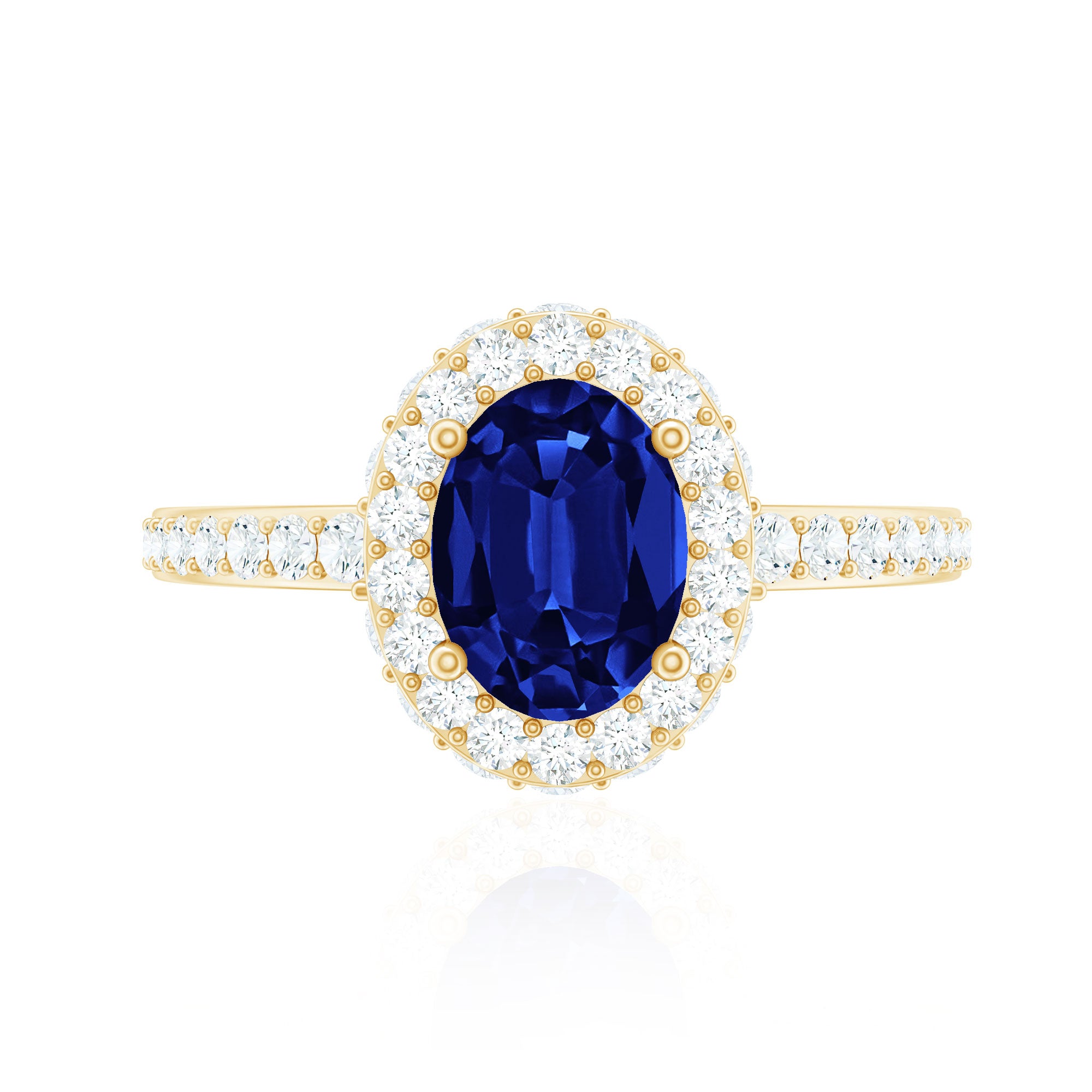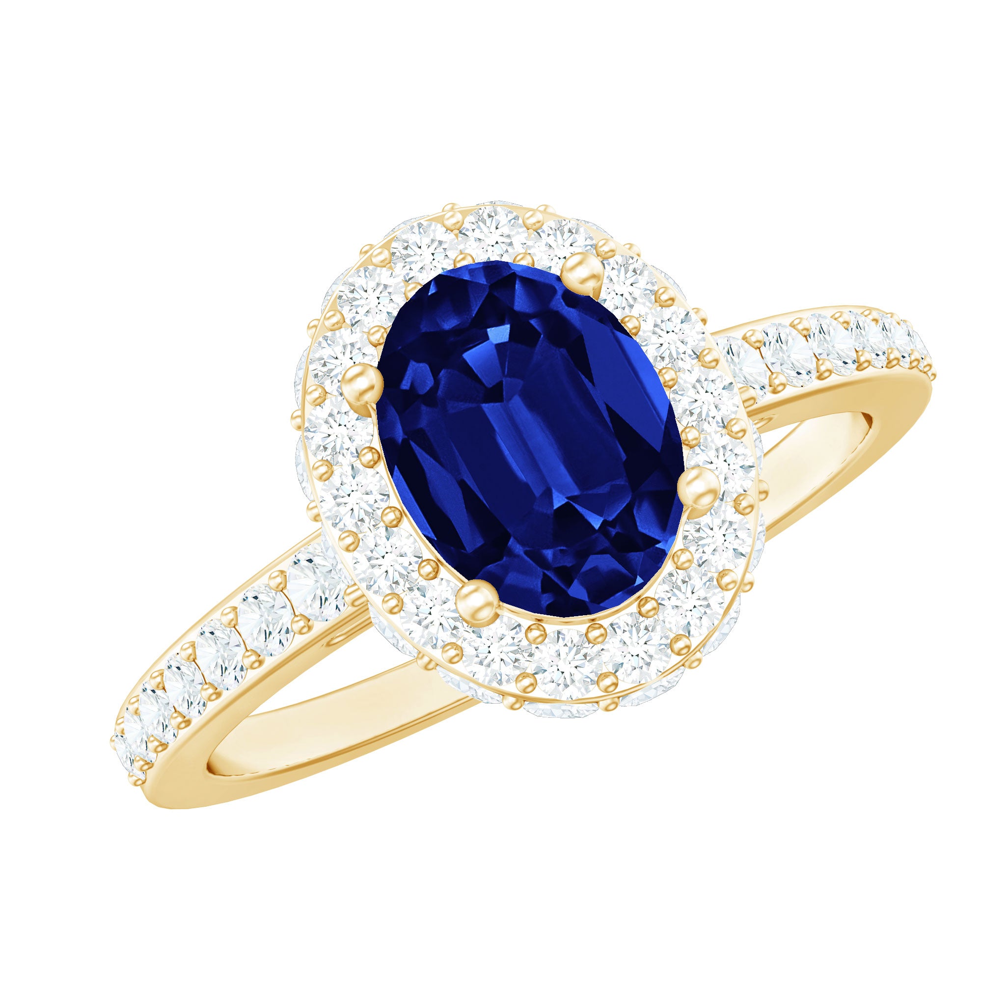 Certified 1.5 Carat Lab Grown Blue Sapphire Oval Engagement Ring with Diamond Halo