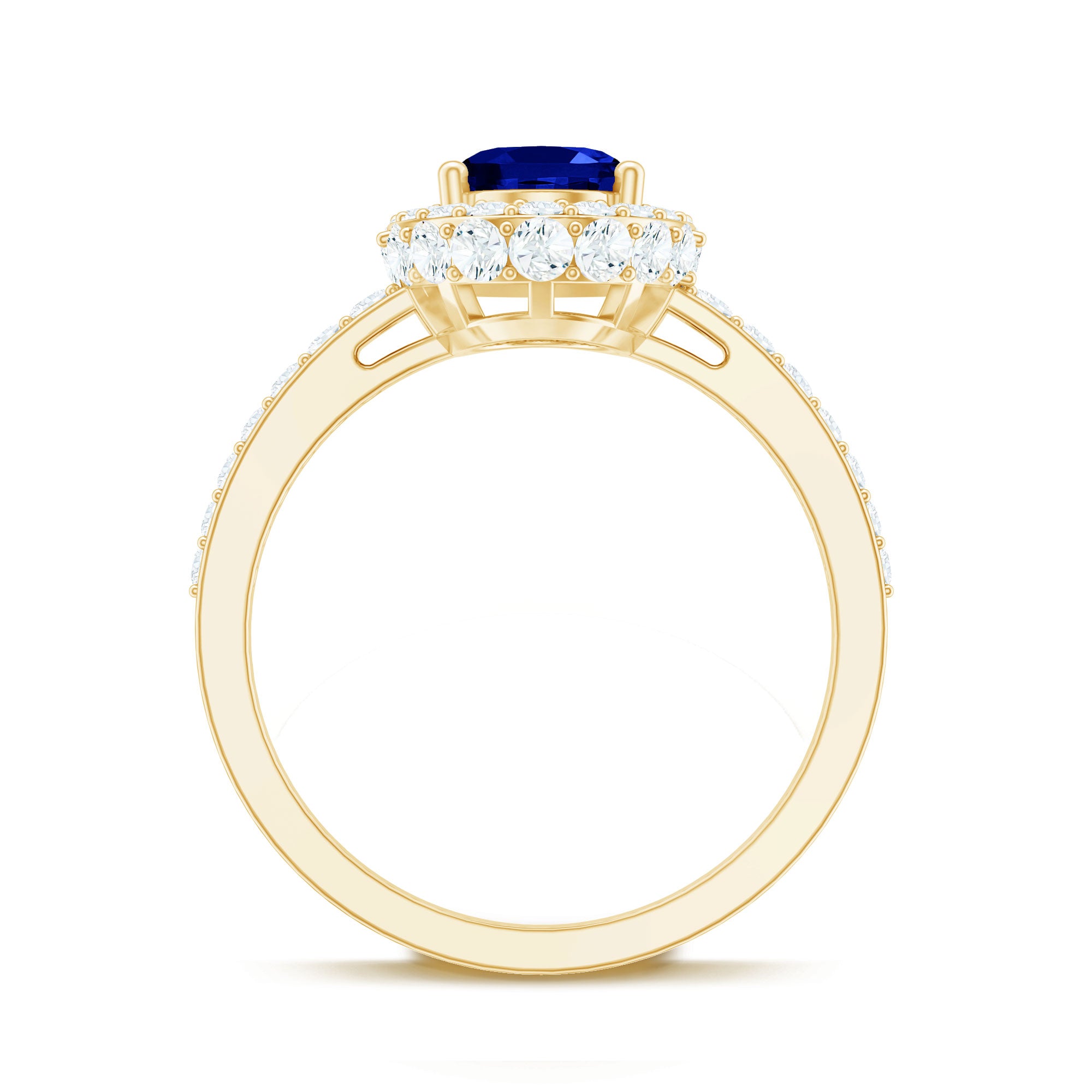 Make a stunning statement of love and elegance with this Lab Grown Blue Sapphire Engagement Ring, a piece designed to capture hearts and turn every moment into a memory. At its center rests a 6X8 mm Oval Shaped Lab Created Blue Sapphire set in Prong Setting, glowing with a deep, captivating hue that symbolizes loyalty, wisdom and devotion. Surrounding the AAAA Quality Lab Blue Sapphire, a Halo of sparkling Diamond stones creates a radiant frame, enhancing the beauty of Lab Blue Sapphire while adding a touch of timeless glamour. The sparkle continues along the band, adorned with HI-SI Quality Diamond stones that catch the light from every angle, making this Oval Sapphire Engagement Ring (Lab Grown) a breathtaking display of brilliance and sophistication. This Lab Blue Sapphire Diamond Ring comes in various ring sizes and is presented in a signature jewelry box, ready to celebrate the most cherished moments of life. This Classic Engagement Ring is a story of commitment, a promise of forever and a dazzling symbol of a love that grows stronger with each passing day. Elegant, romantic and endlessly enchanting, this Lab Blue Sapphire Ring for Women is a treasure that captures the magic of devotion in every glittering detail.